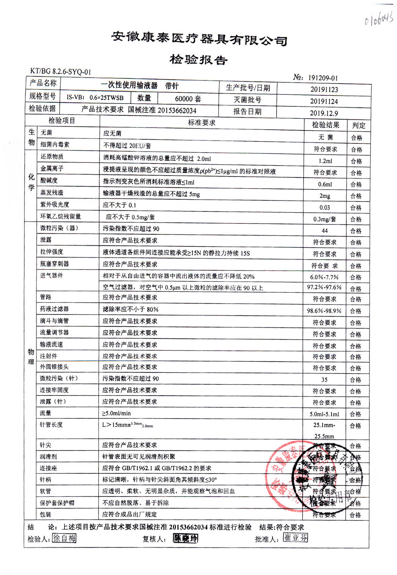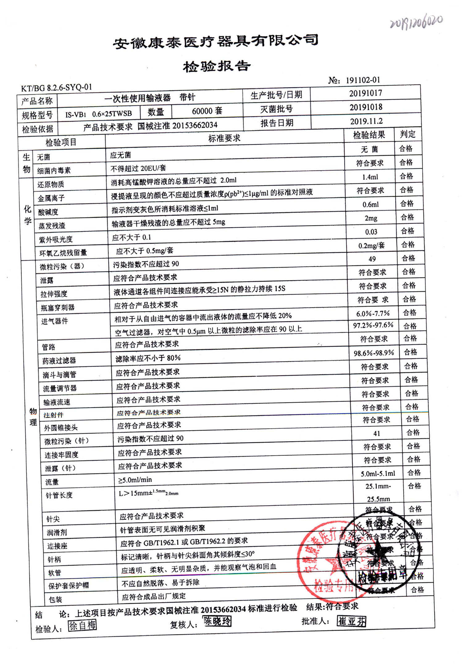 一次性使用輸液器 帶針 0.6*25TWSB 20191209 查看詳情