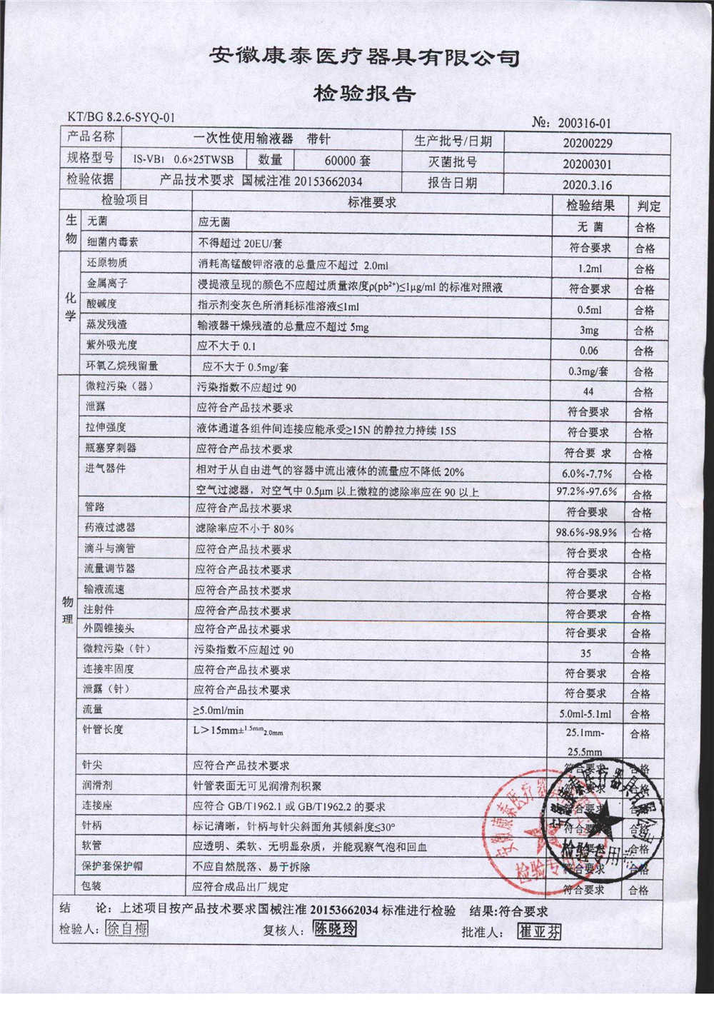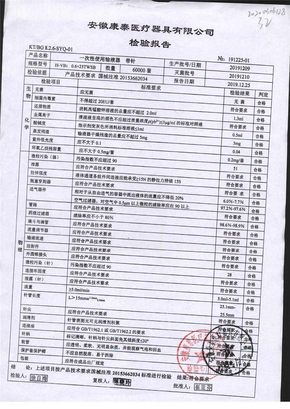 一次性使用輸液器 帶針 0.6*25TWSB 20200229 查看詳情