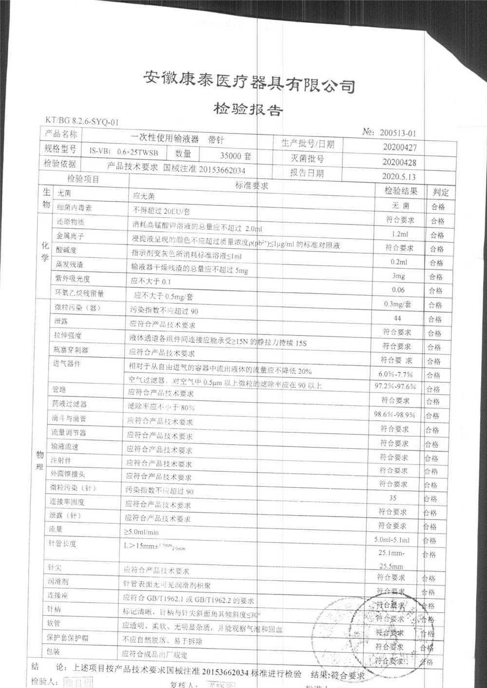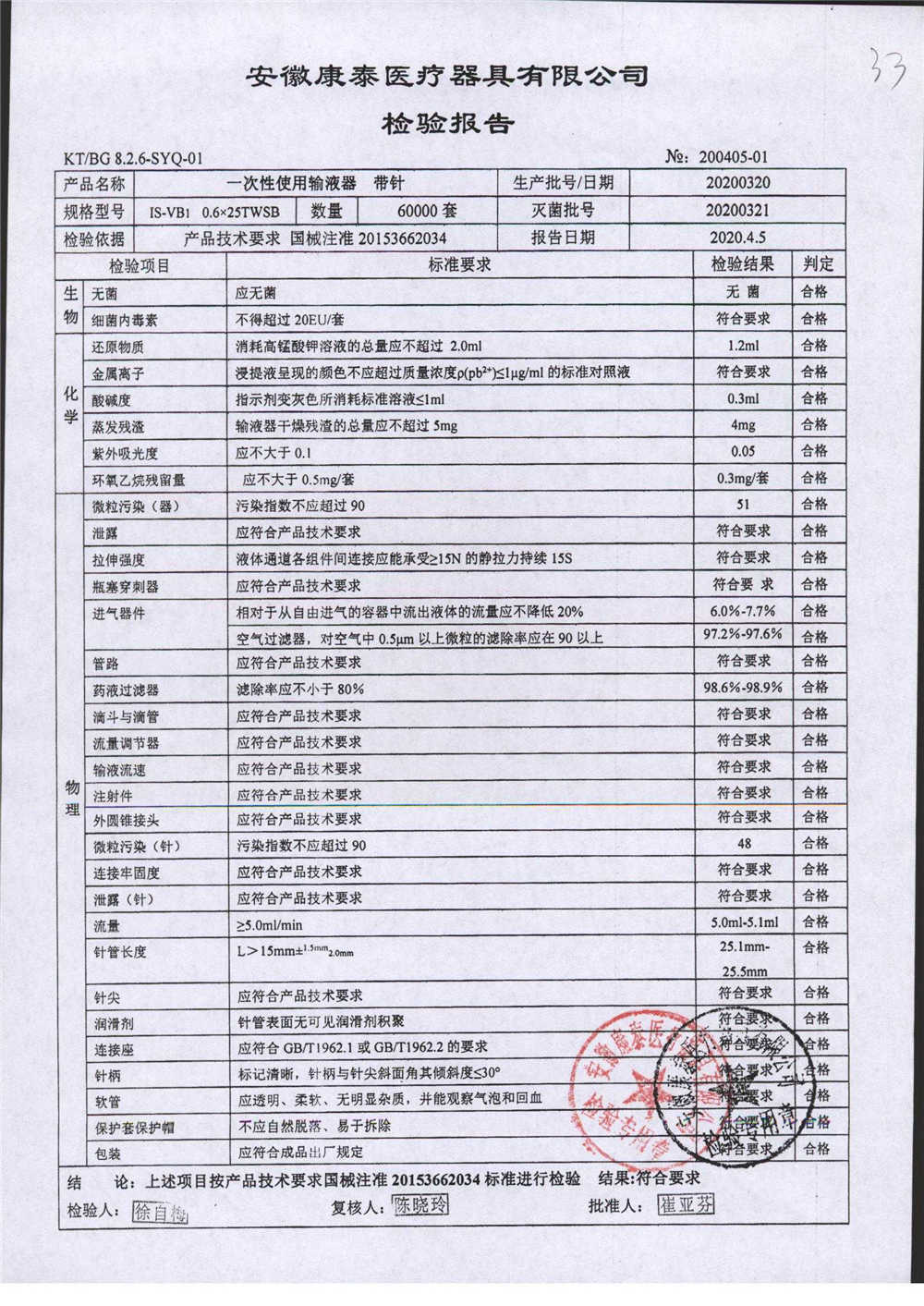 一次性使用輸液器 帶針 0.6*25TWSB 20200427 查看詳情