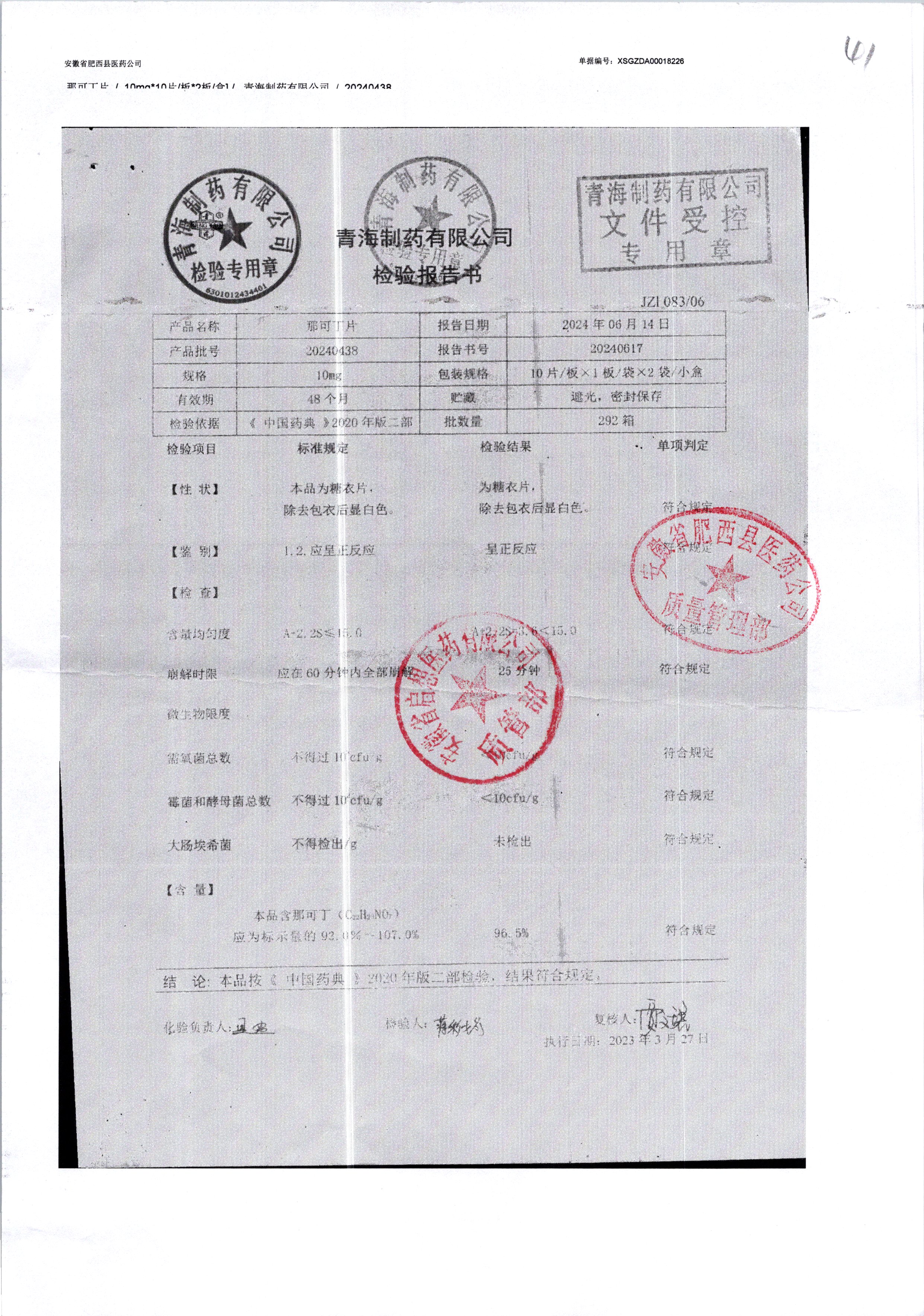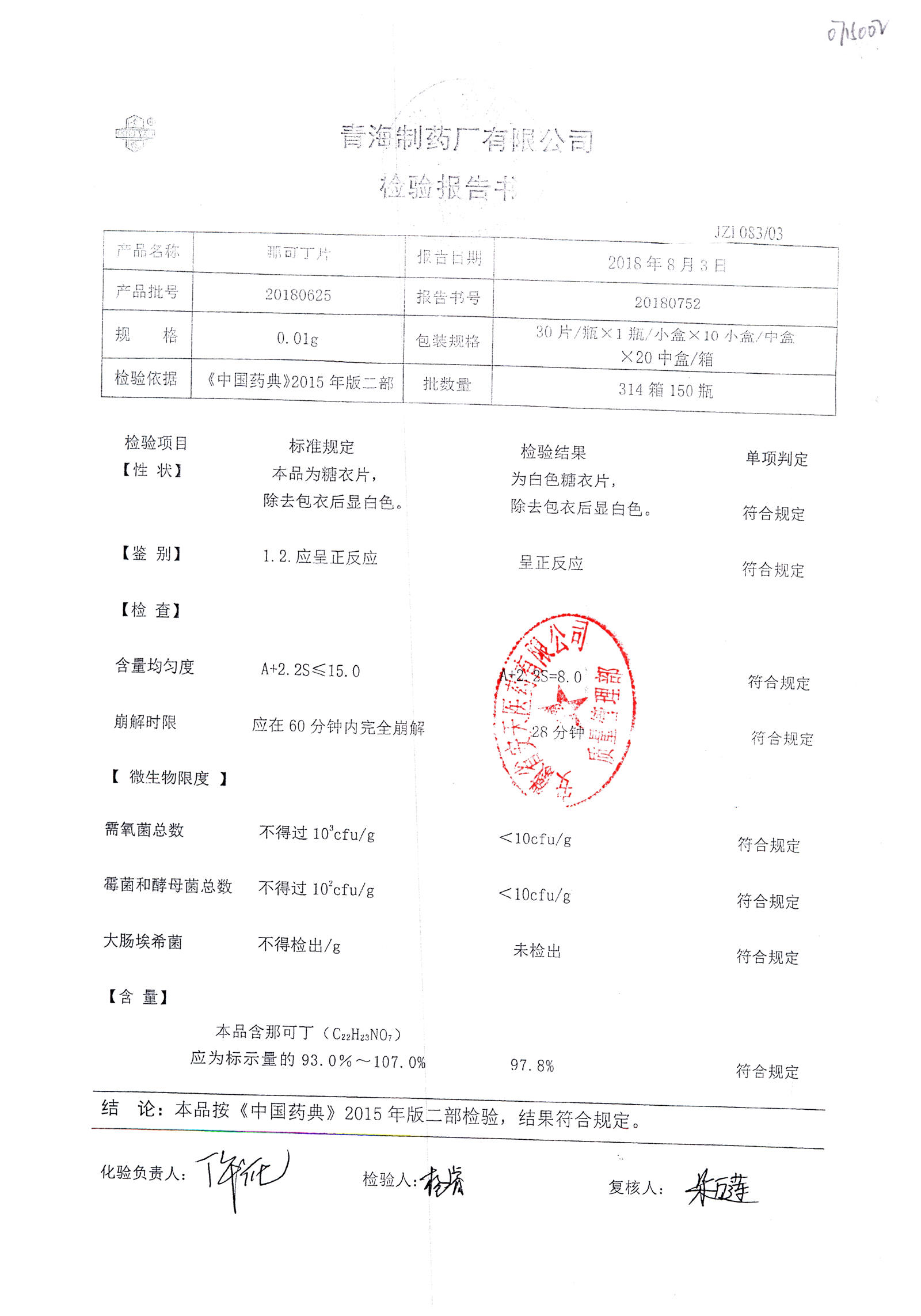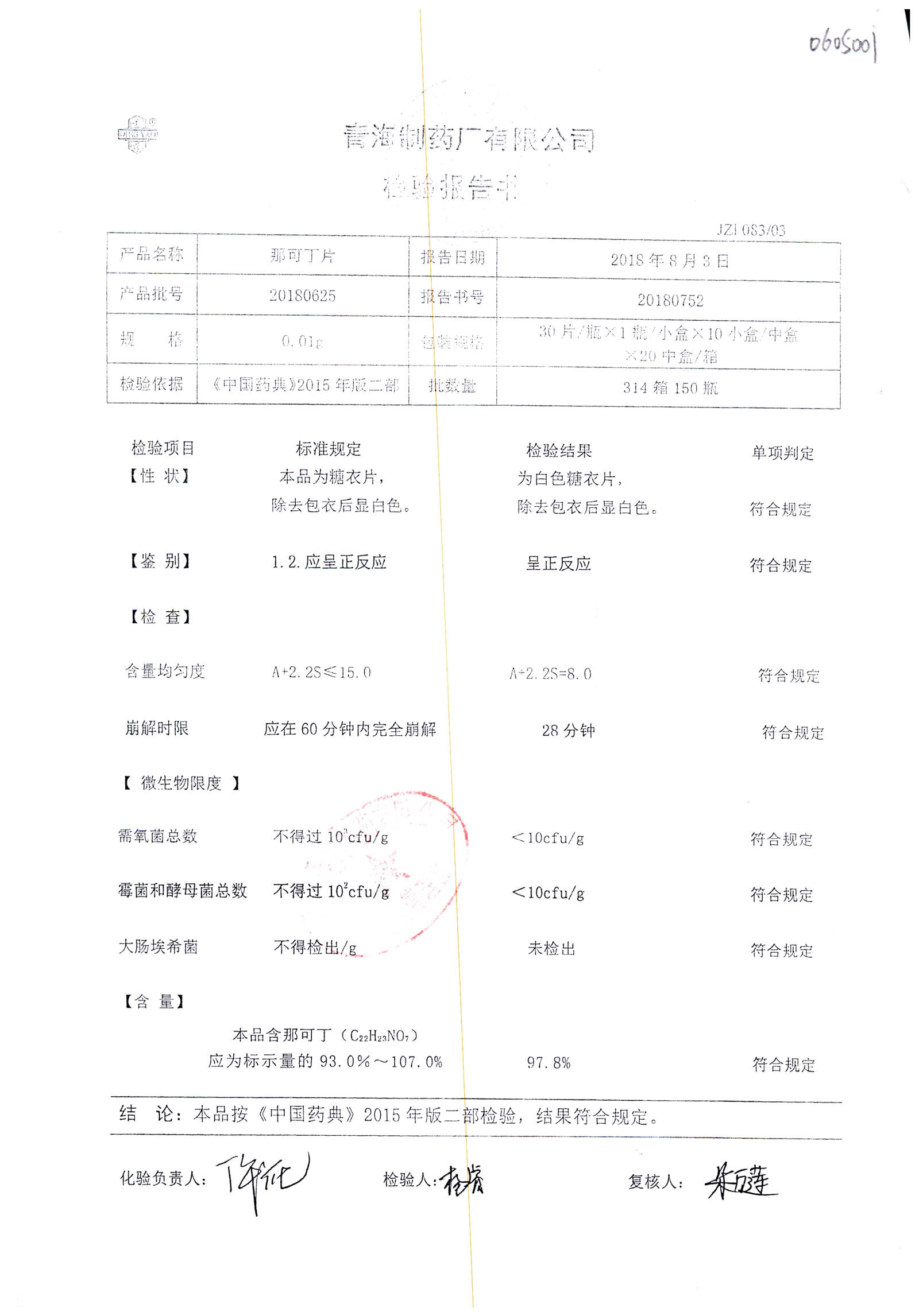 那可丁片 | 0.01g | 20180625 | 查看詳情 |