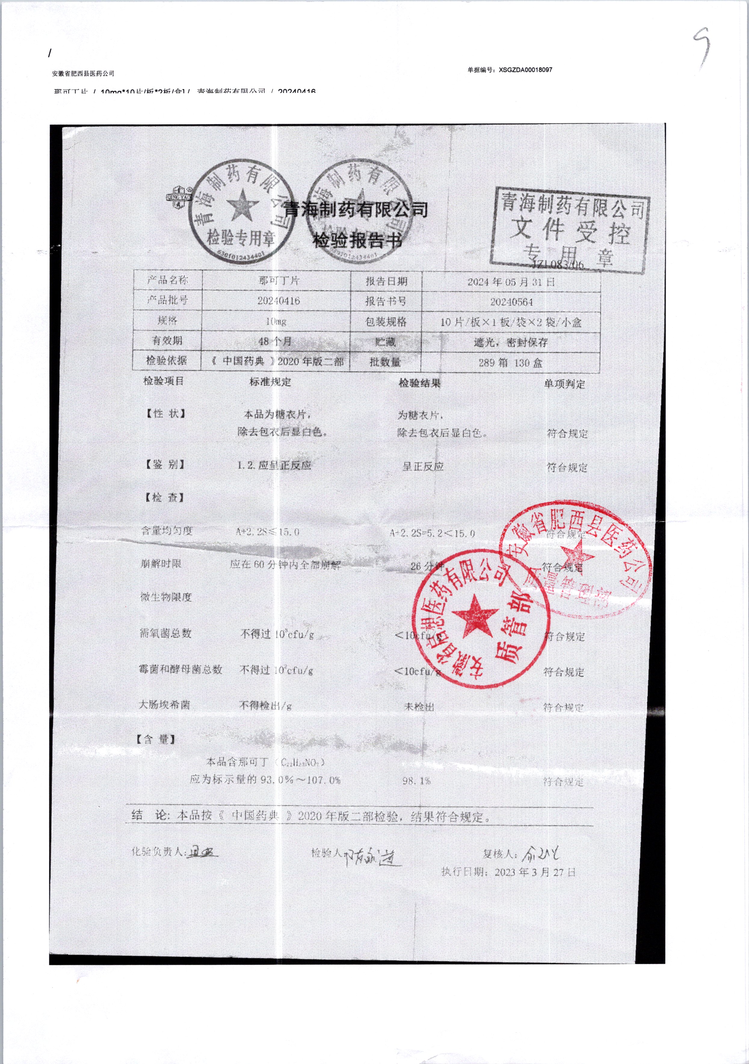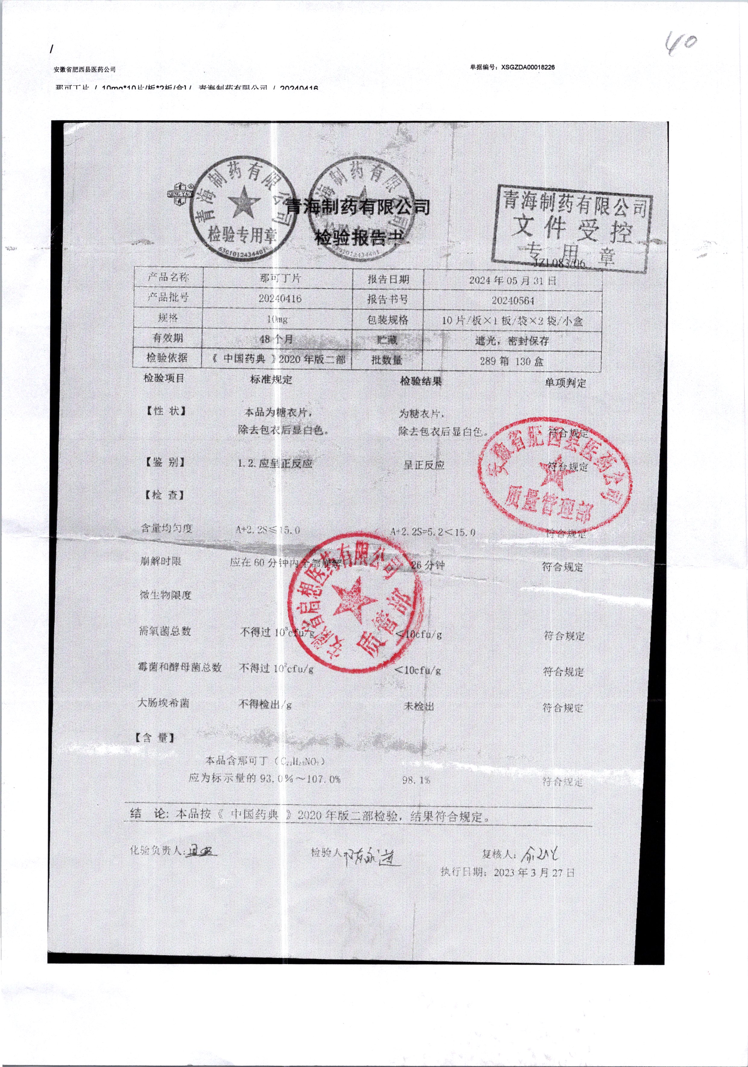 那可丁片 | 0.01g | 20240416 | 查看詳情 |