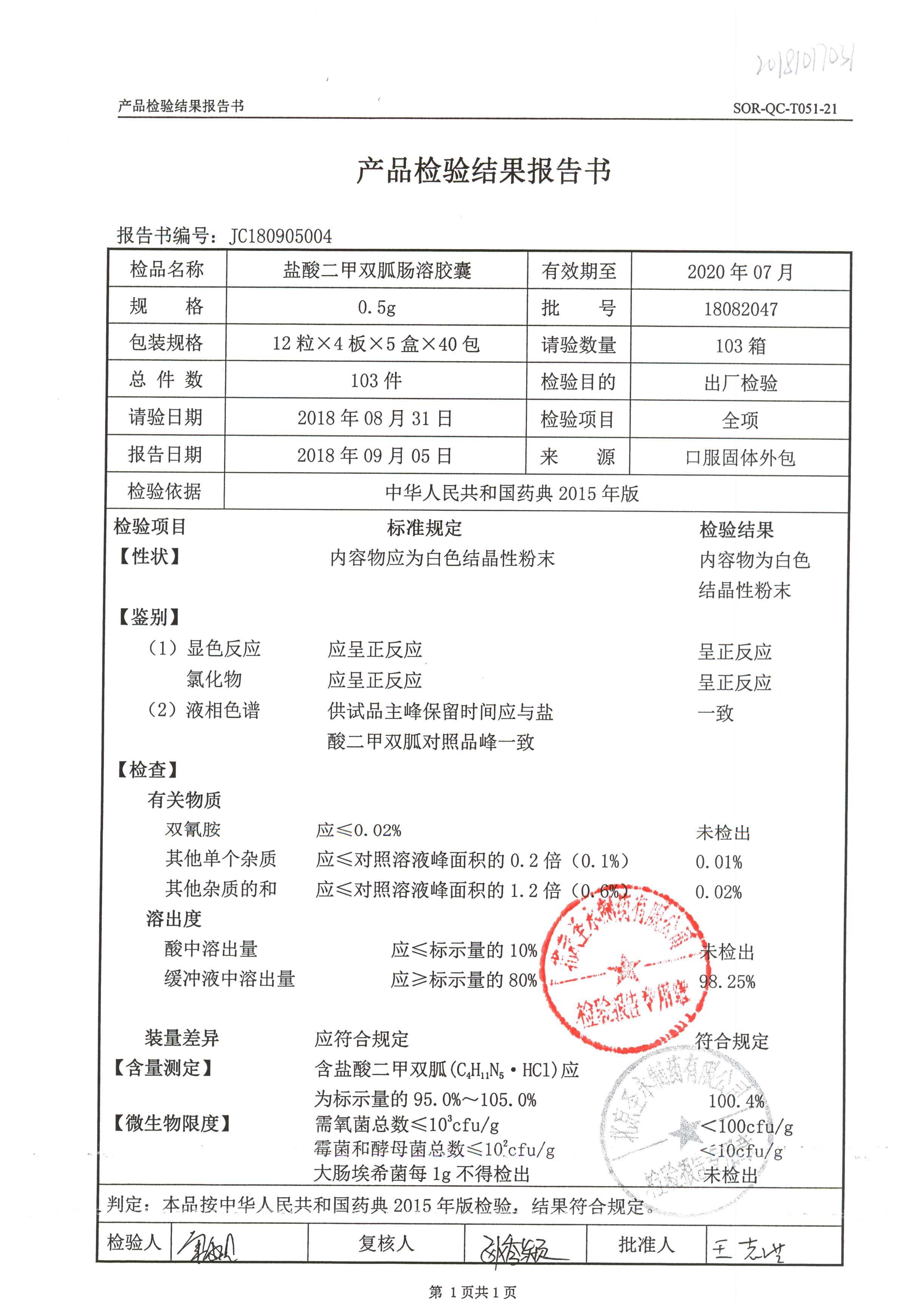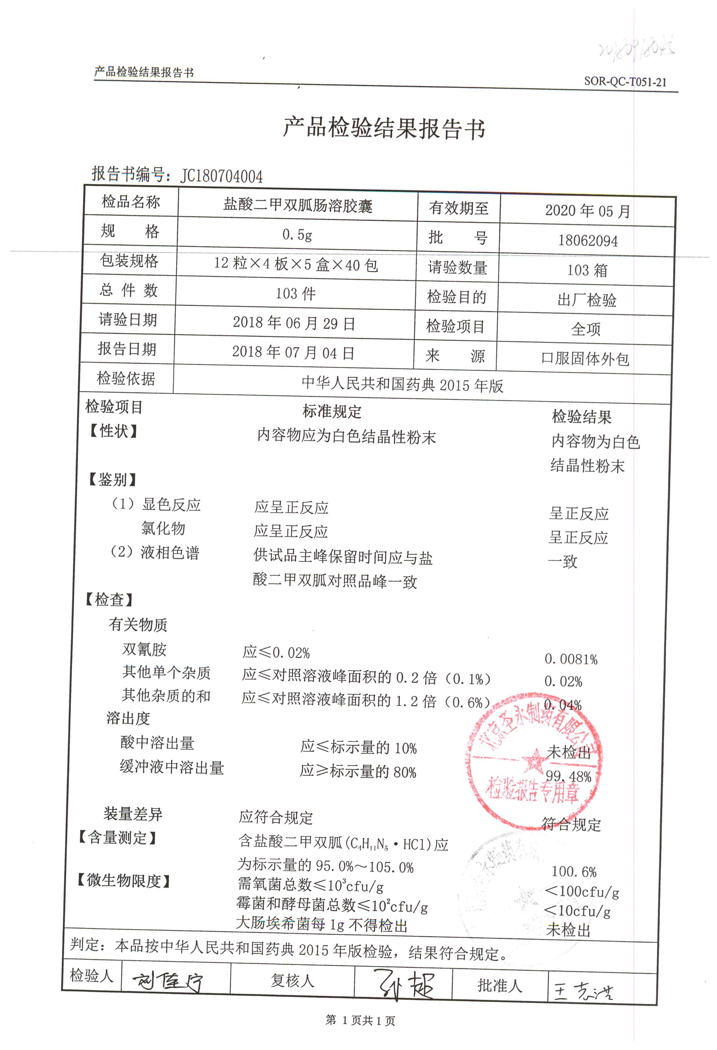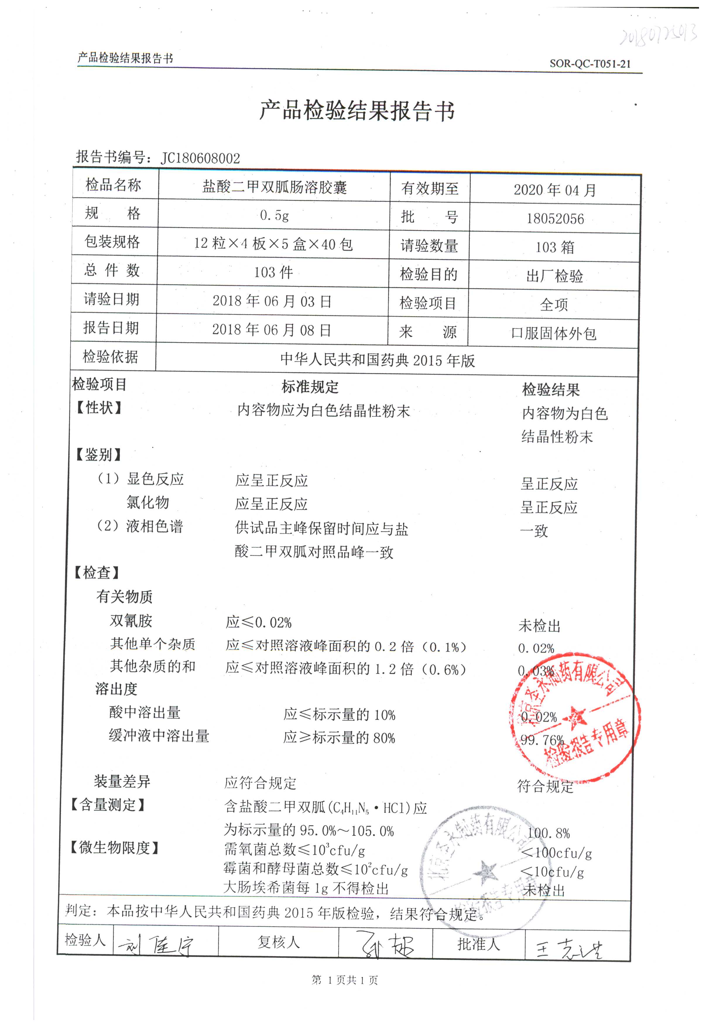 鹽酸二甲雙胍腸溶膠囊 | 0.5g*48s | 18042007(1/2) | 查看詳情 |