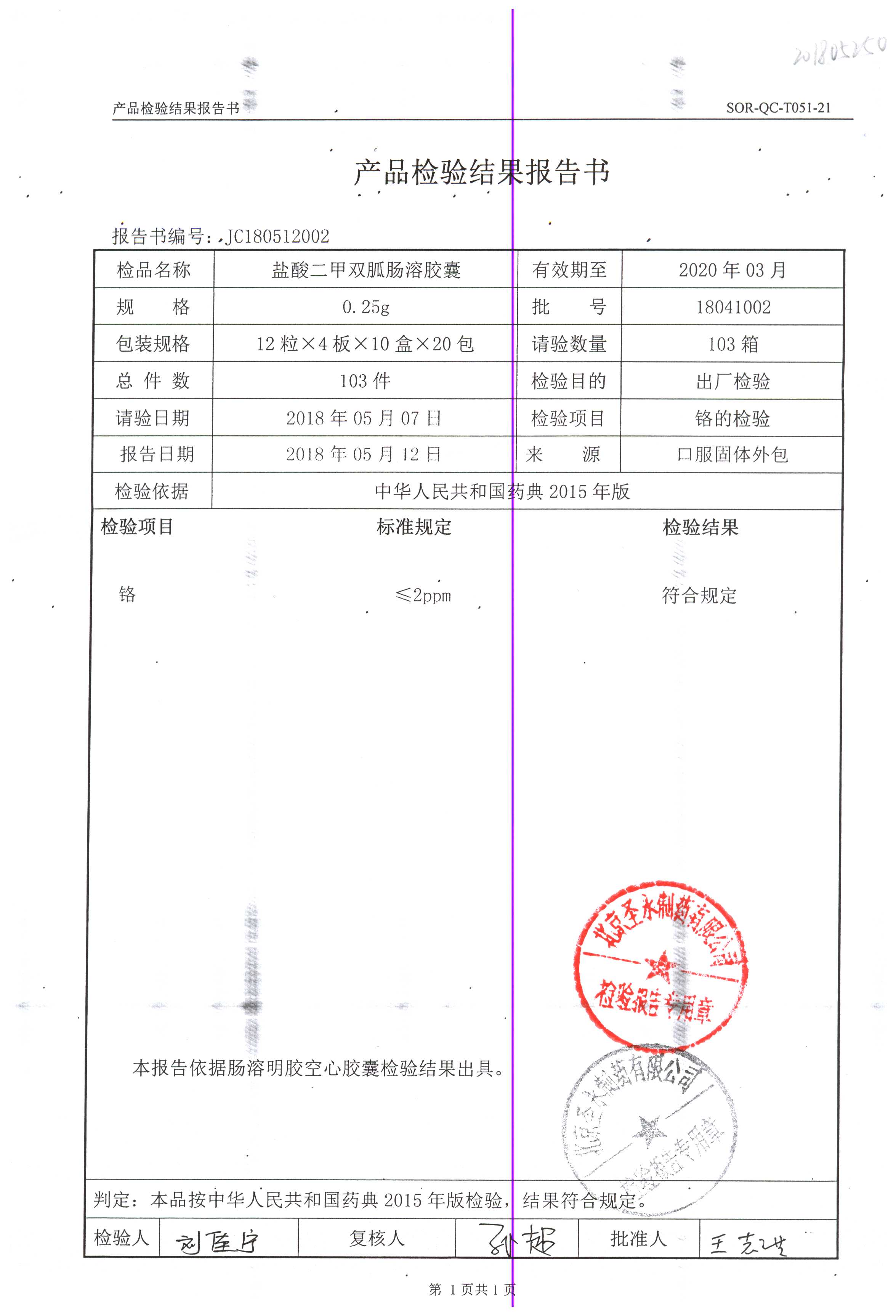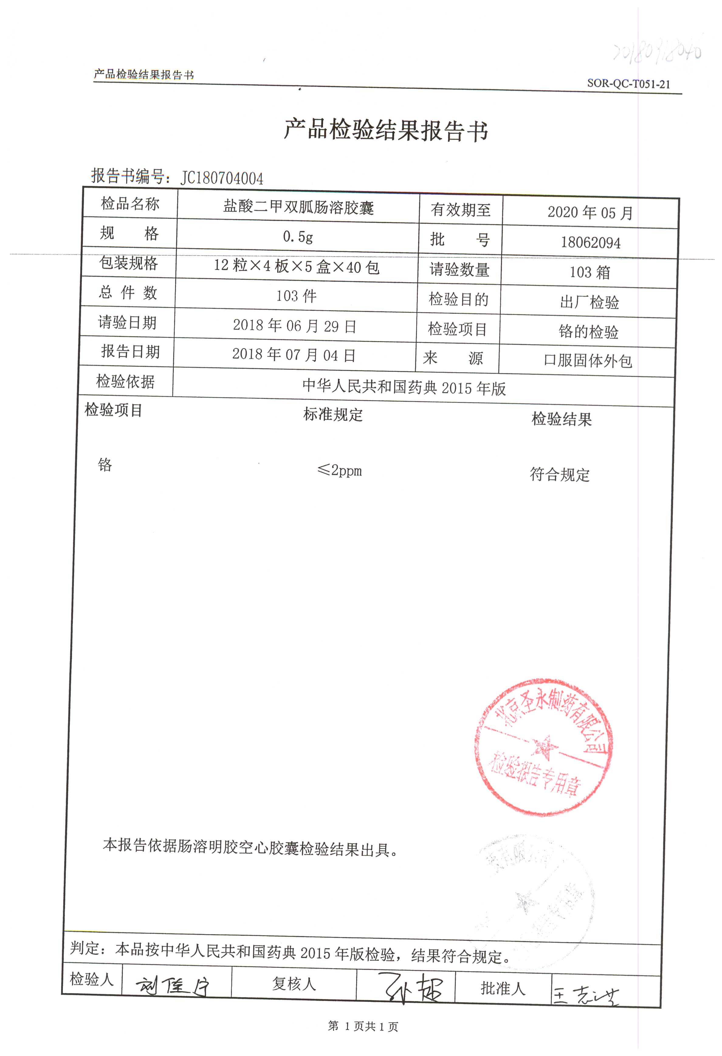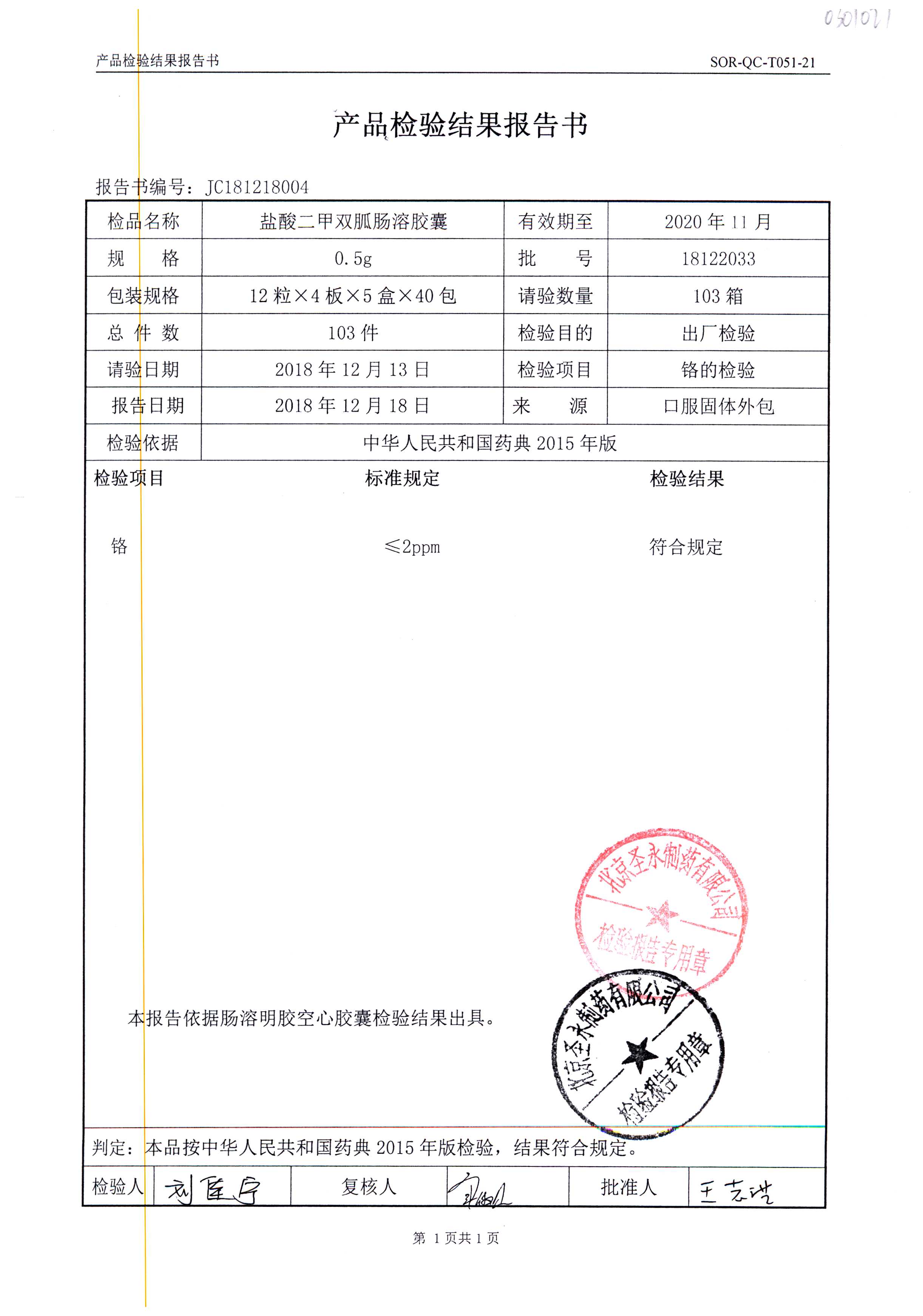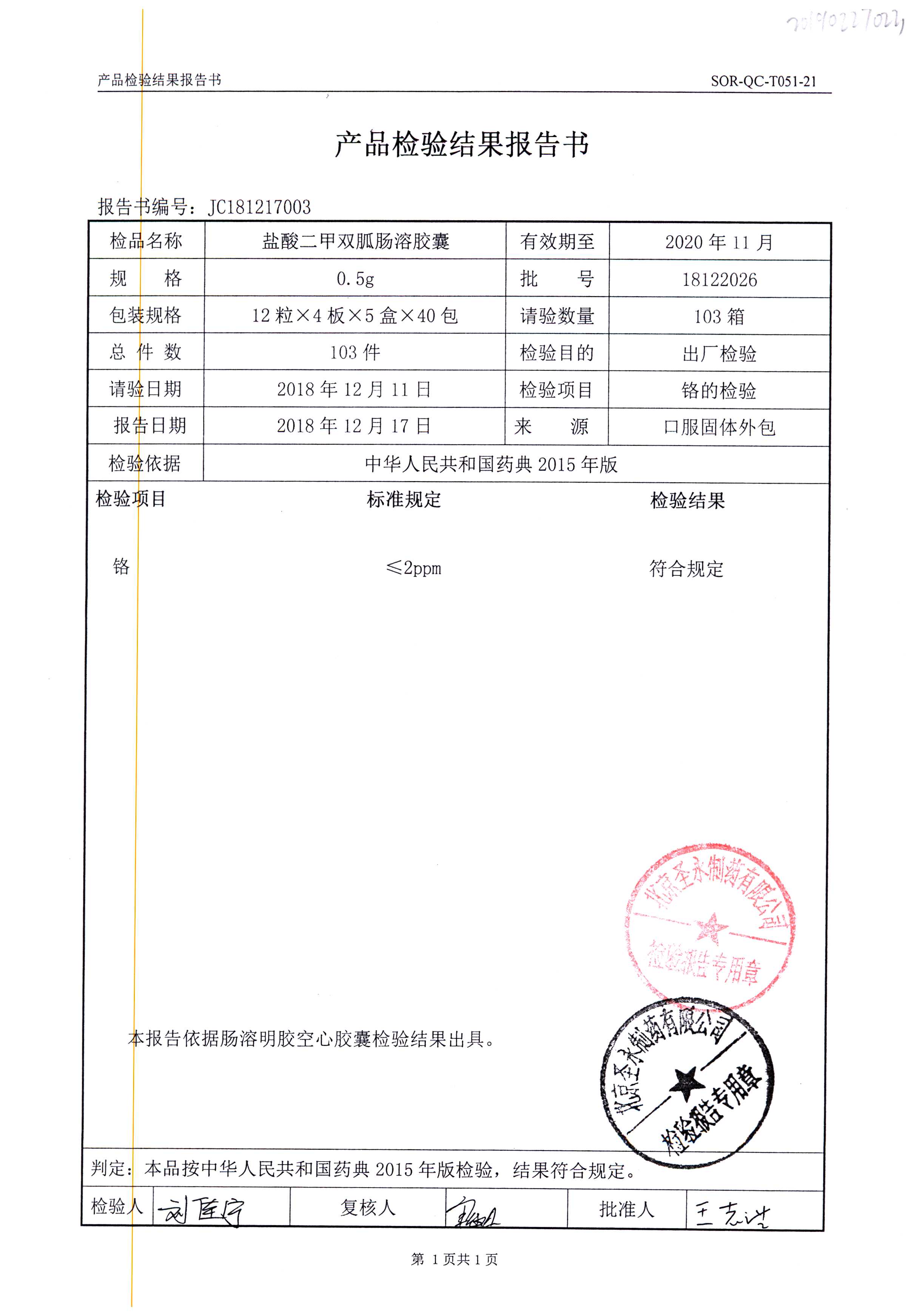鹽酸二甲雙胍腸溶膠囊 | 0.5g*48s | 18042007(1/2) | 查看詳情 |