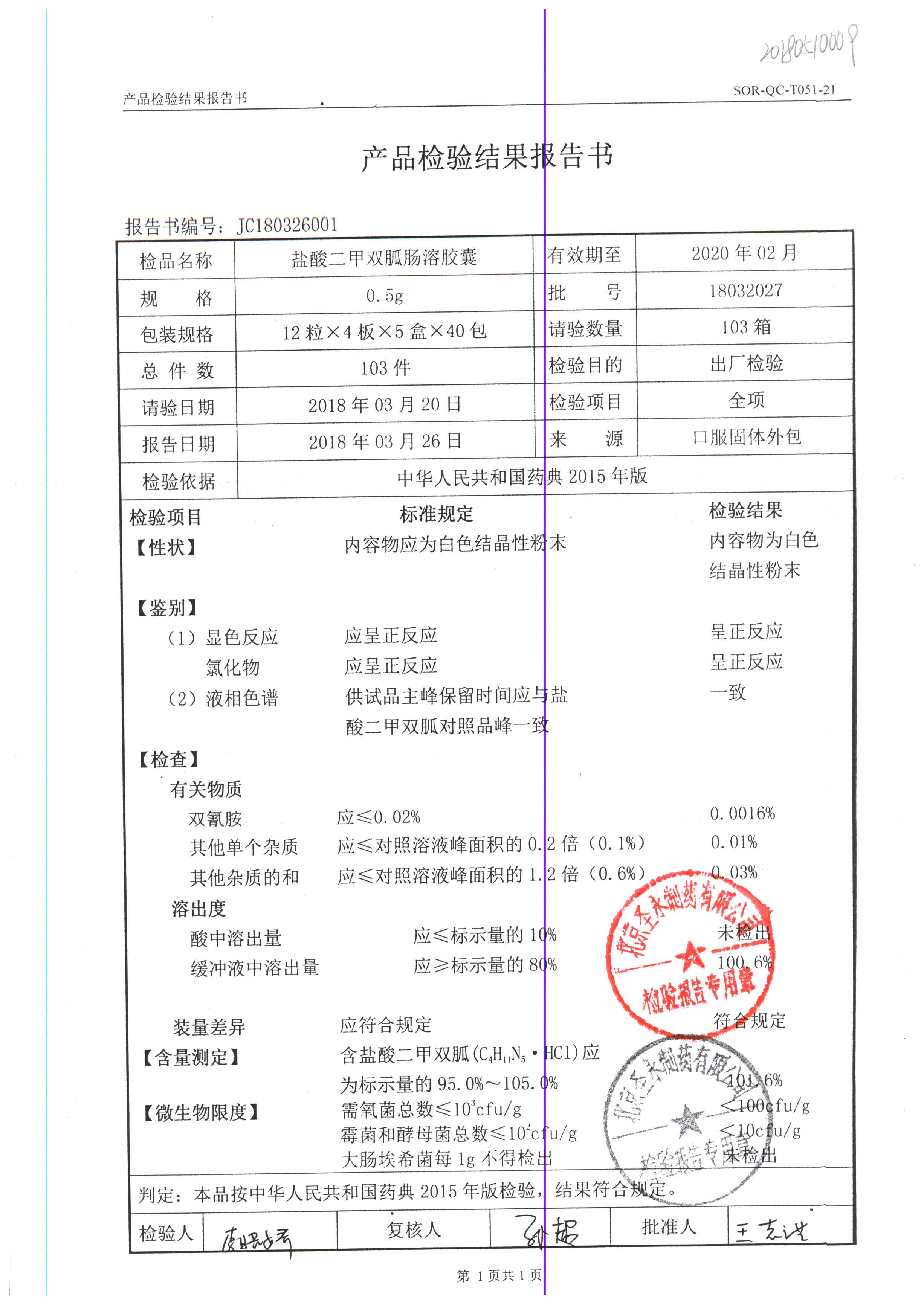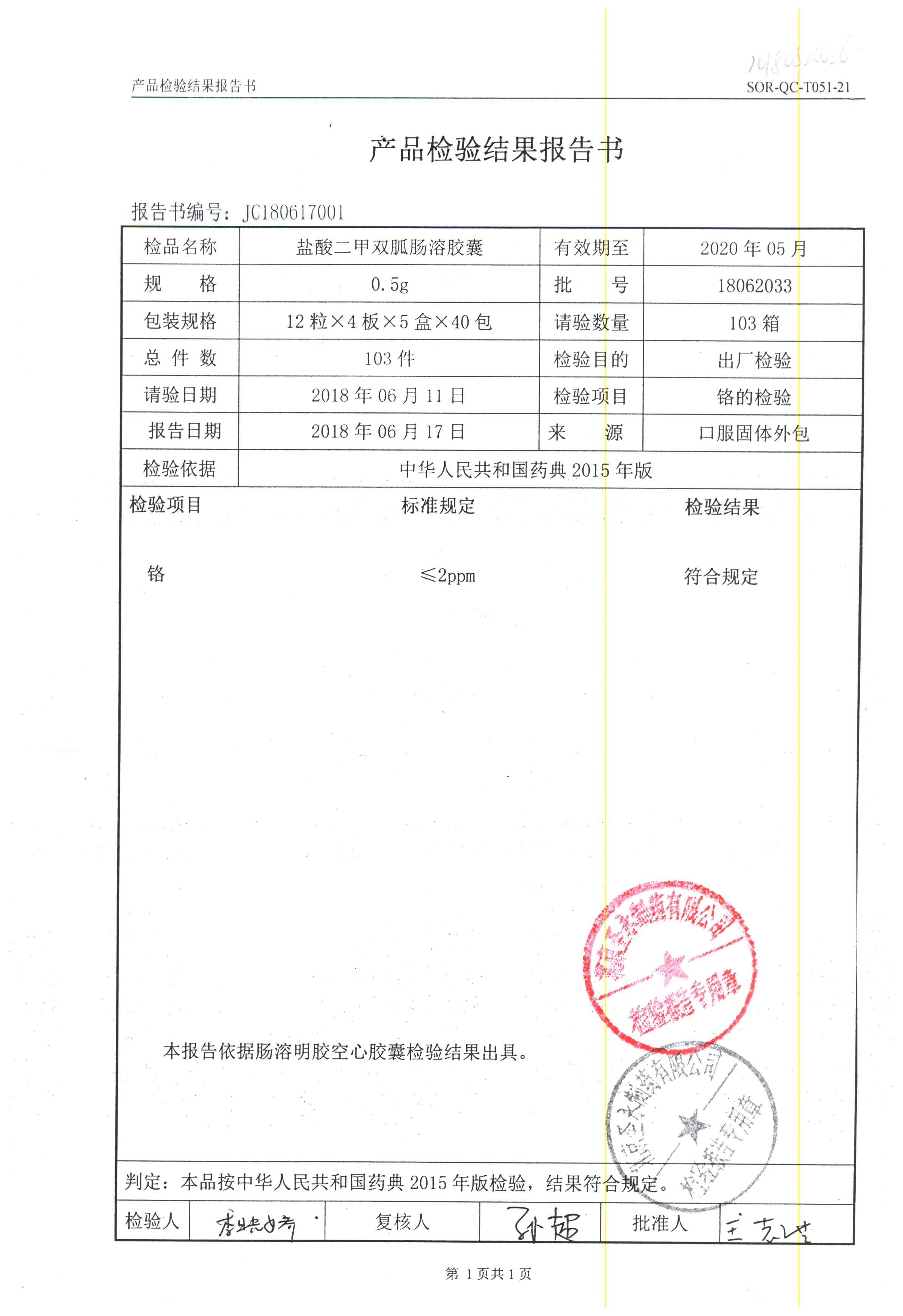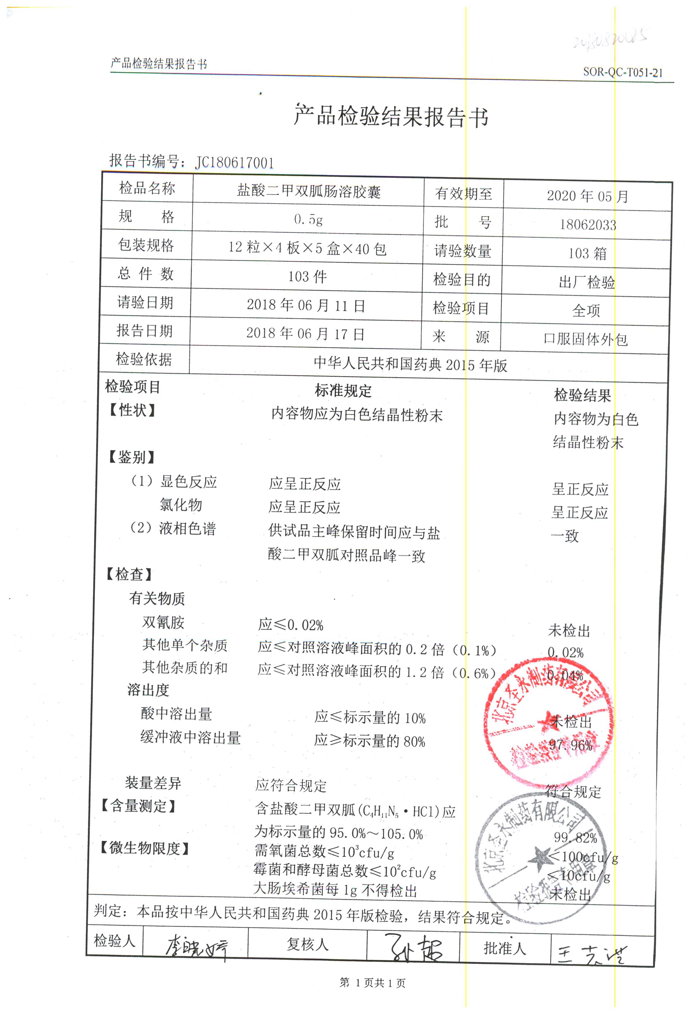 鹽酸二甲雙胍腸溶膠囊 | 0.5g*48s | 18011019(1/2) | 查看詳情 |