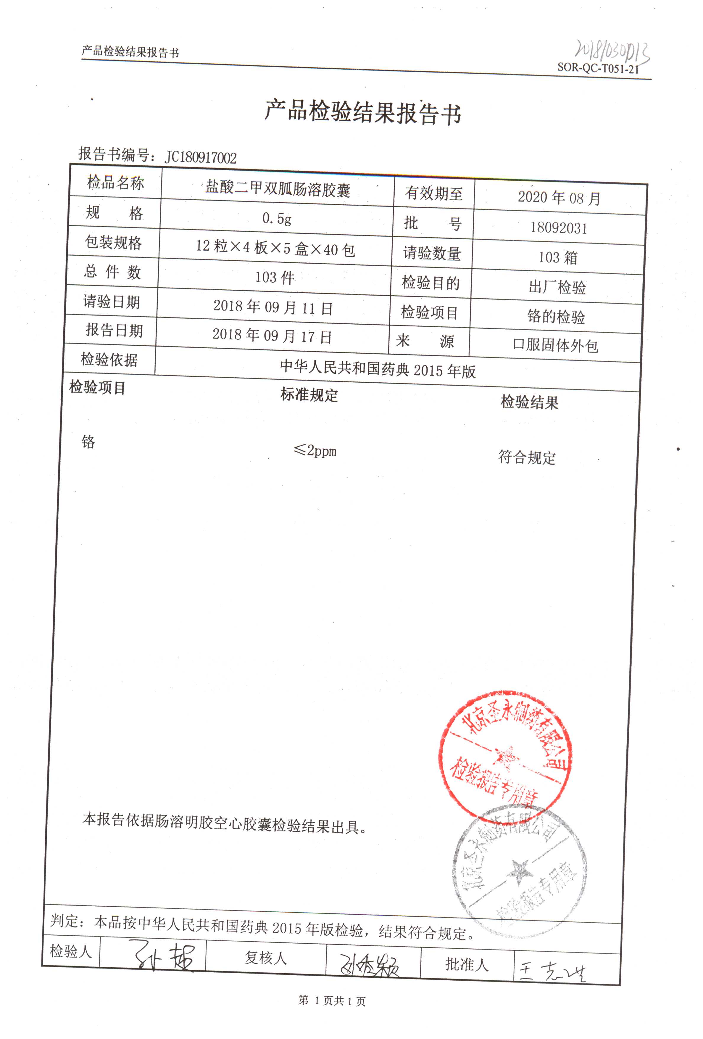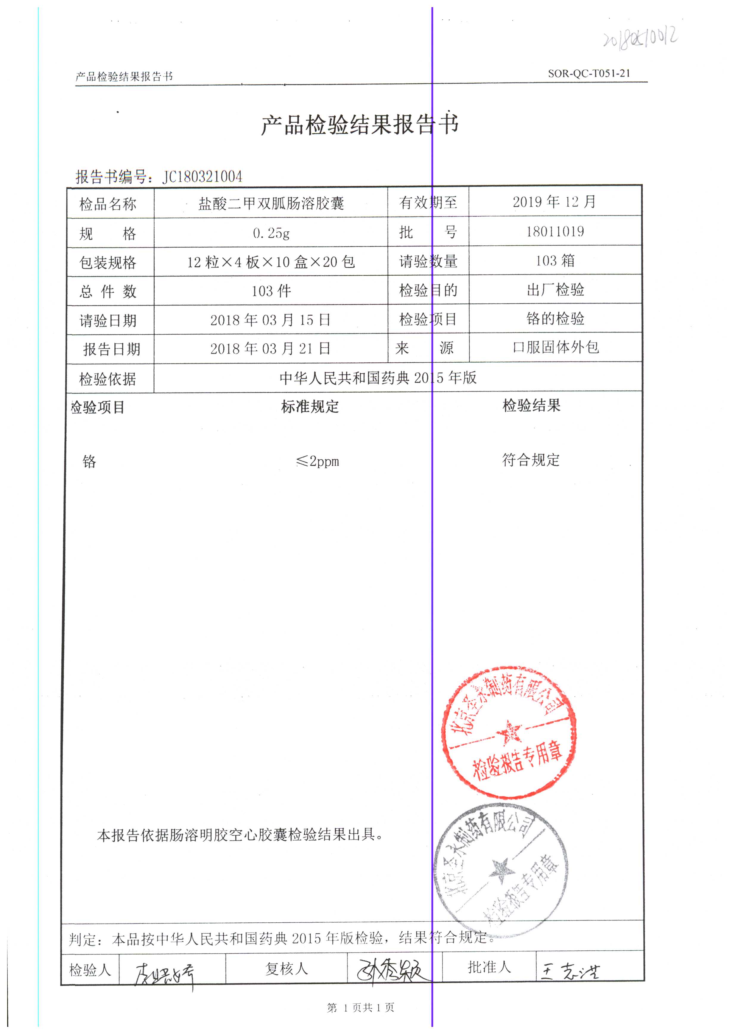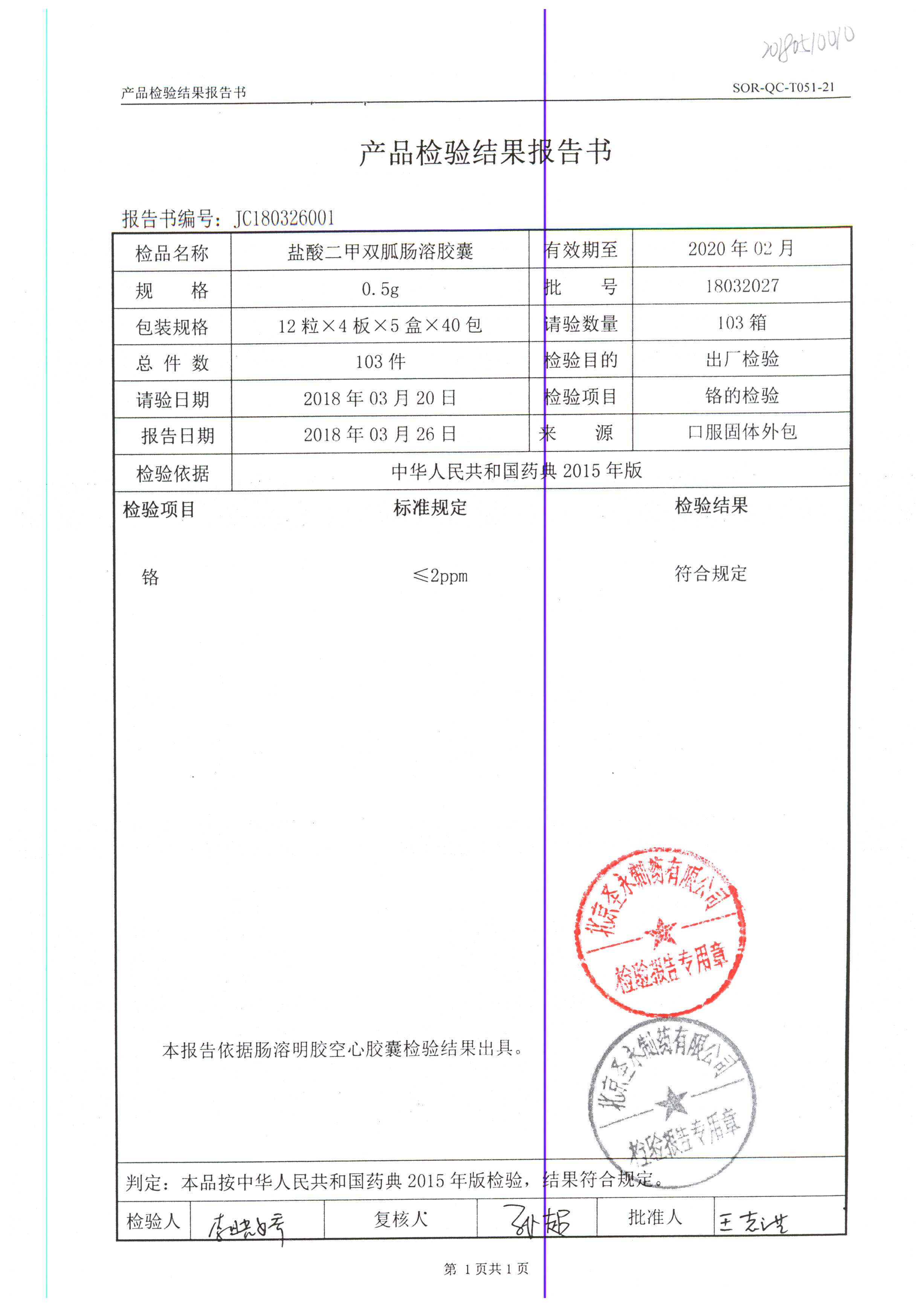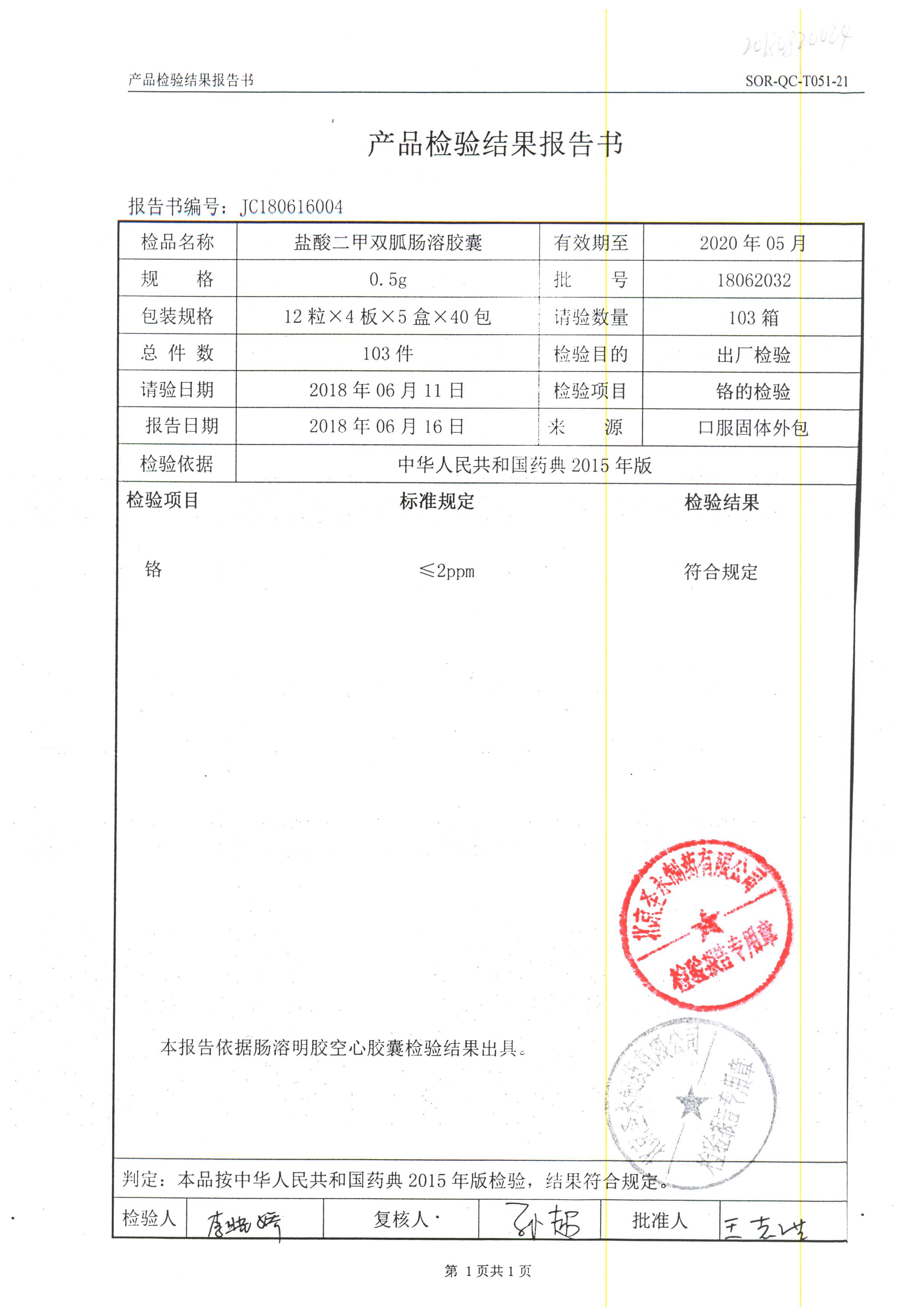鹽酸二甲雙胍腸溶膠囊 | 0.5g*48s | 18011019(1/2) | 查看詳情 |