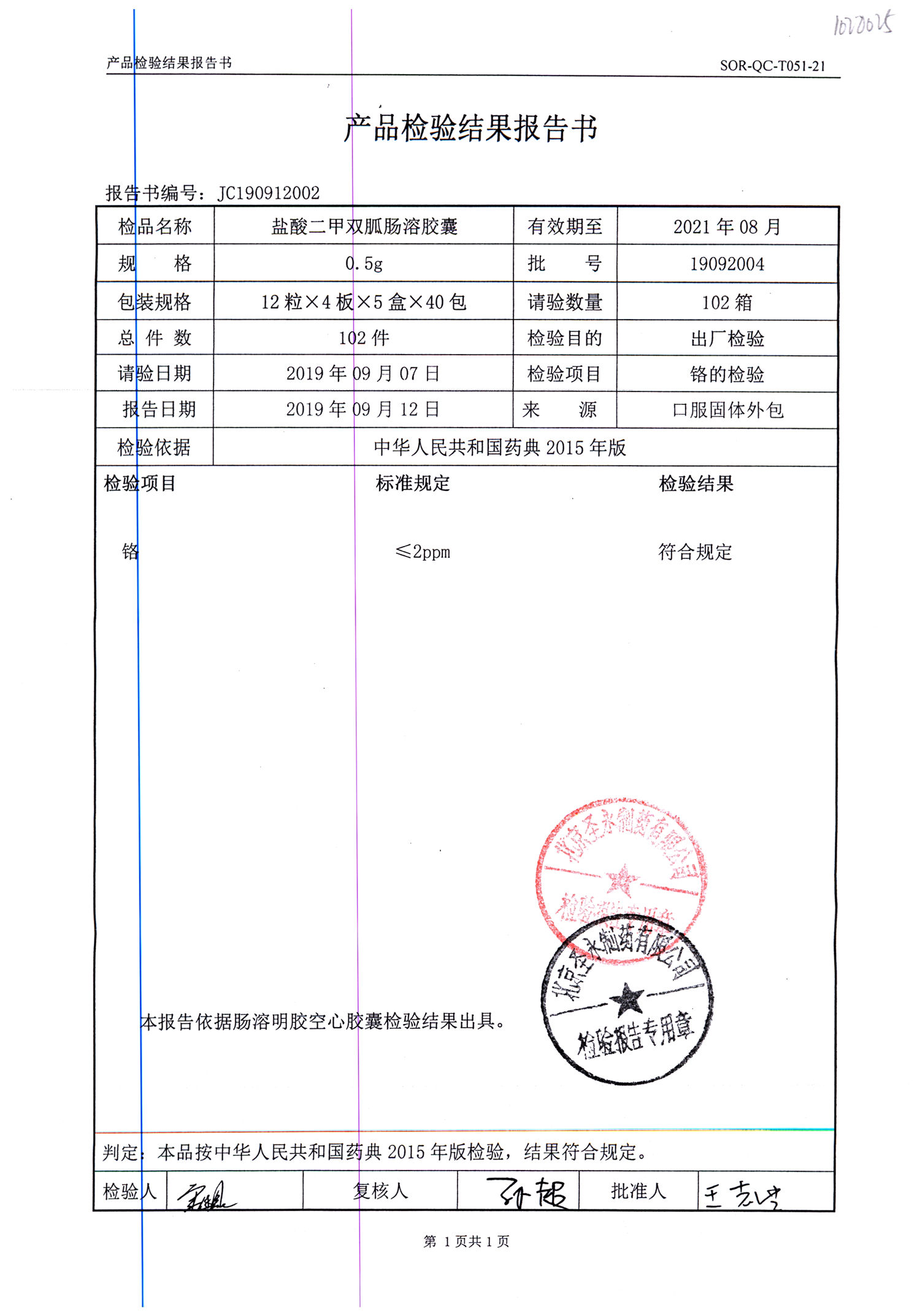 鹽酸二甲雙胍腸溶膠囊 | 0.5g*48s | 19092004(2/2) | 查看詳情 |