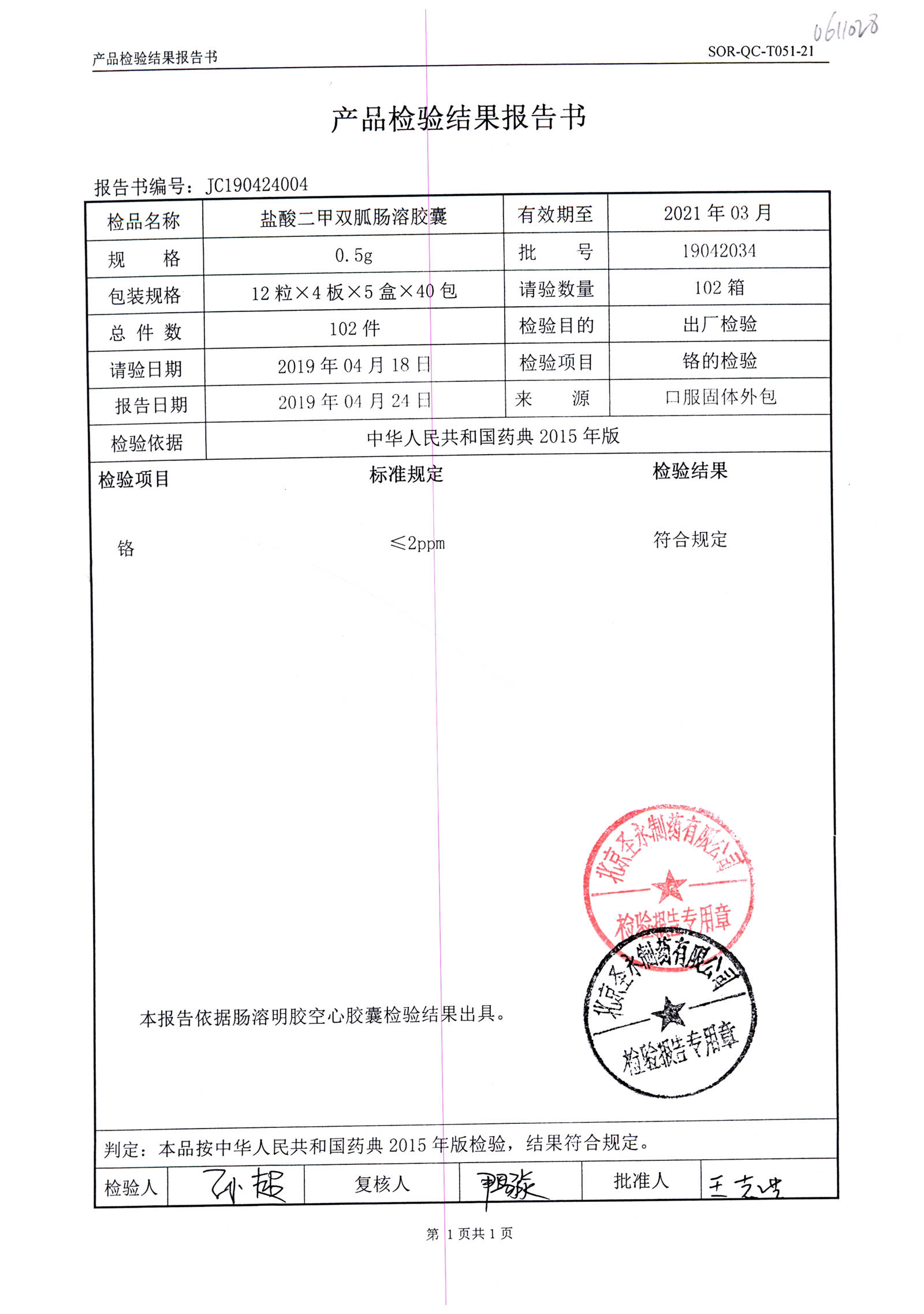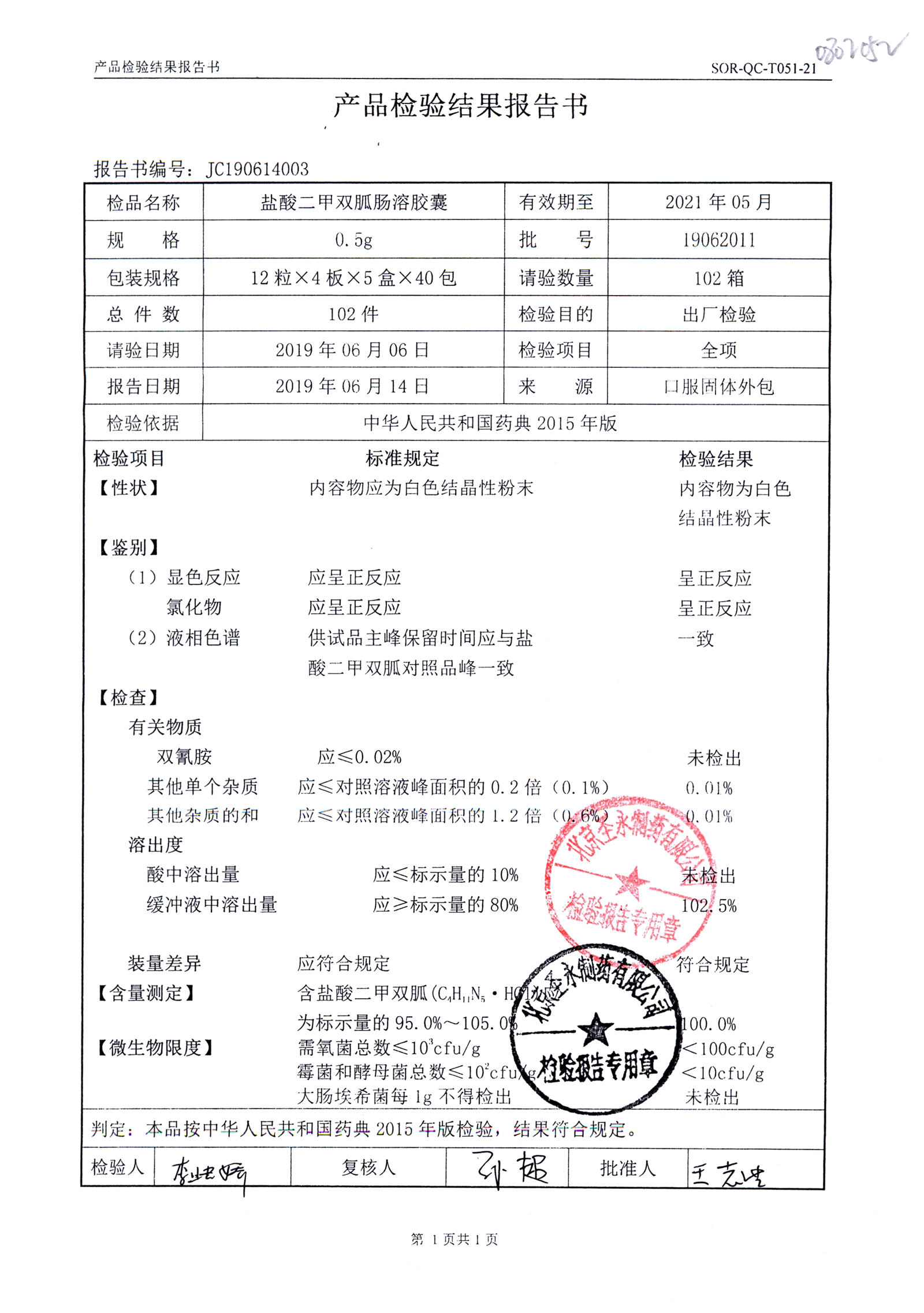 鹽酸二甲雙胍腸溶膠囊 | 0.5g*48s | 19062011(1/2) | 查看詳情 |
