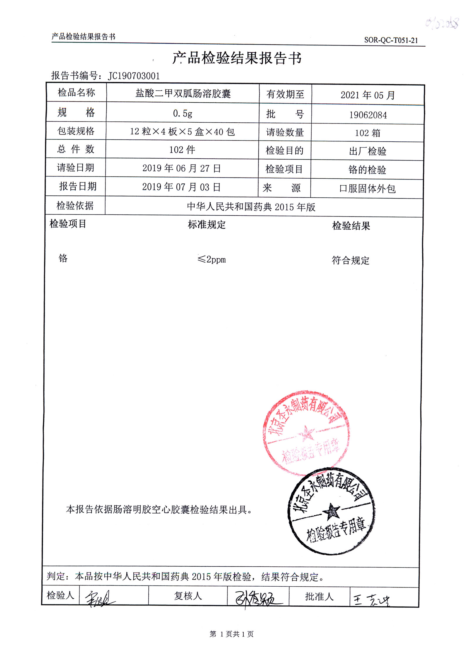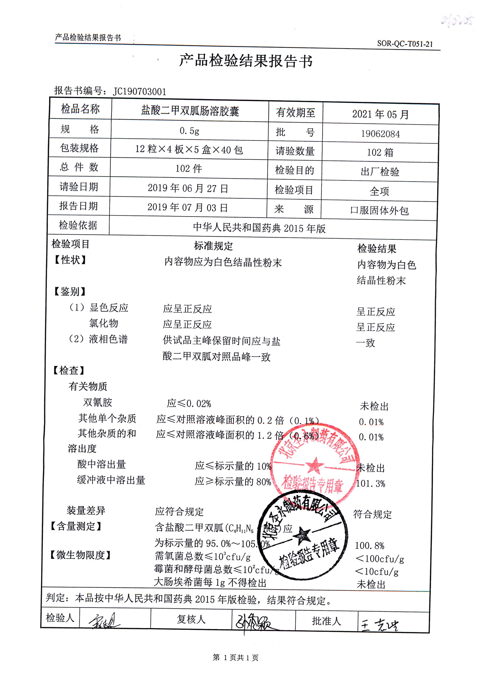 鹽酸二甲雙胍腸溶膠囊 | 0.5g*48s | 19062011(2/2) | 查看詳情 |