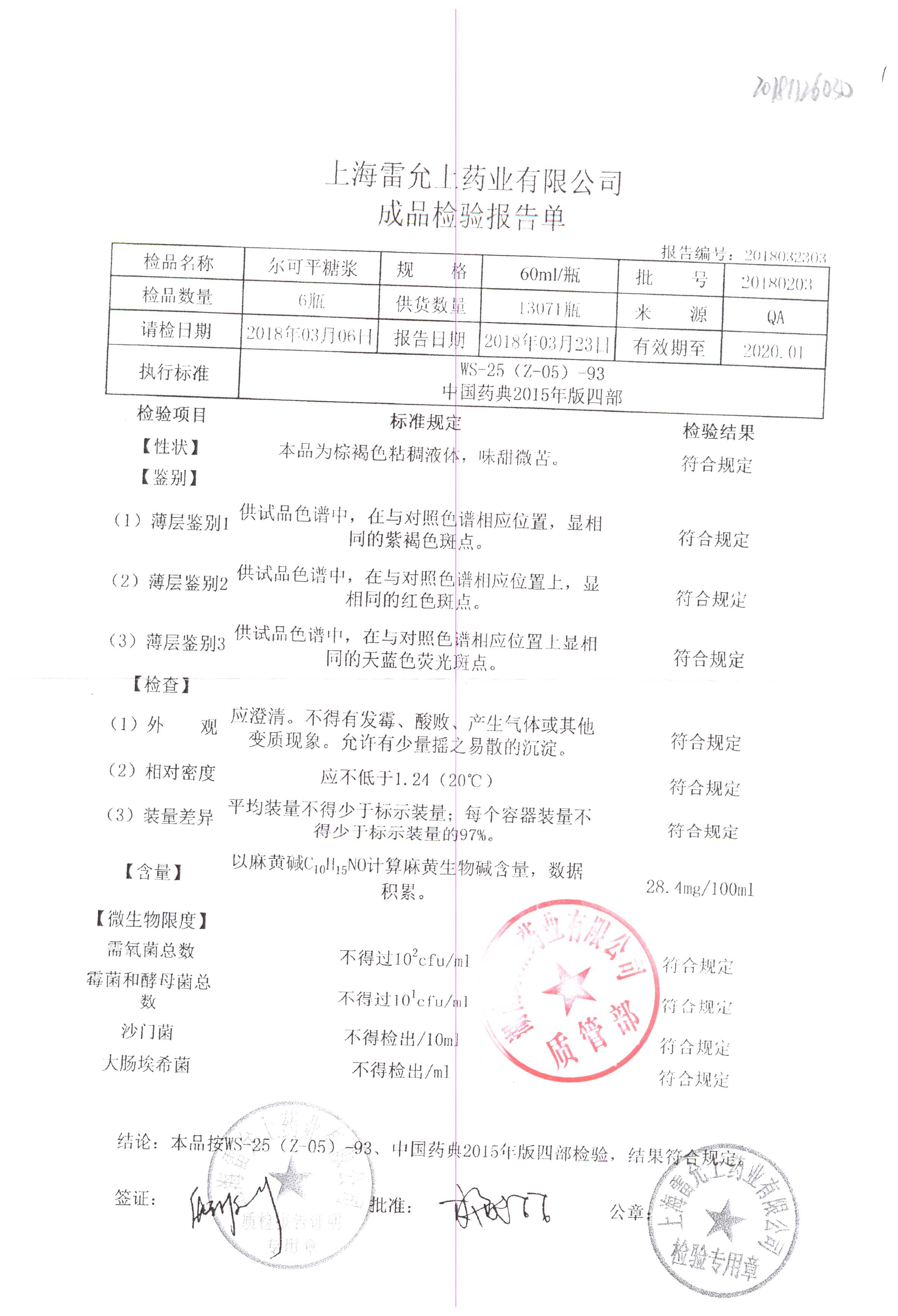 爾可平糖漿 | 60ml | 20180203 | 查看詳情 |