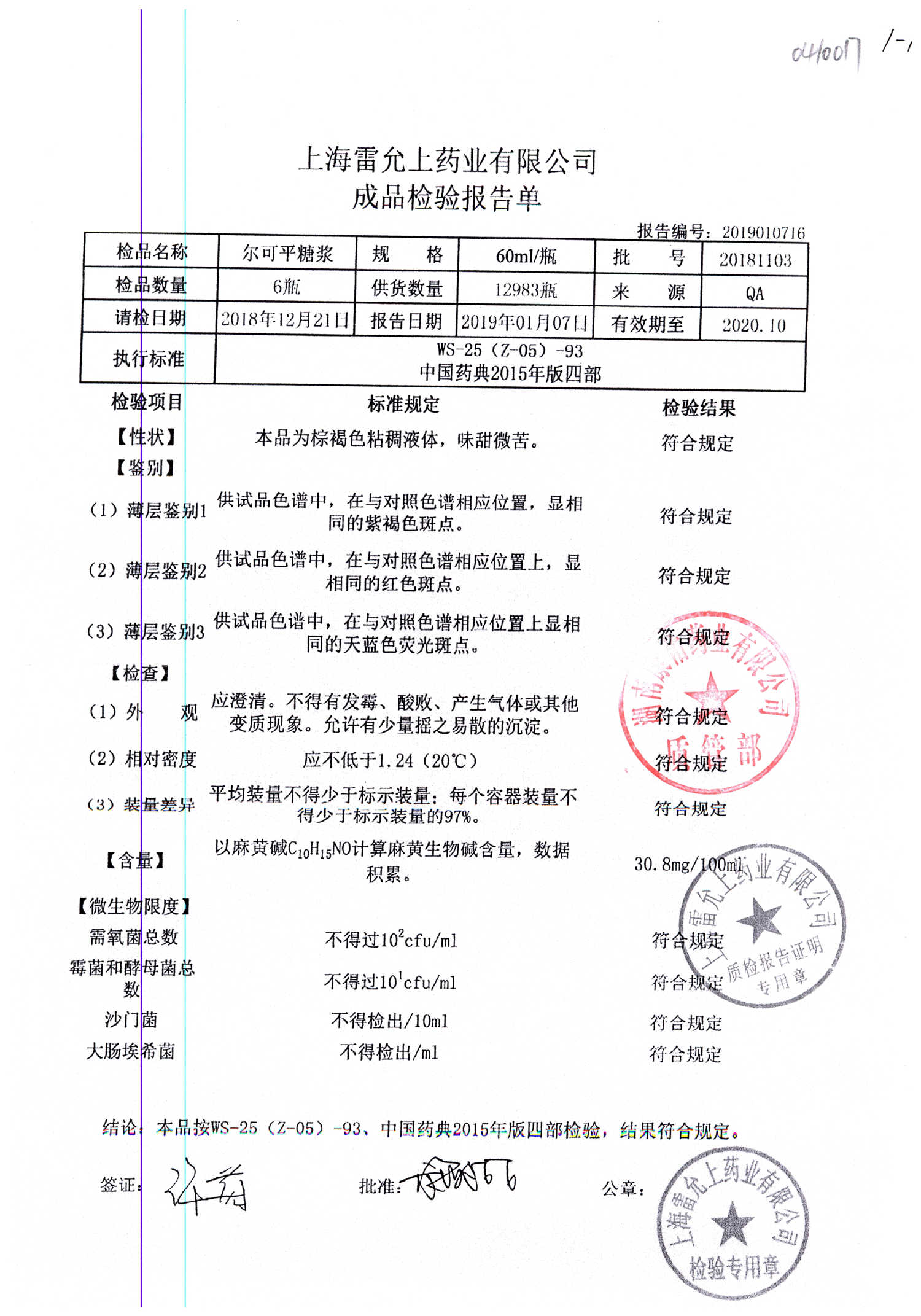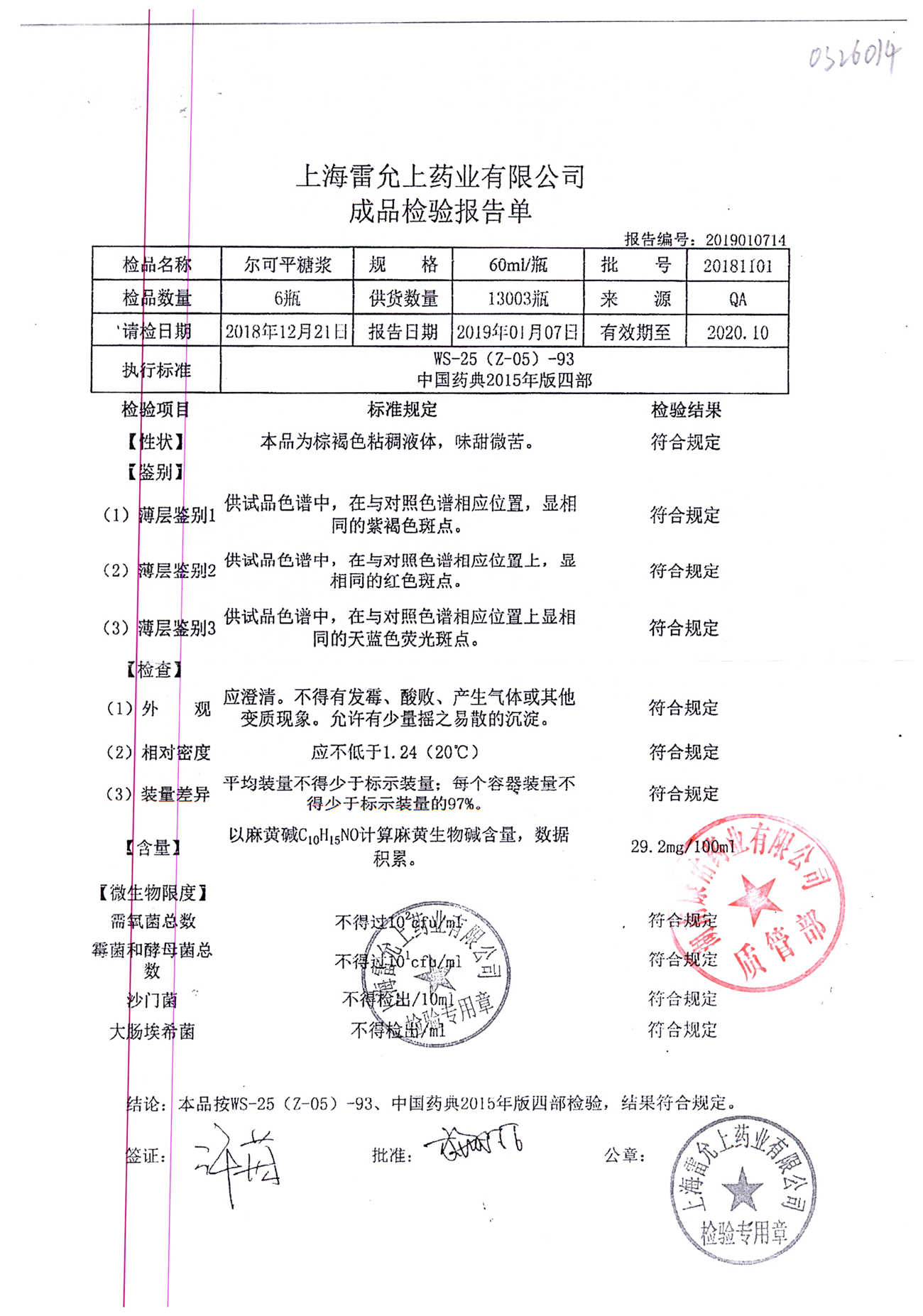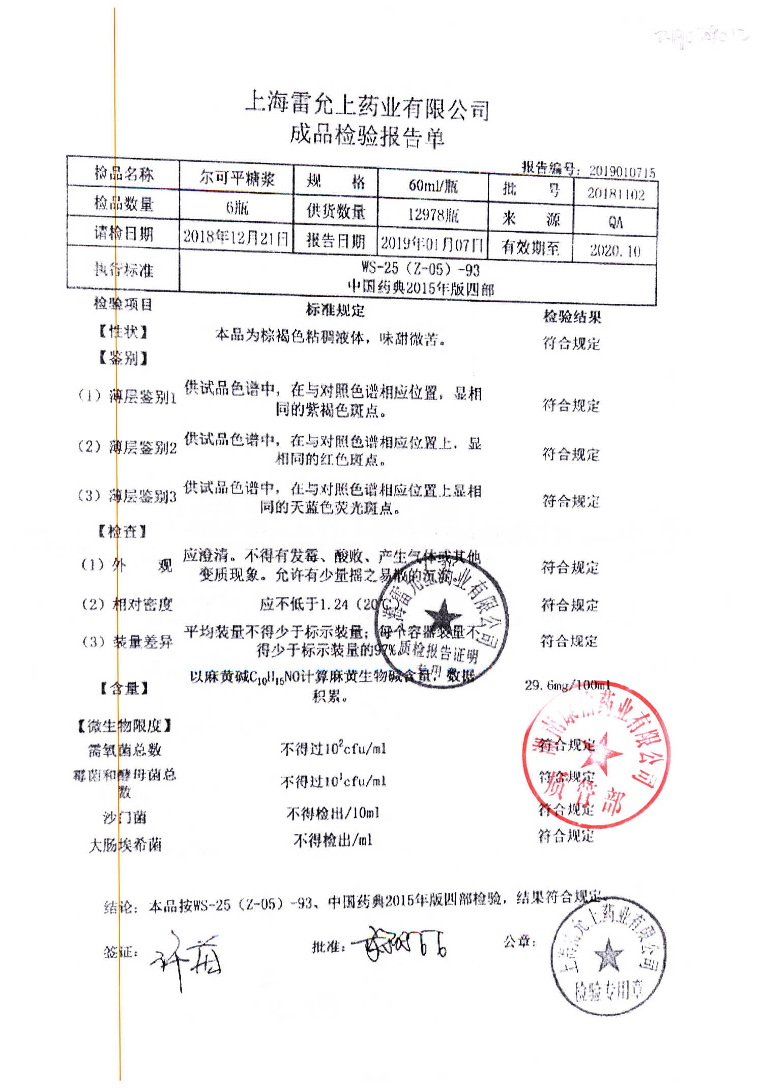 名稱 | 規(guī)格 | 批號 | 藥檢報告 |