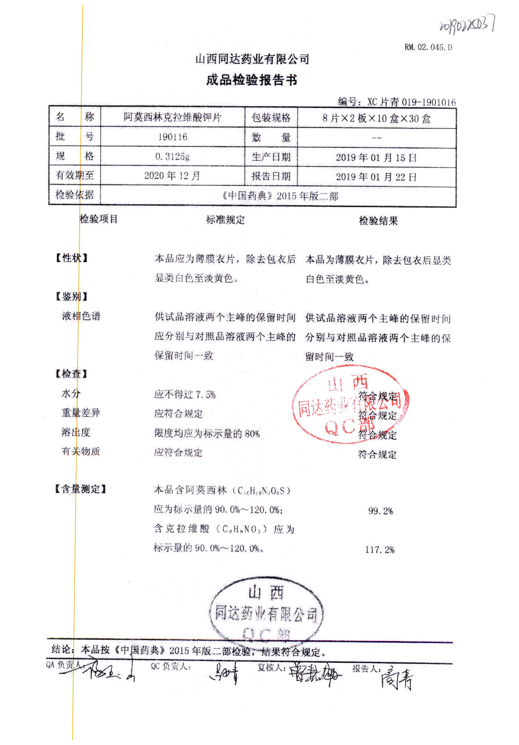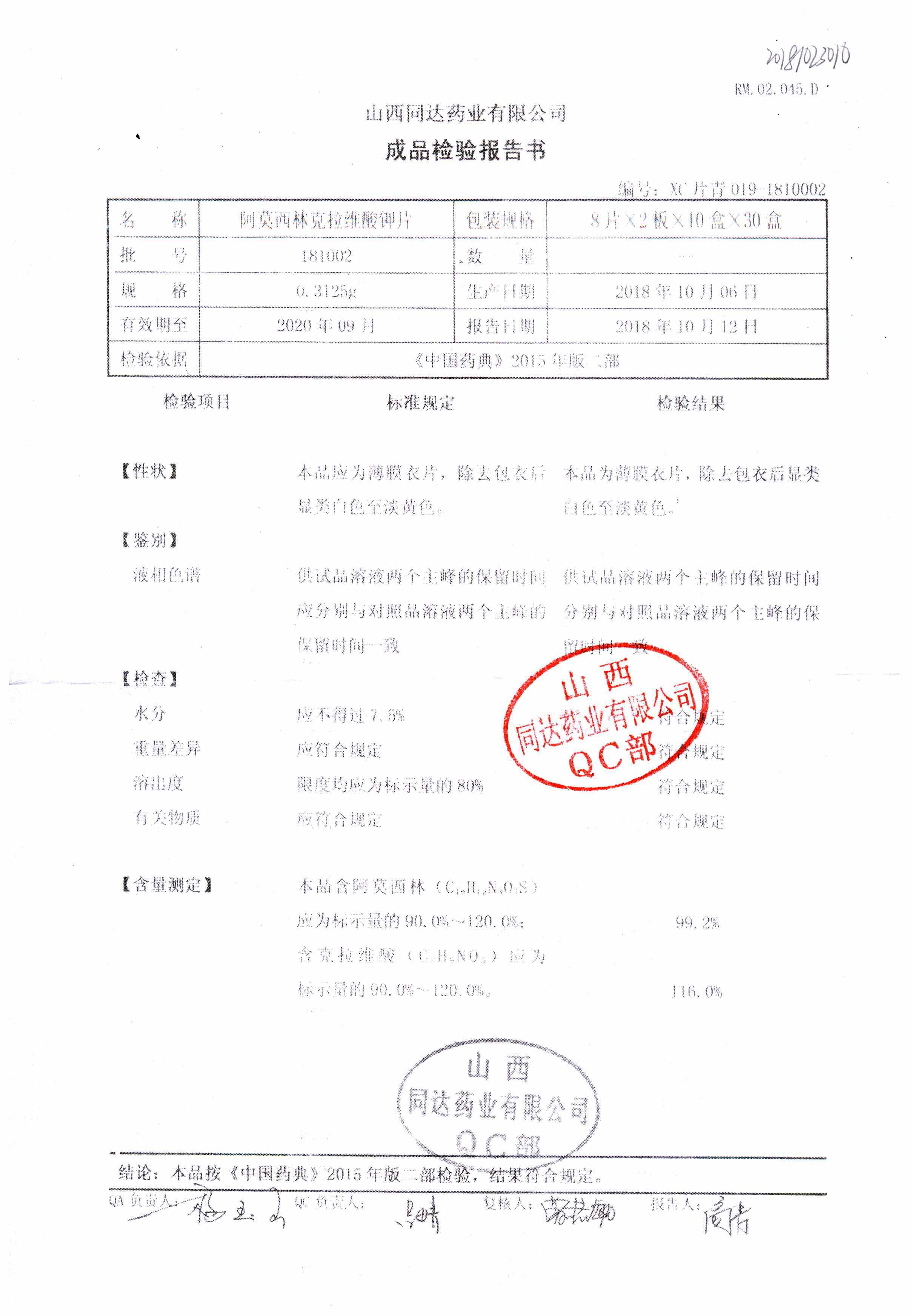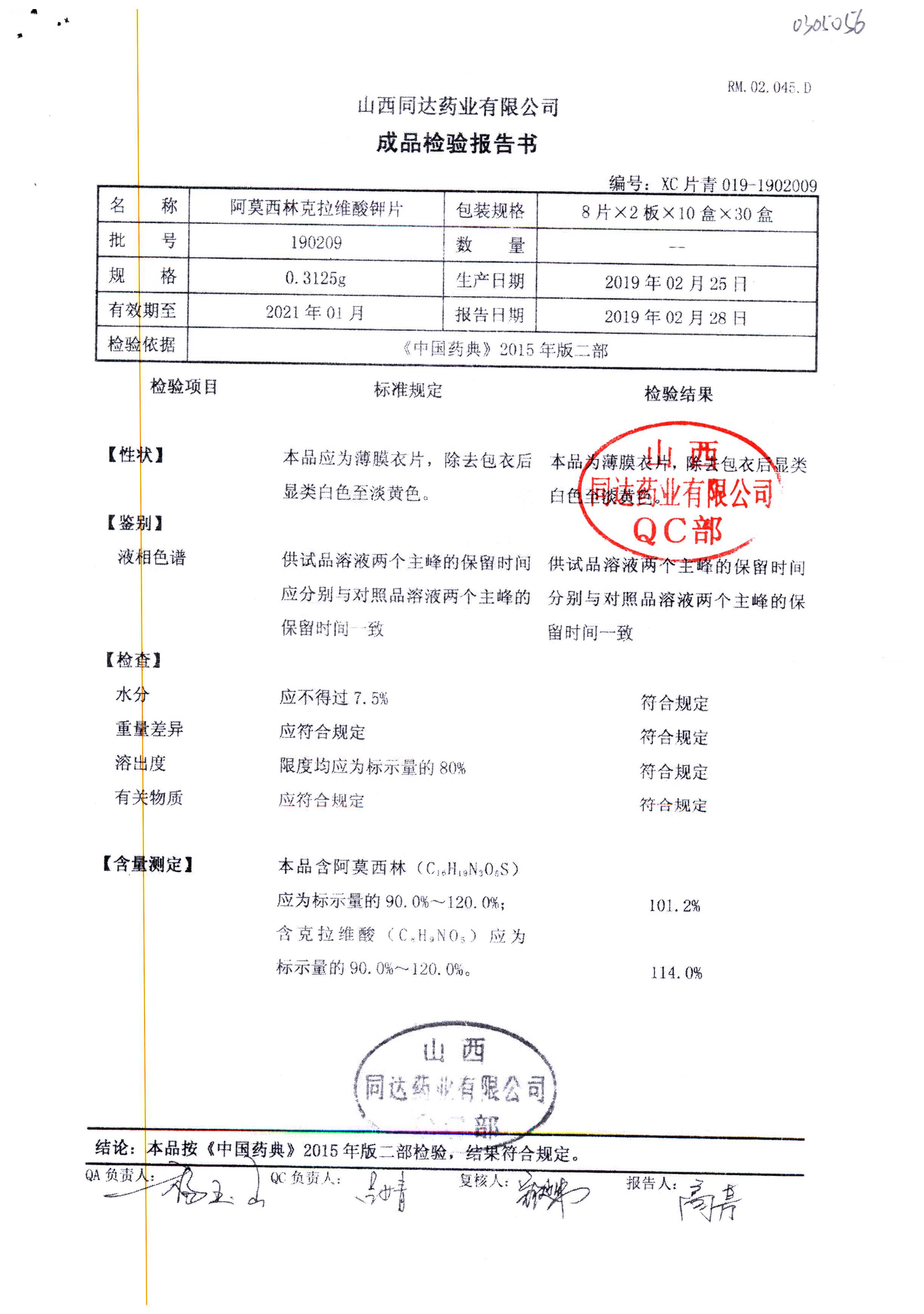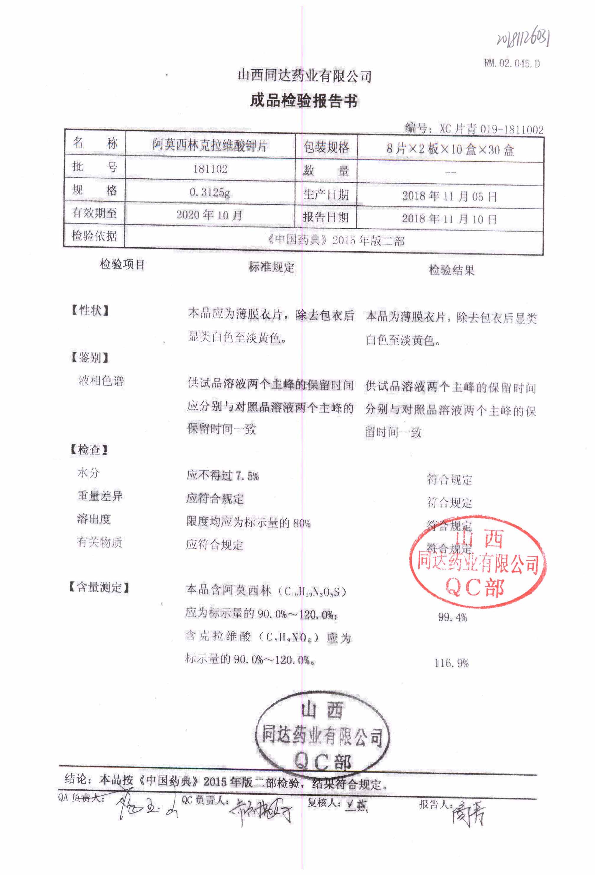 阿莫西林克拉維酸鉀片 | 0.3125g*16s | 190511 | 查看詳情 |
