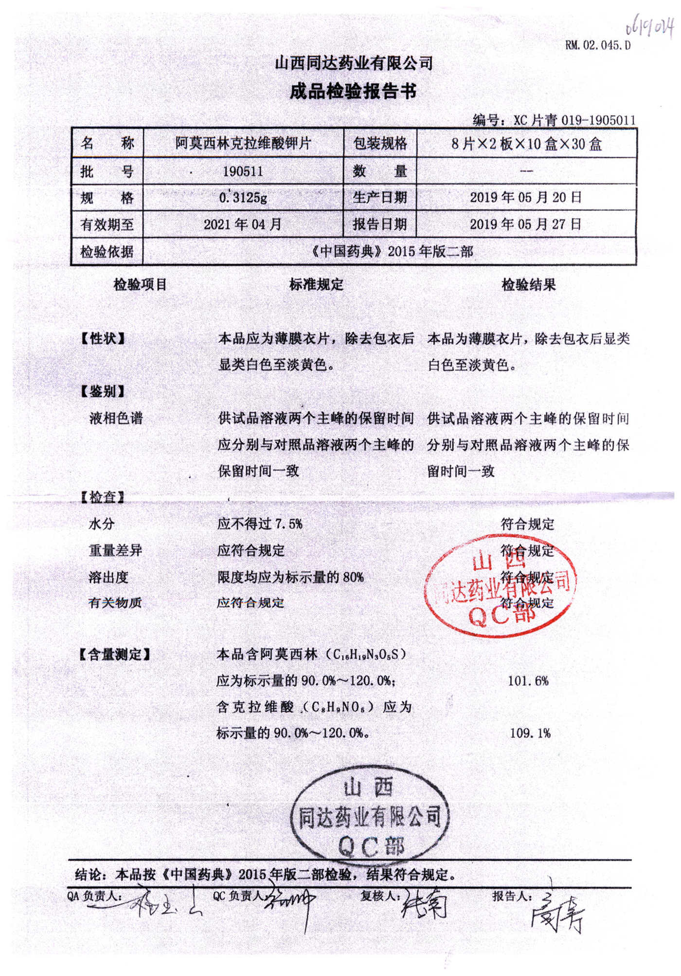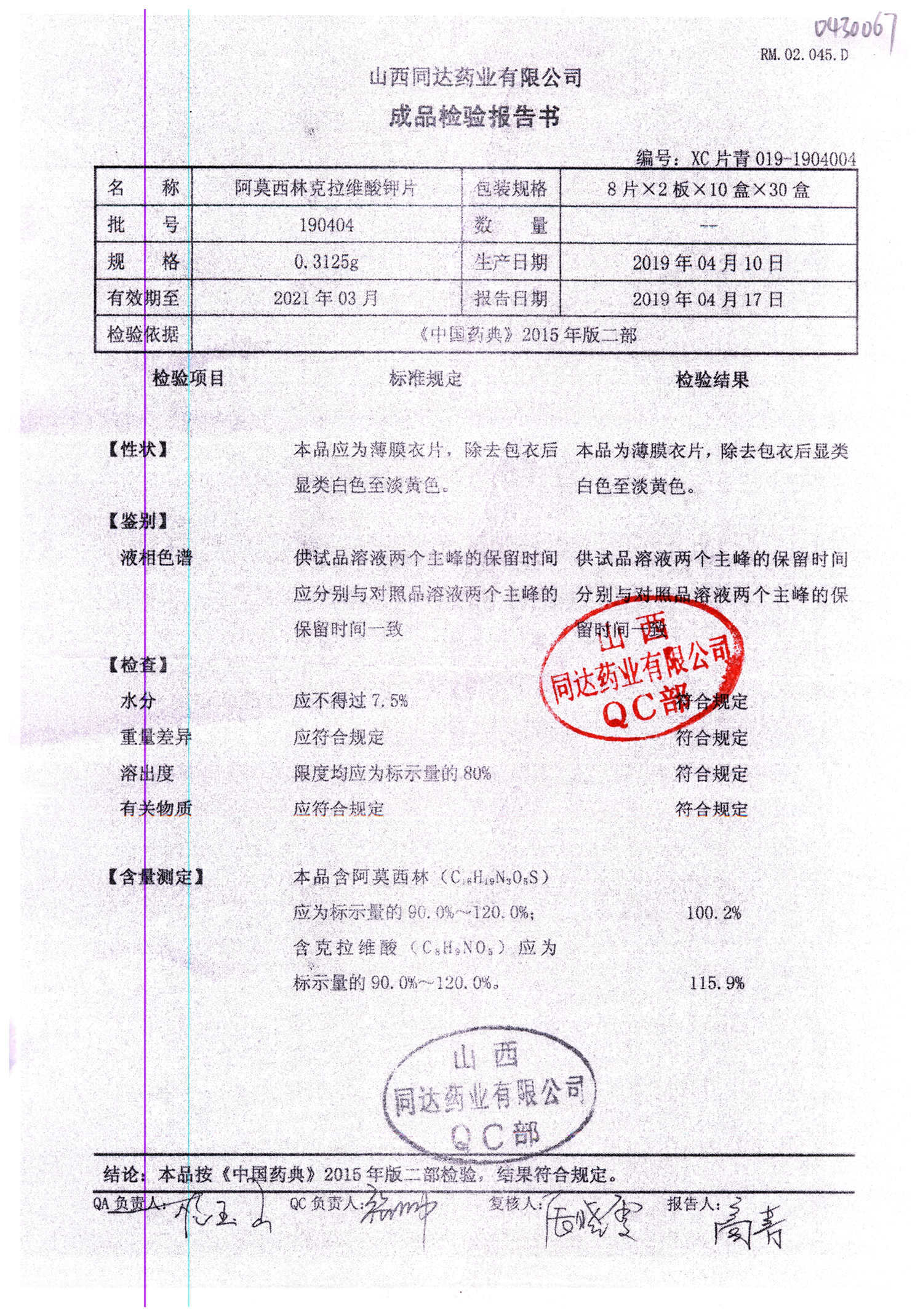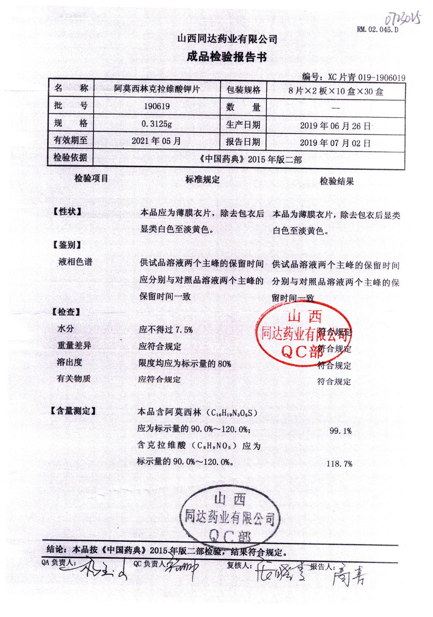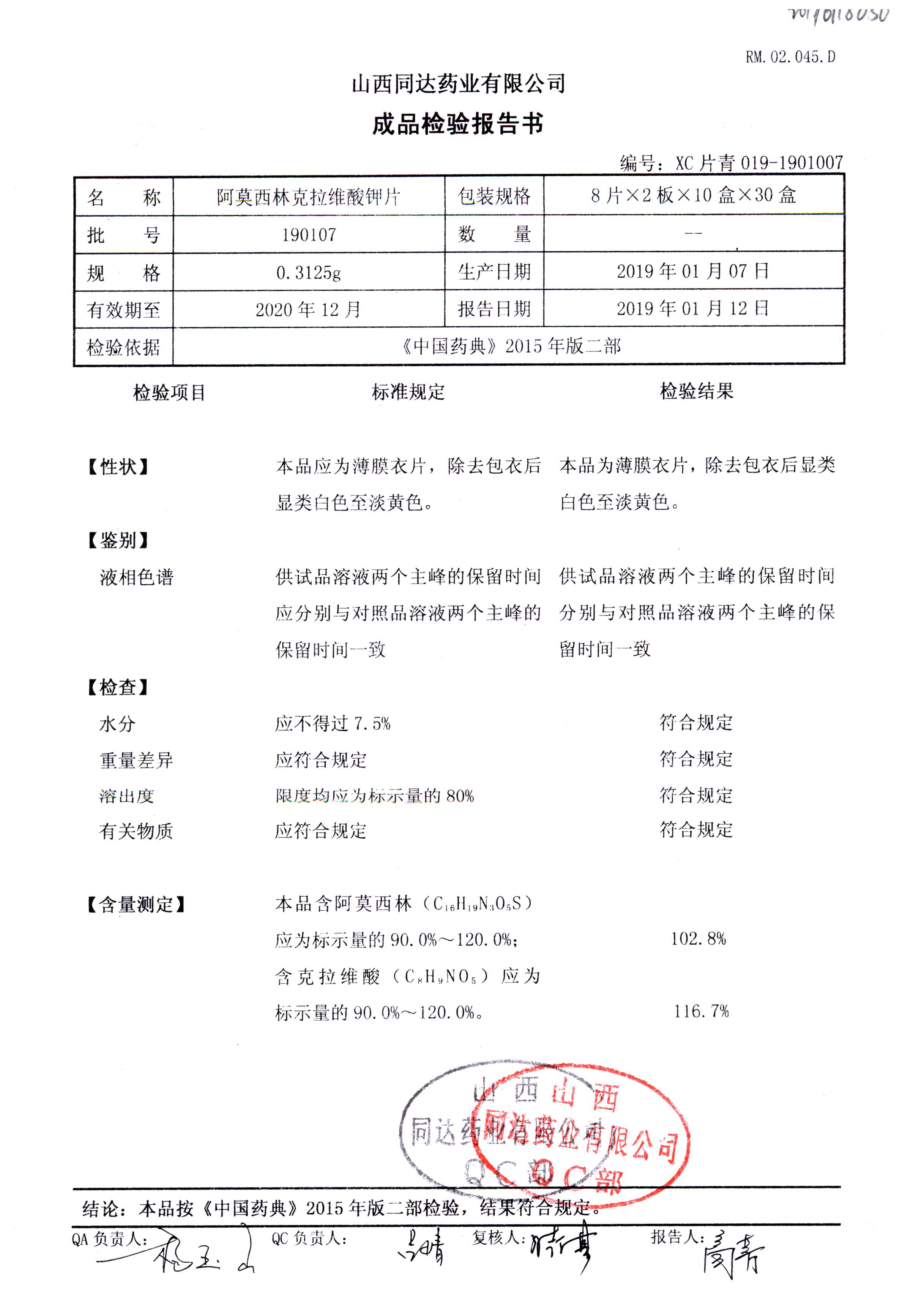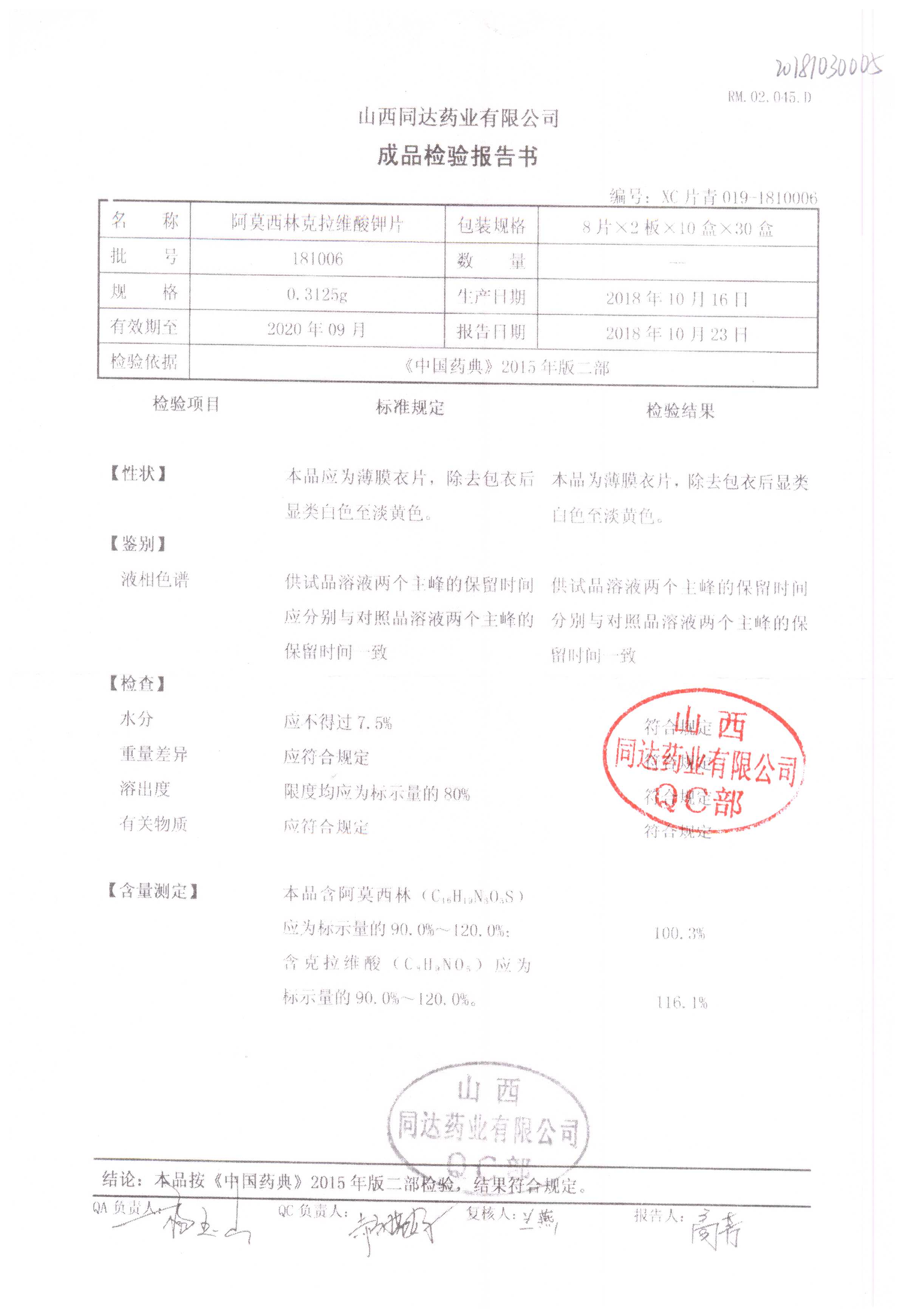阿莫西林克拉維酸鉀片 | 0.3125g*16s | 190511 | 查看詳情 |