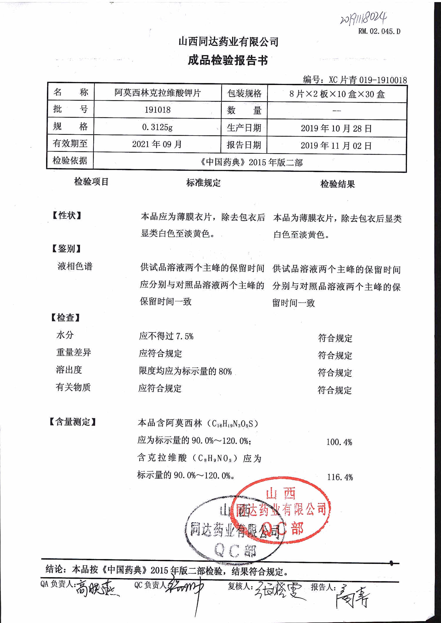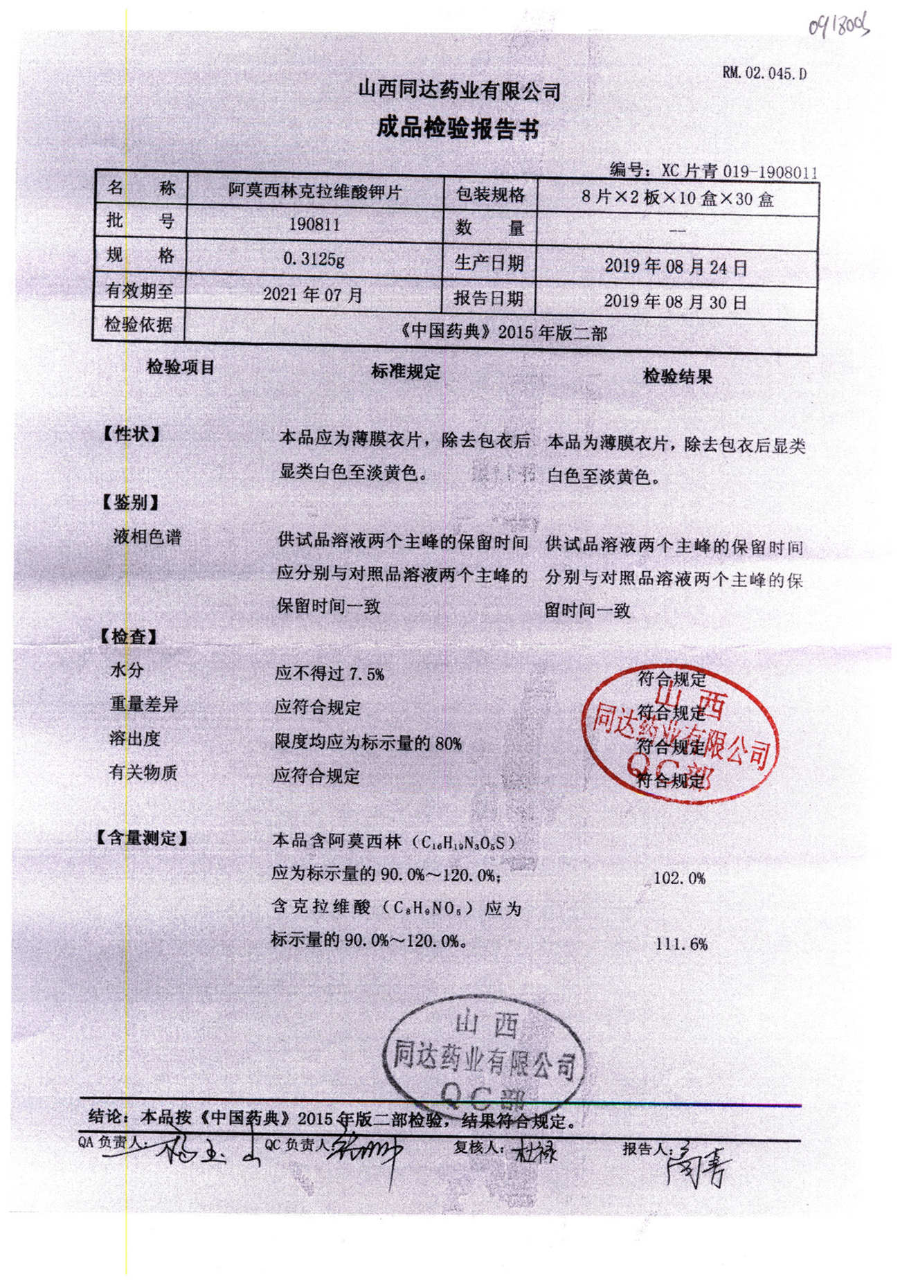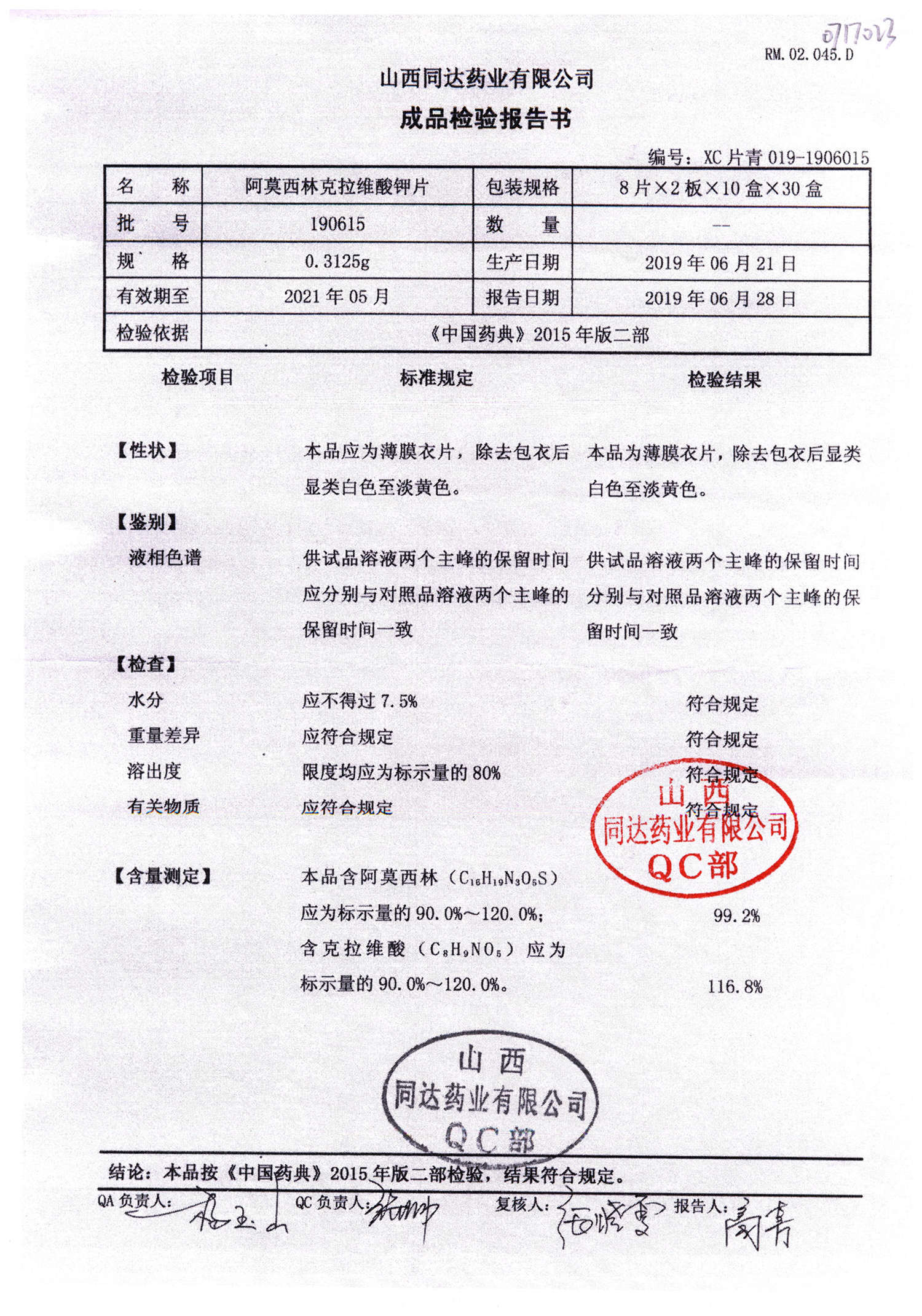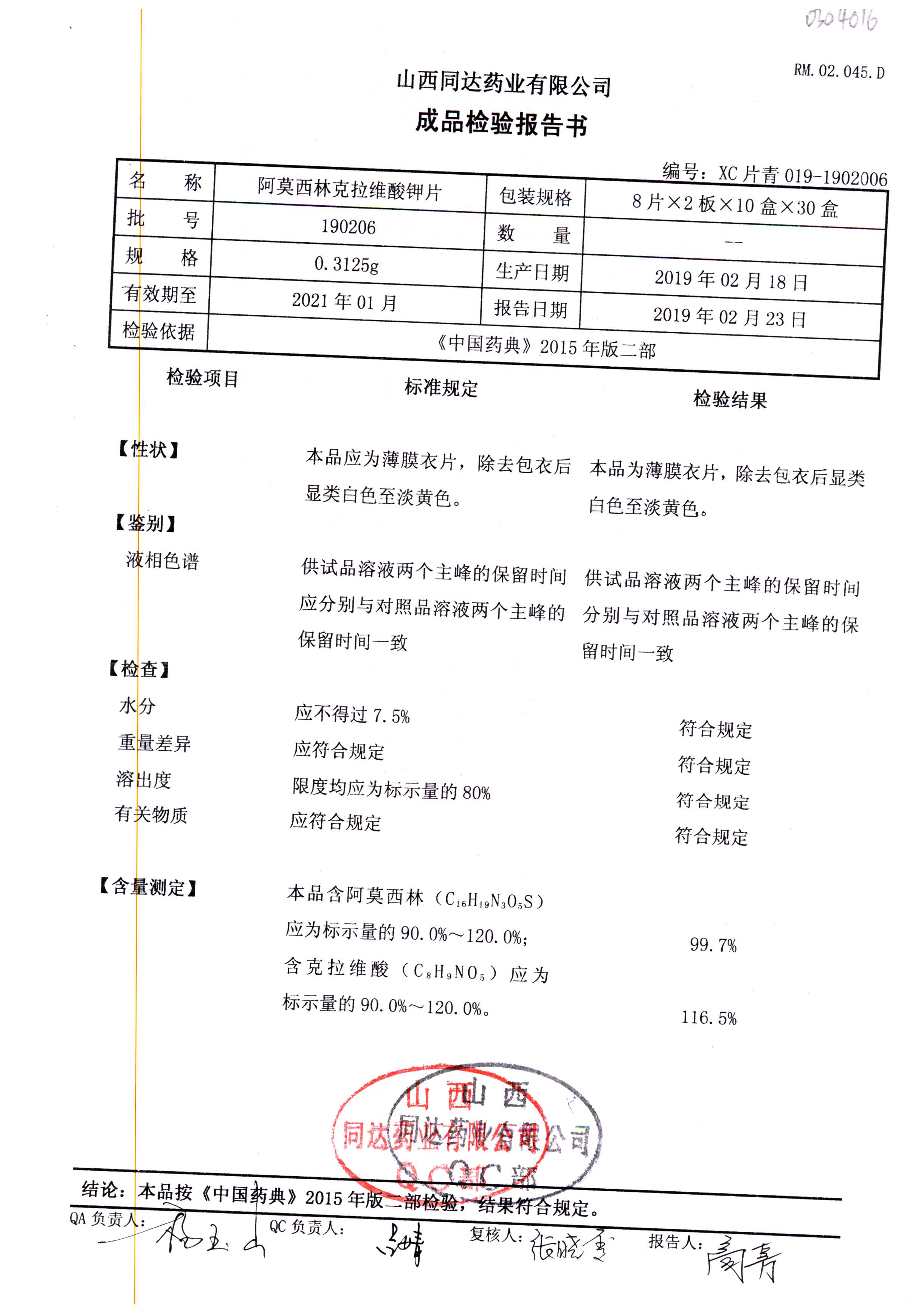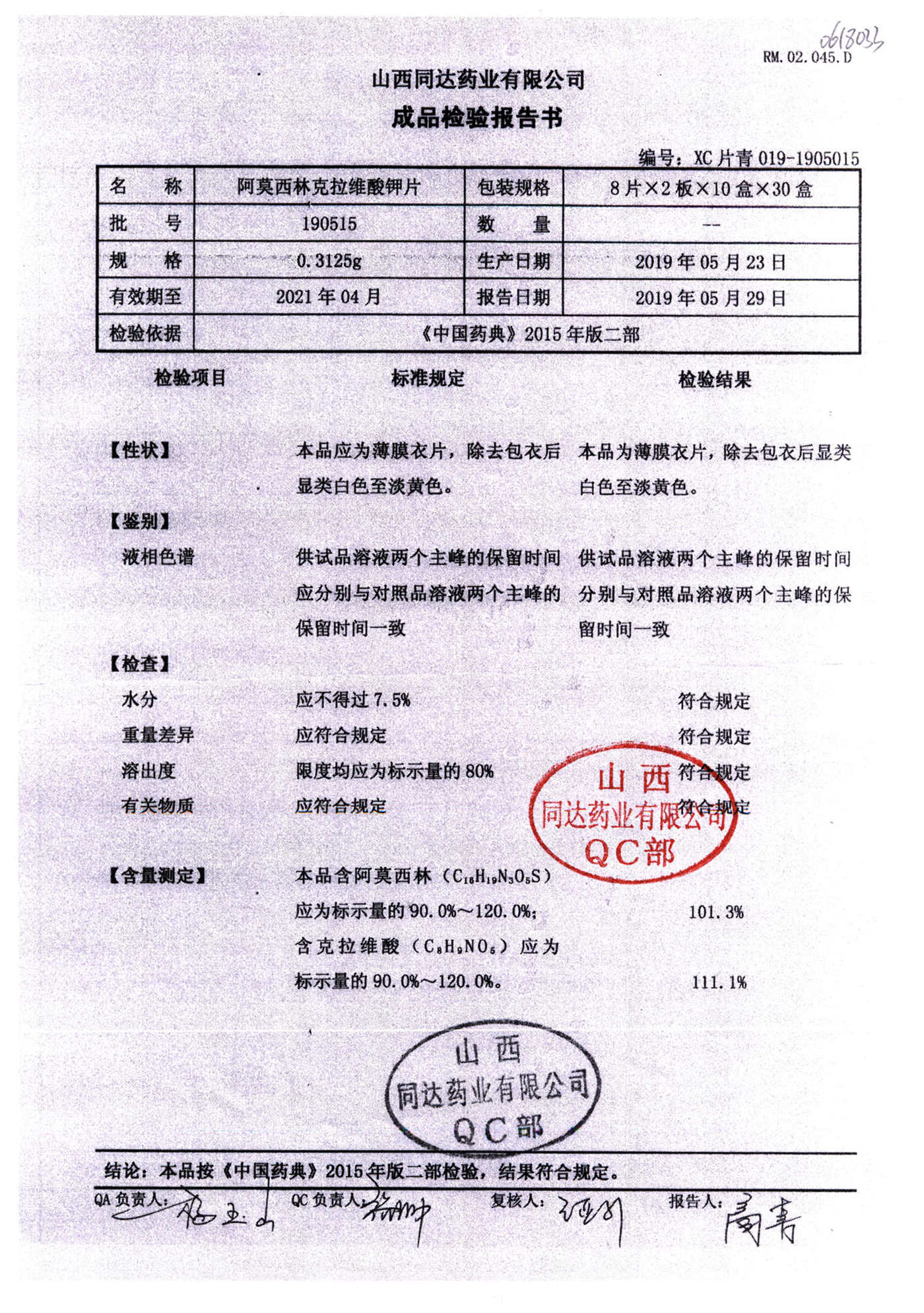阿莫西林克拉維酸鉀片 | 0.3125g*16s | 190511 | 查看詳情 |
