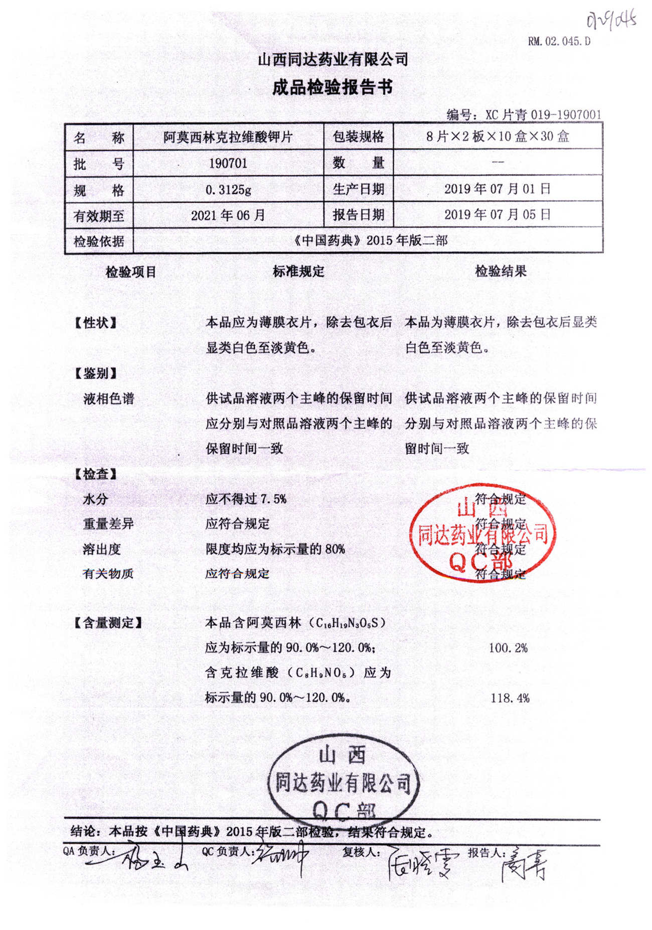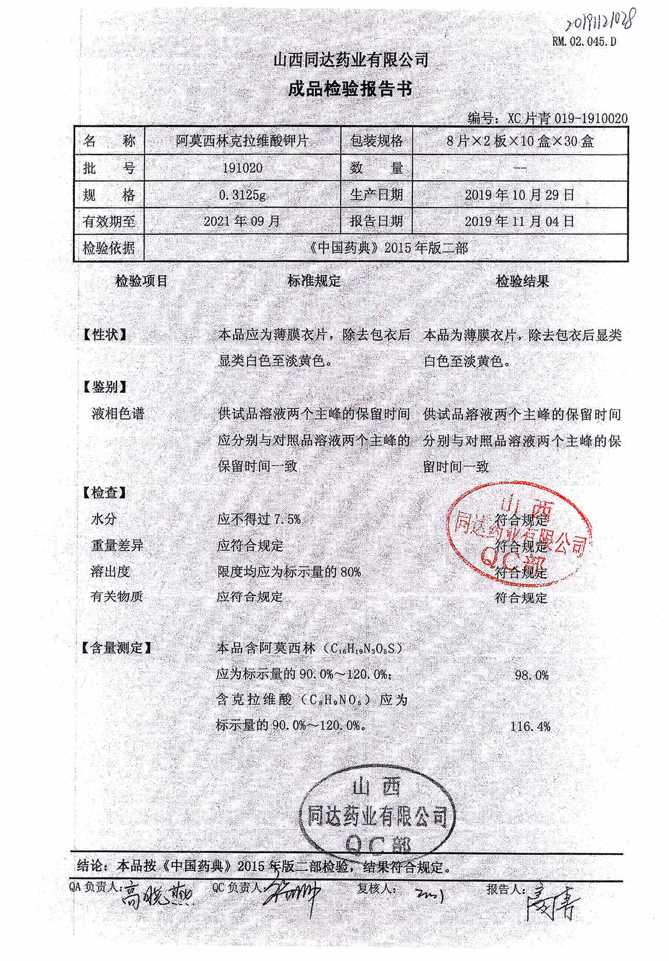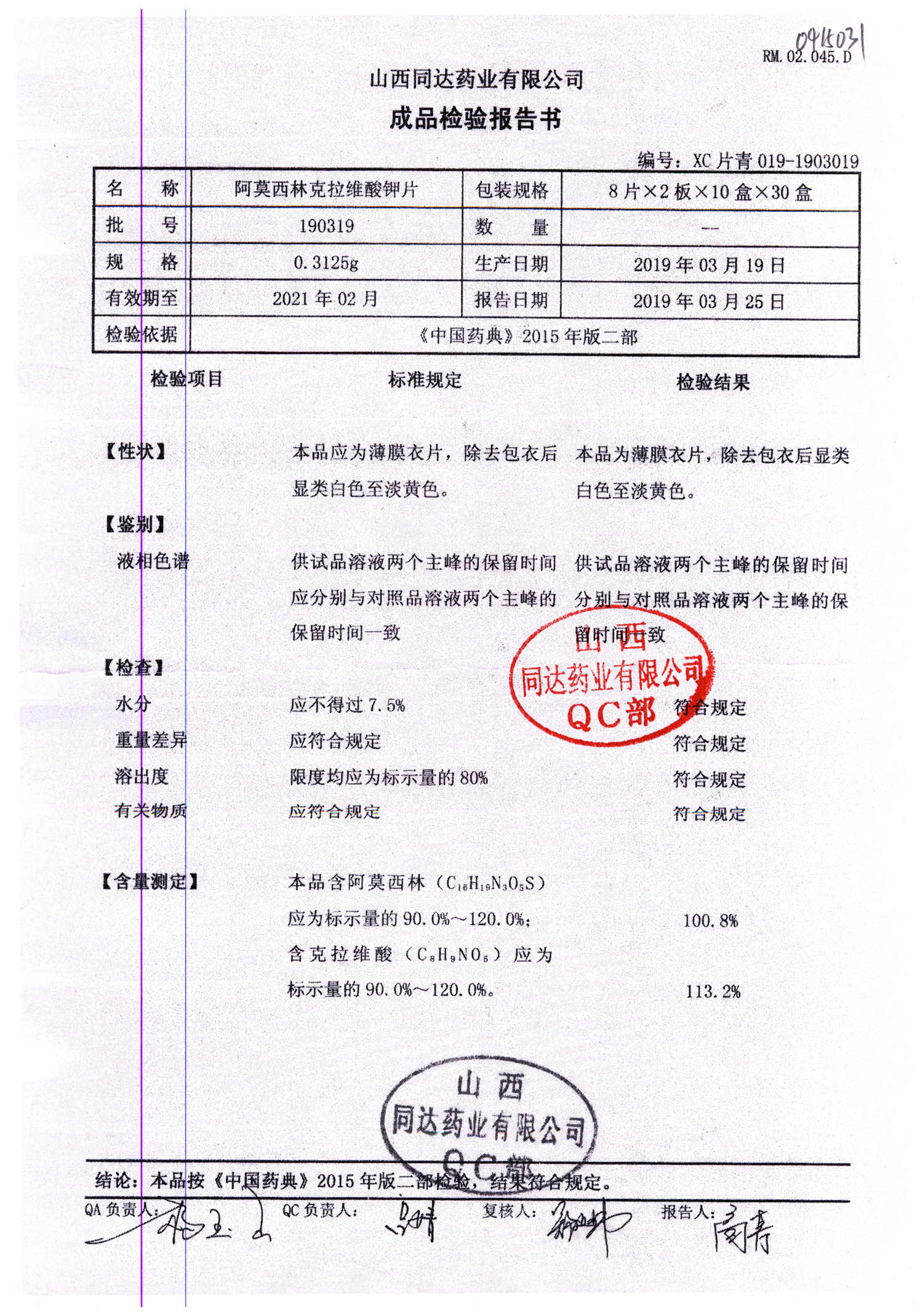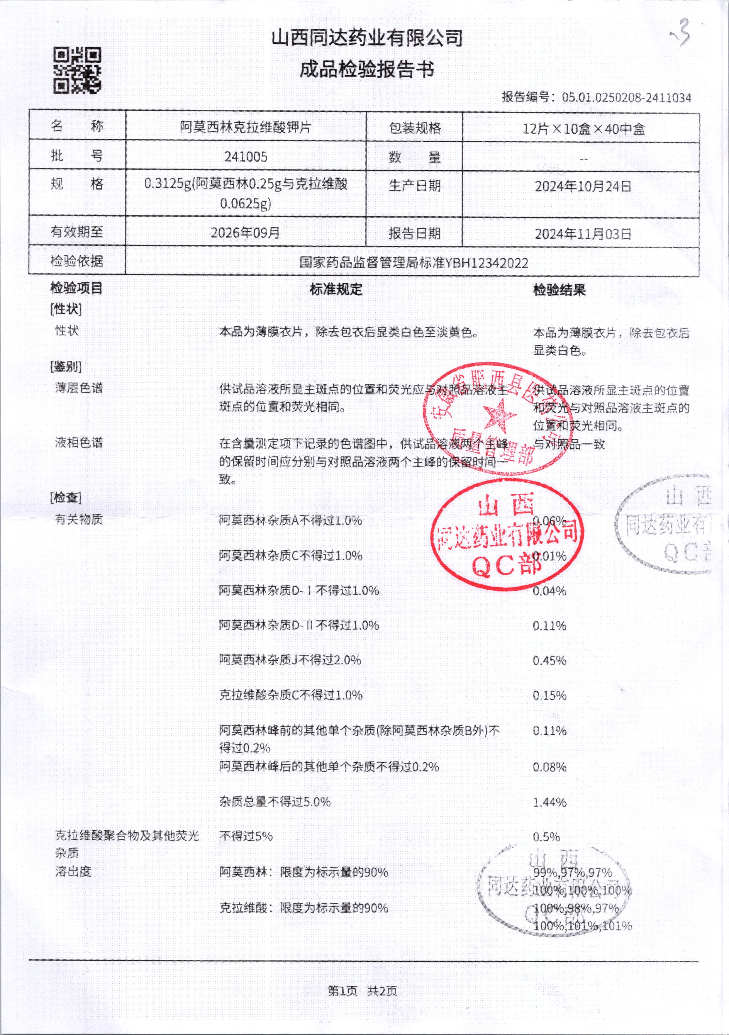 阿莫西林克拉維酸鉀片 | 0.3125g*16s | 190511 | 查看詳情 |