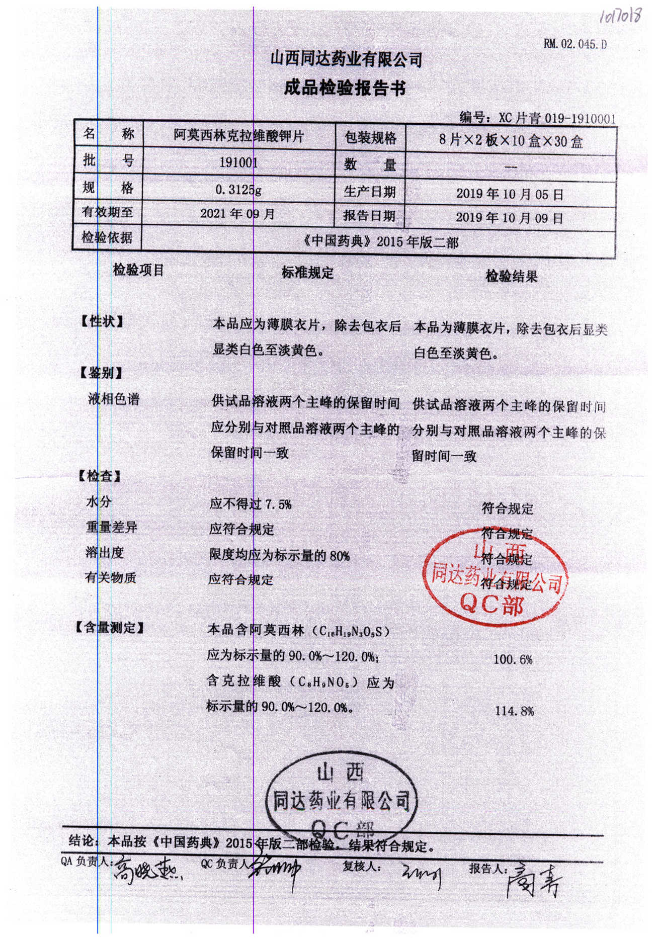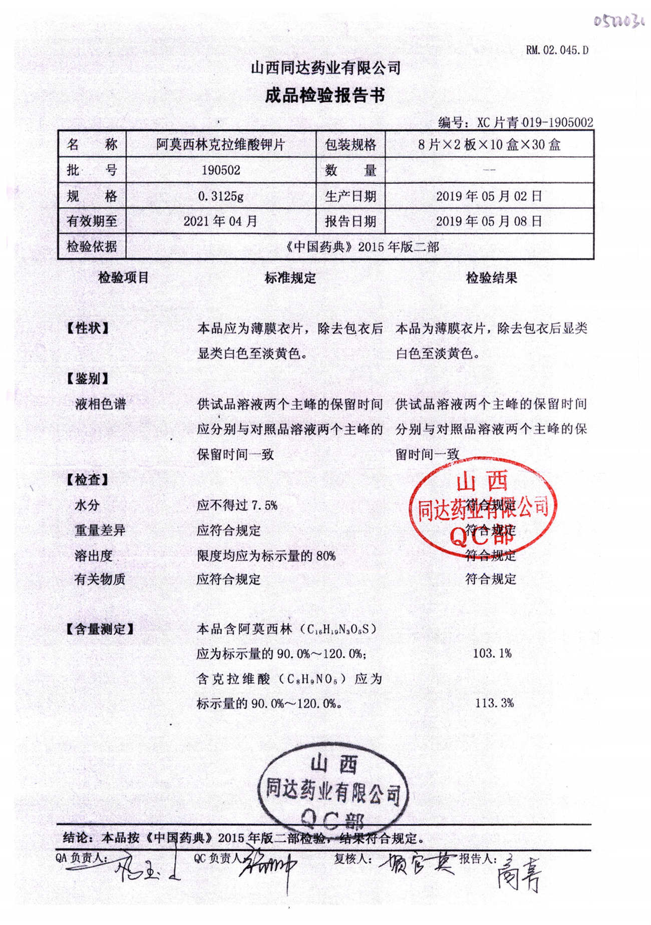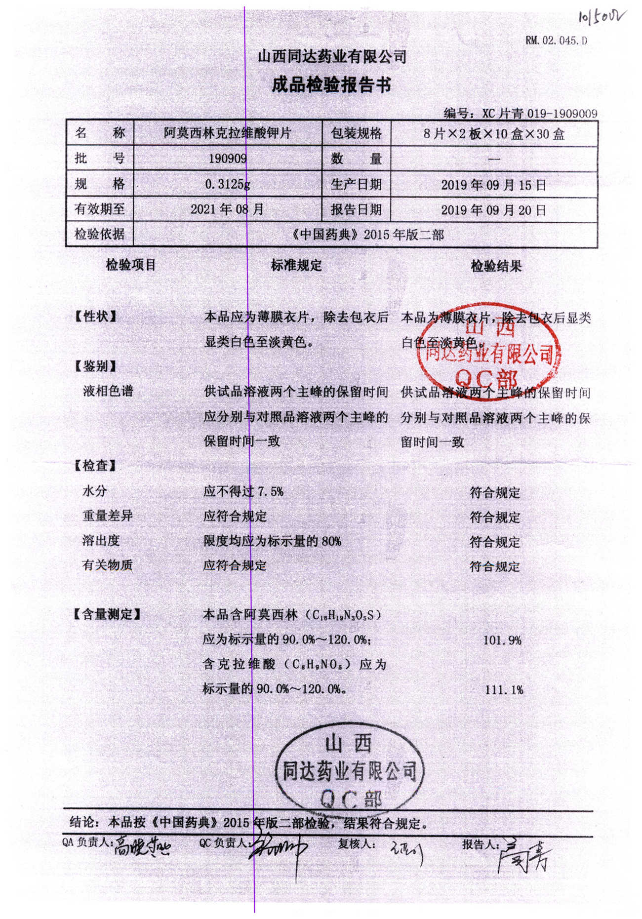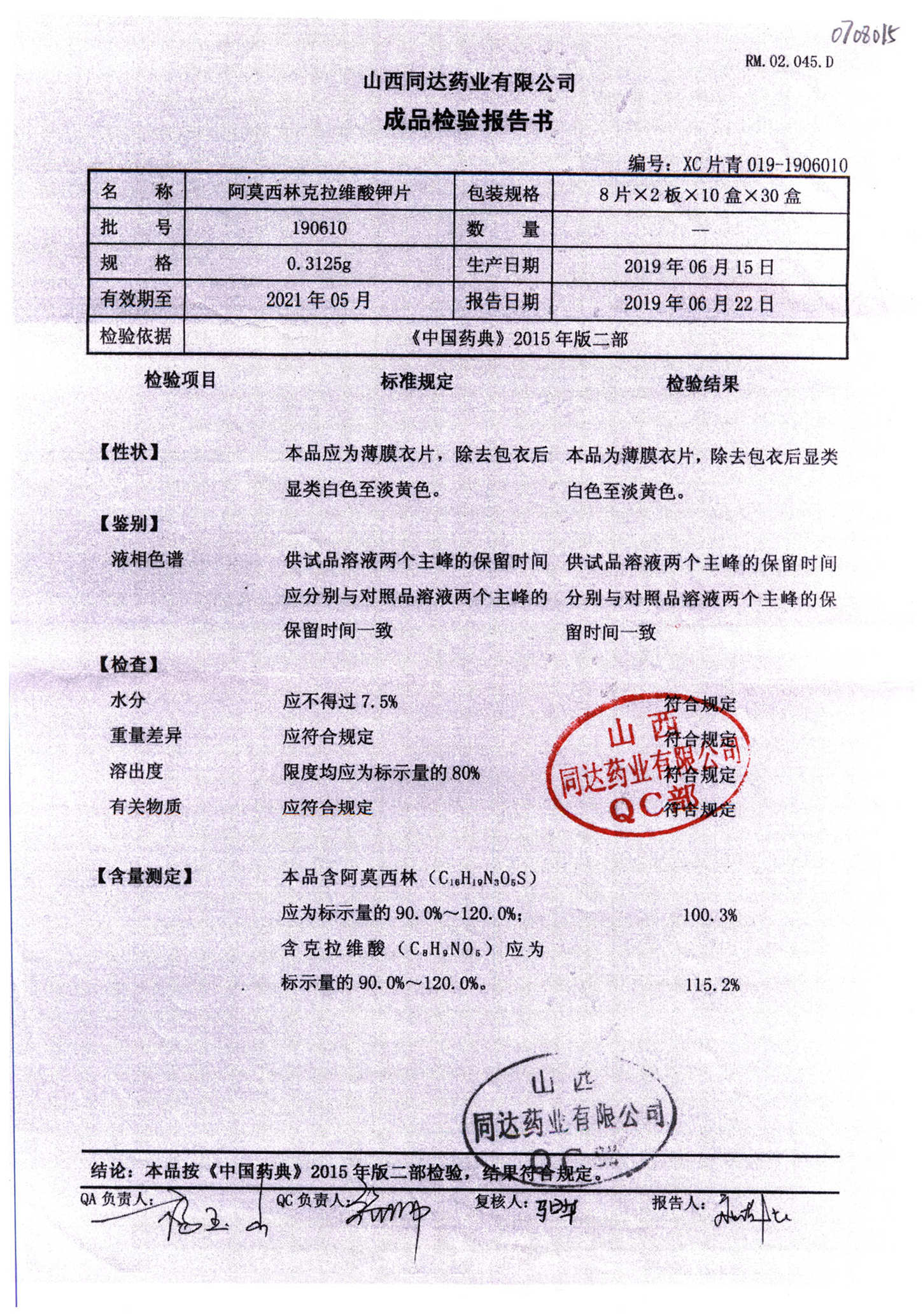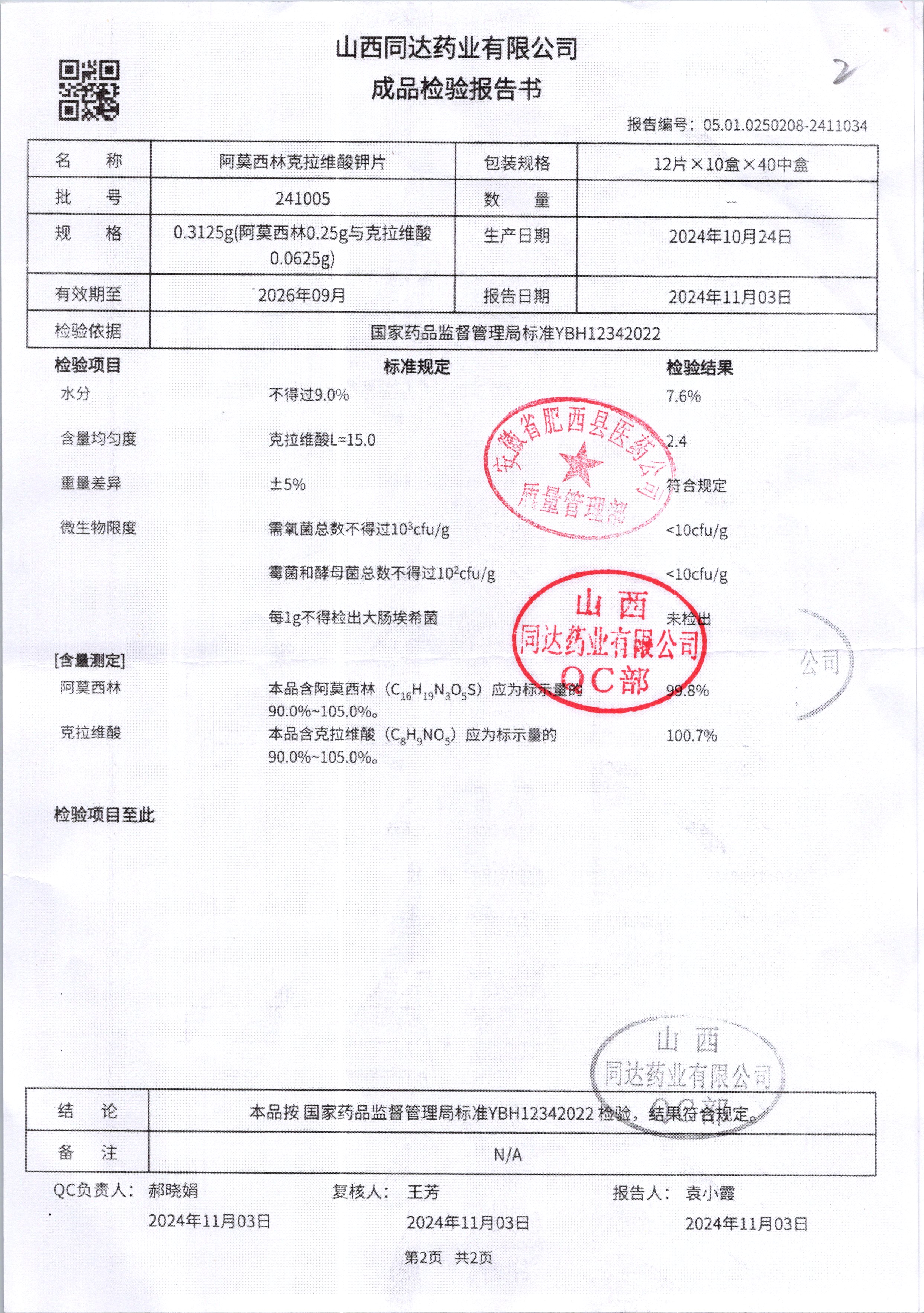 阿莫西林克拉維酸鉀片 | 0.3125g*16s | 190511 | 查看詳情 |