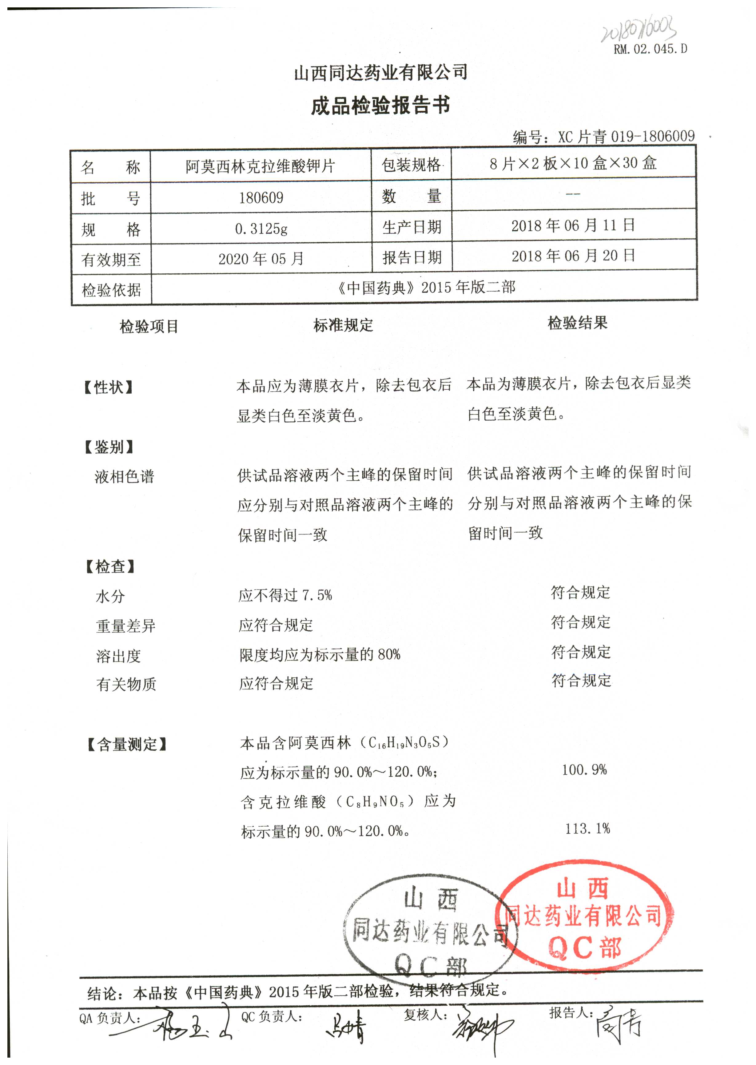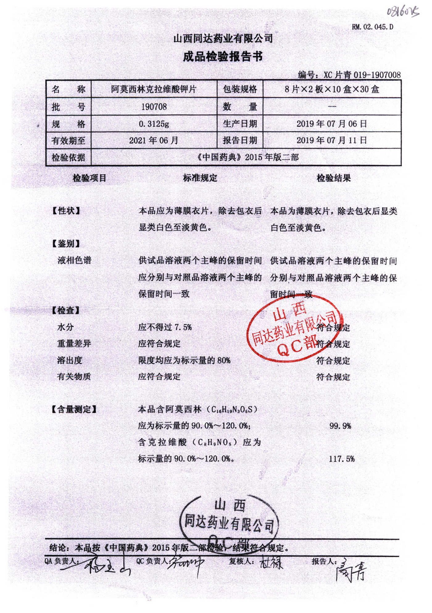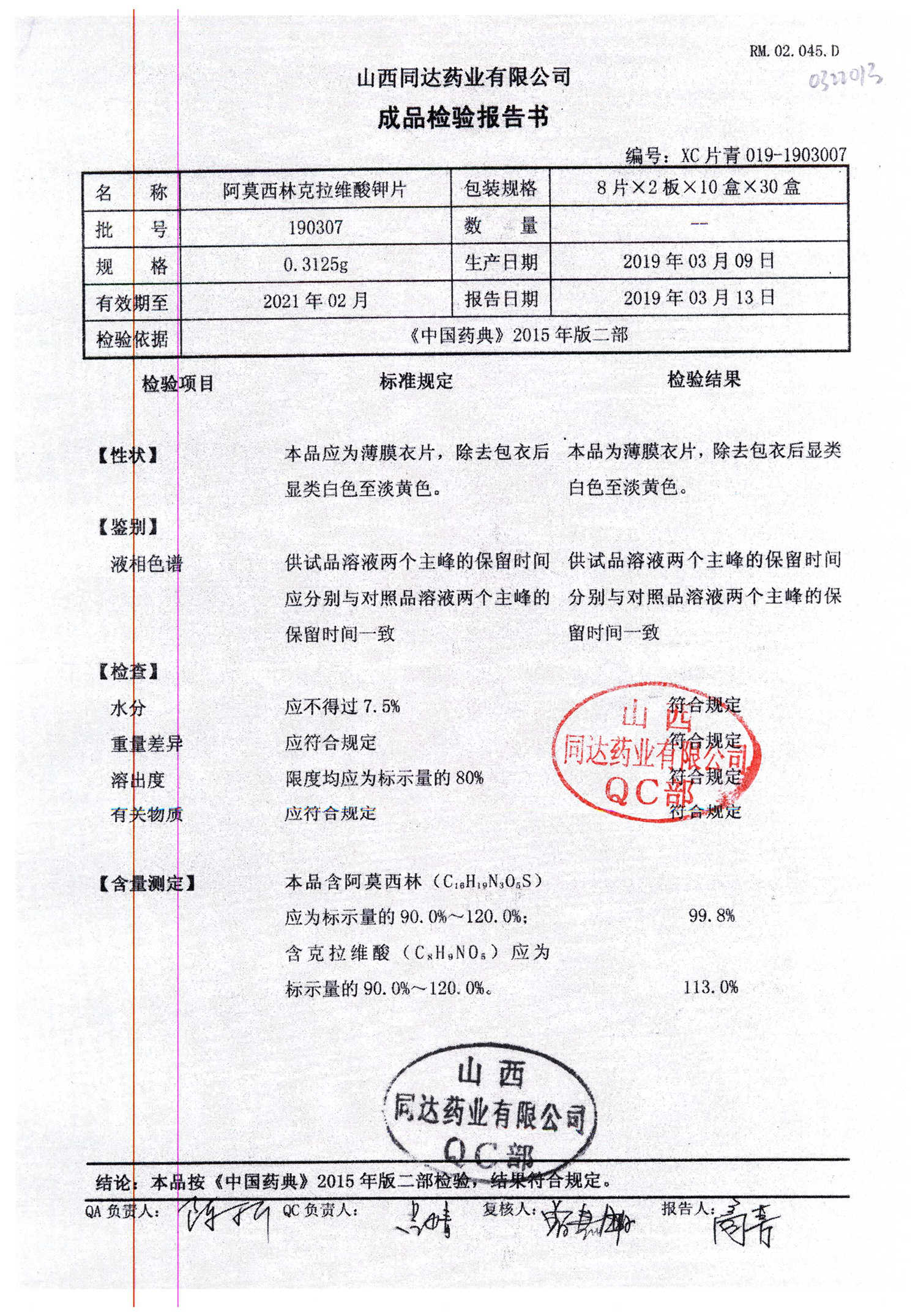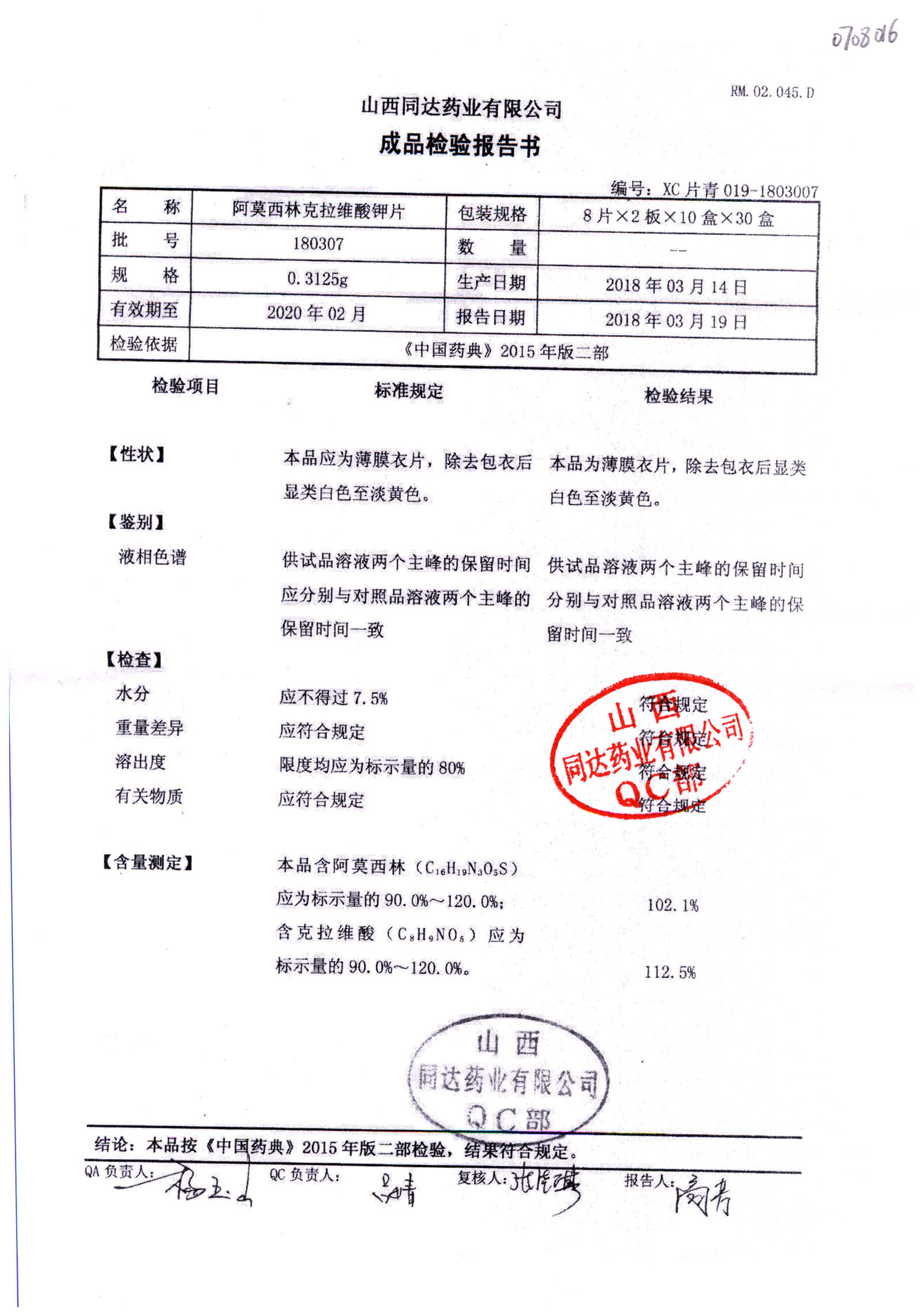 阿莫西林克拉維酸鉀片 | 0.3125g*16s | 190811 | 查看詳情 |