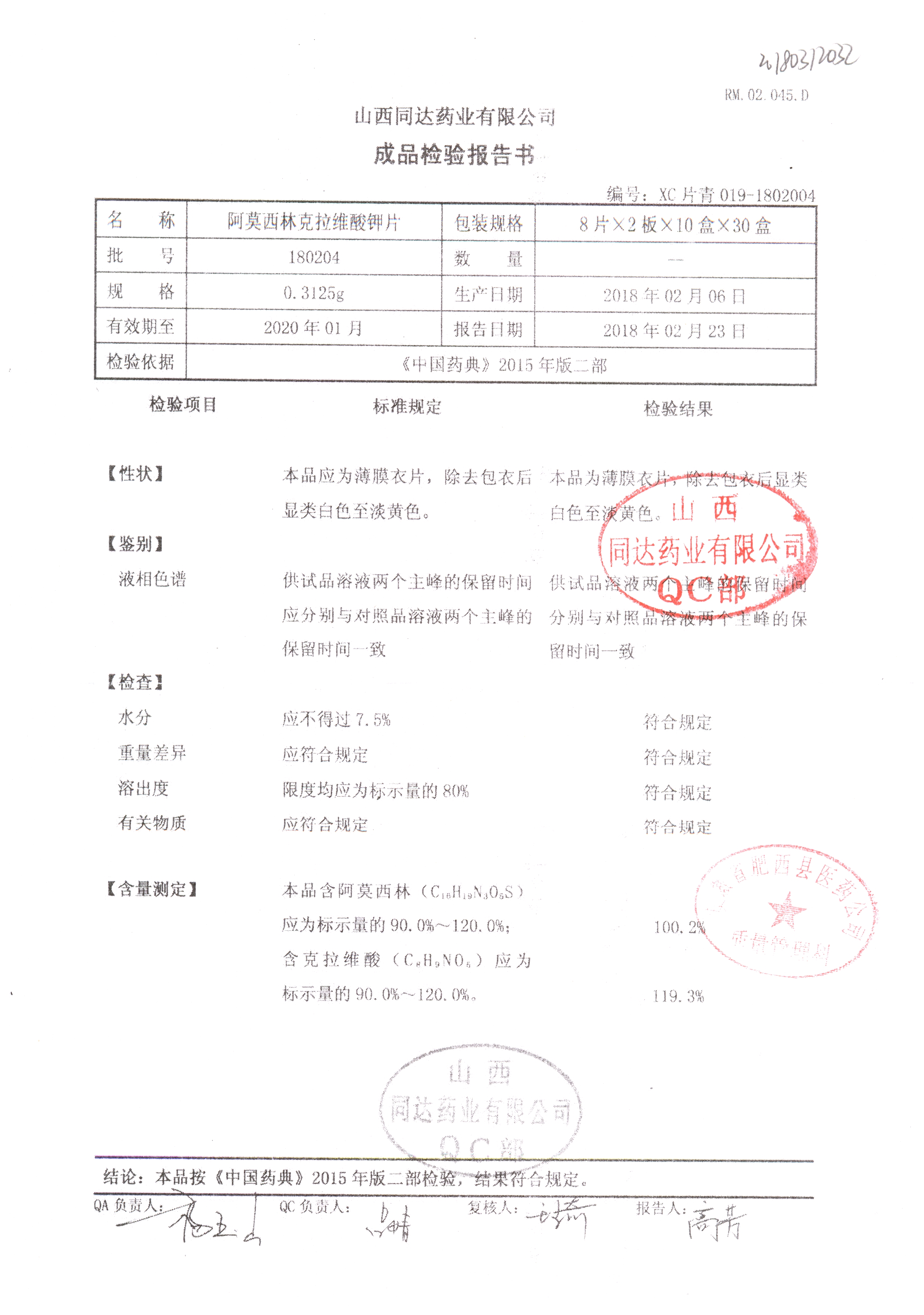 阿莫西林克拉維酸鉀片 | 0.3125g*16s | 180126 | 查看詳情 |