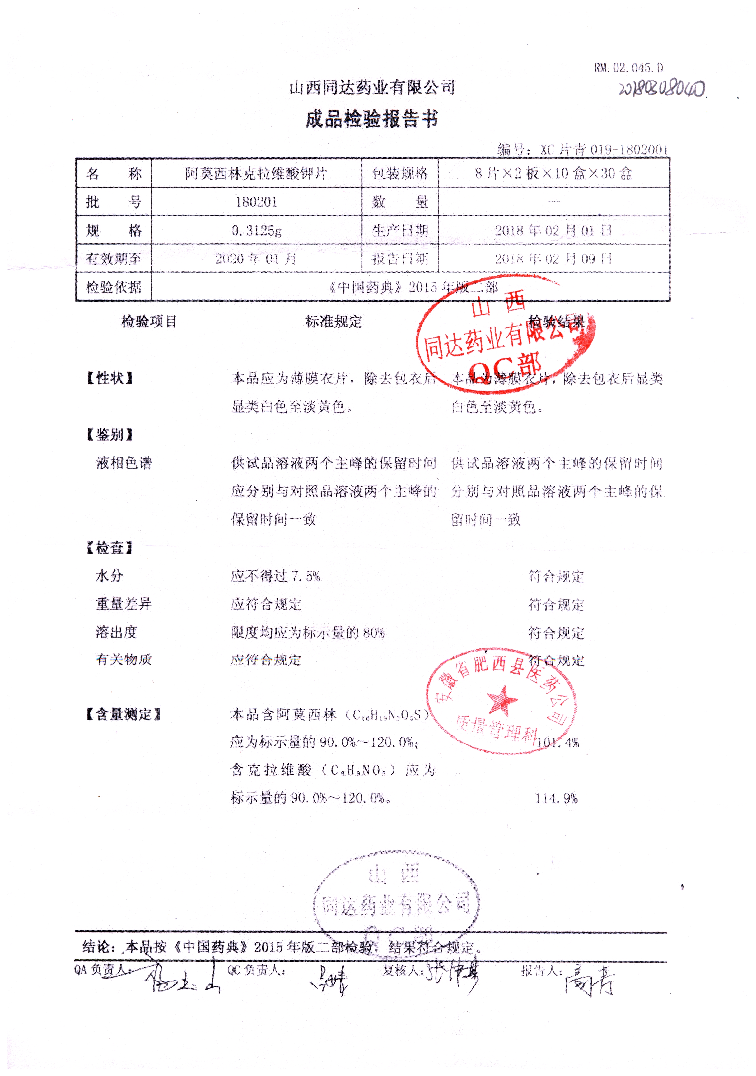 阿莫西林克拉維酸鉀片 | 0.3125g*16s | 190701 | 查看詳情 |