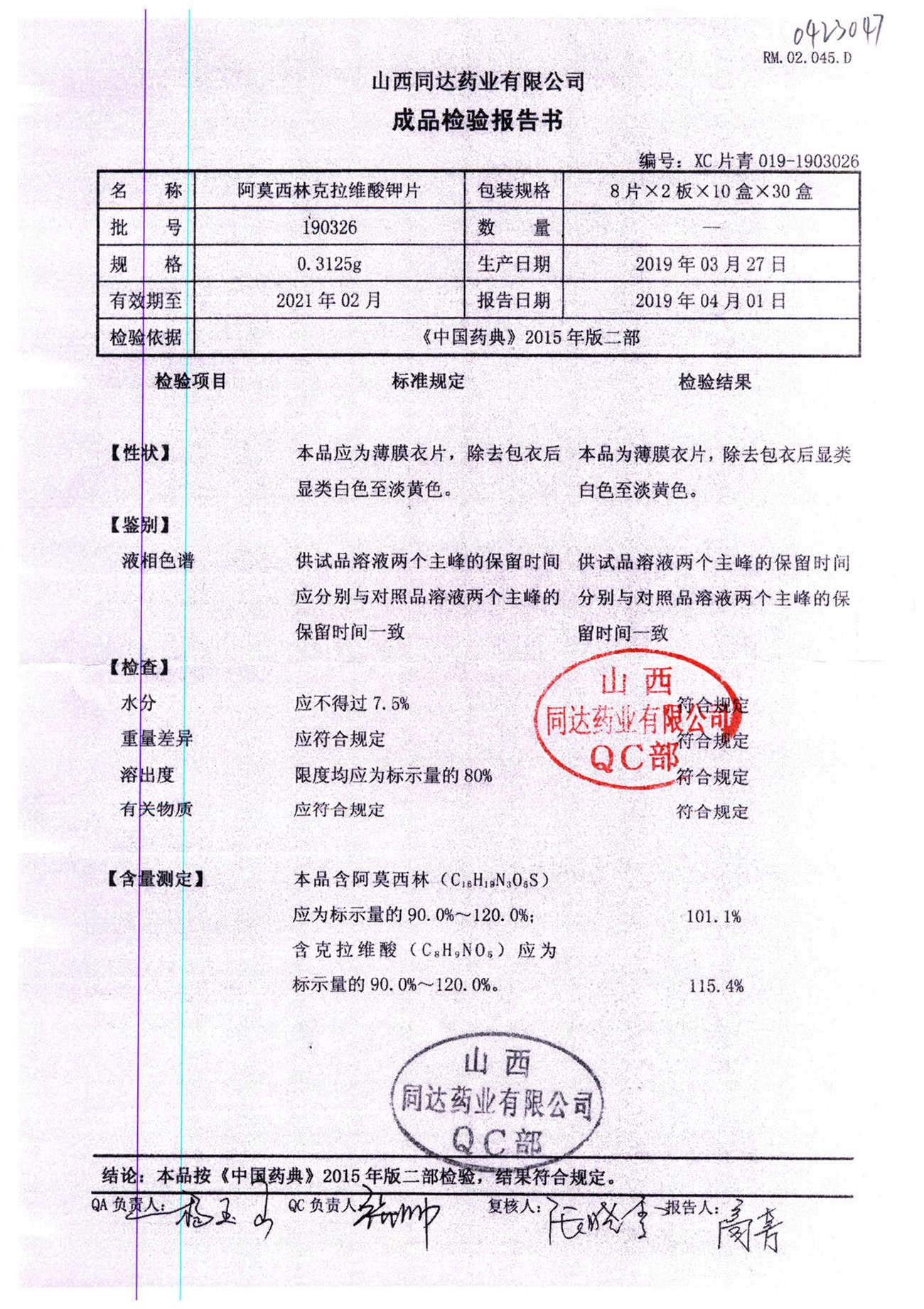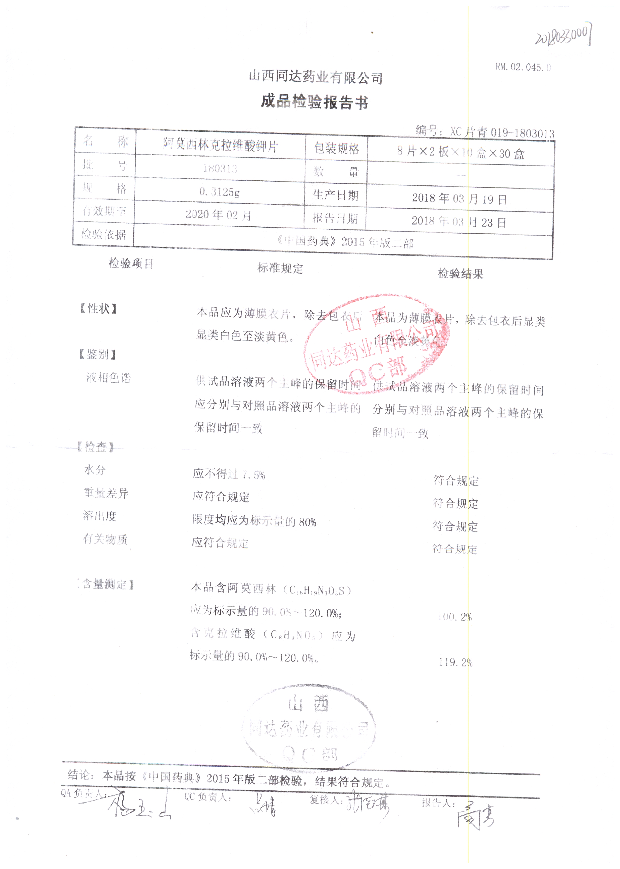 阿莫西林克拉維酸鉀片 | 0.3125g*16s | 190619 | 查看詳情 |