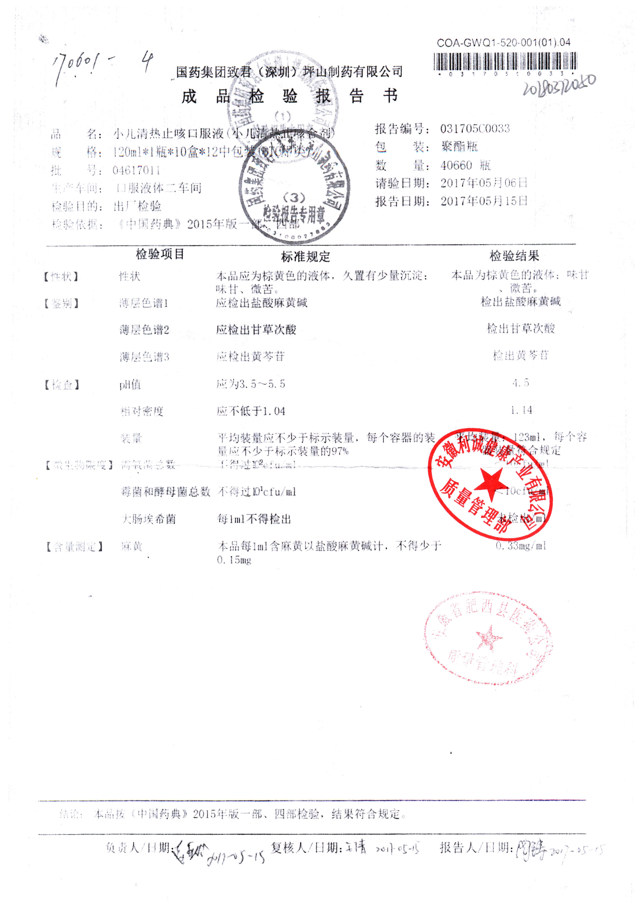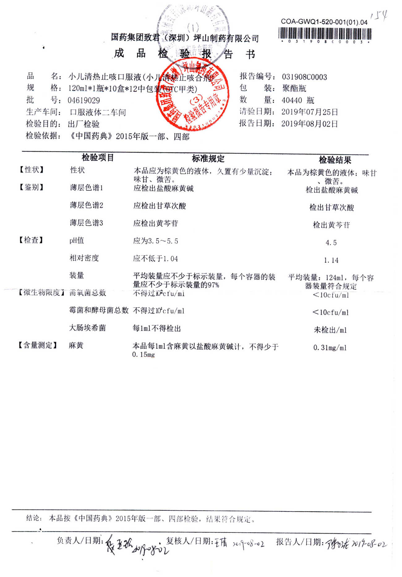 小兒清熱止咳口服液 | 120ml | 04618033 | 查看詳情 |