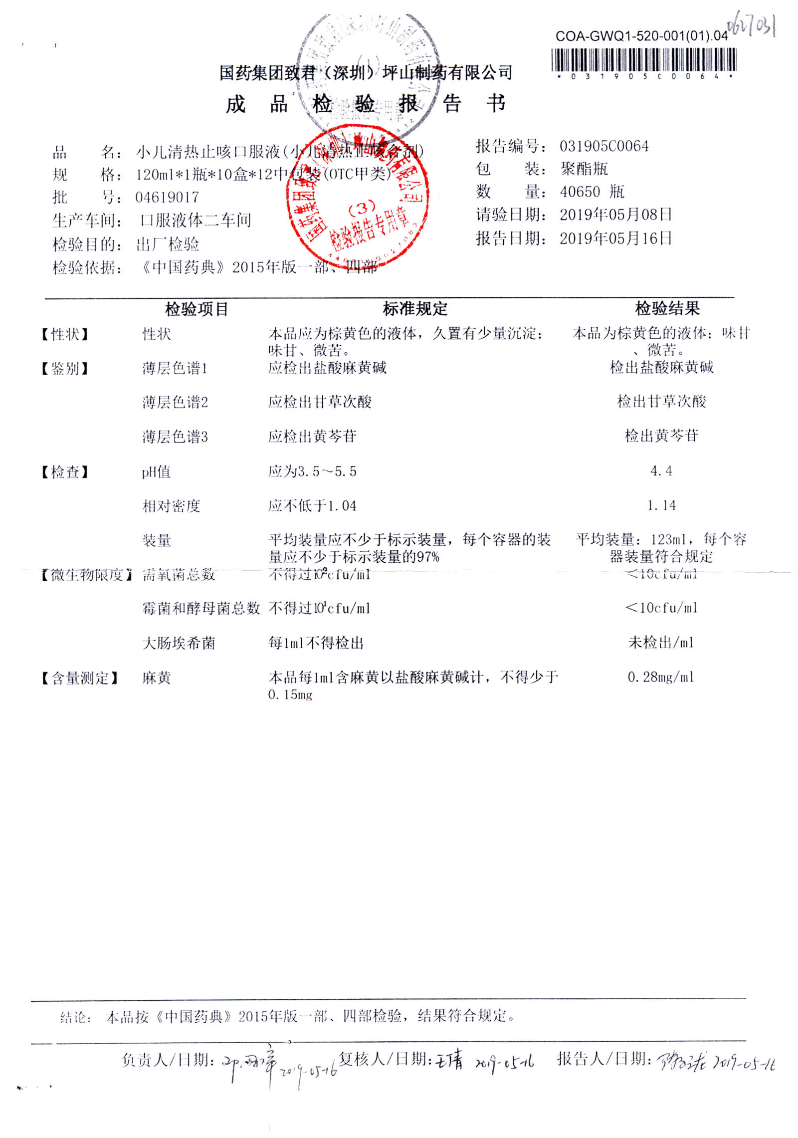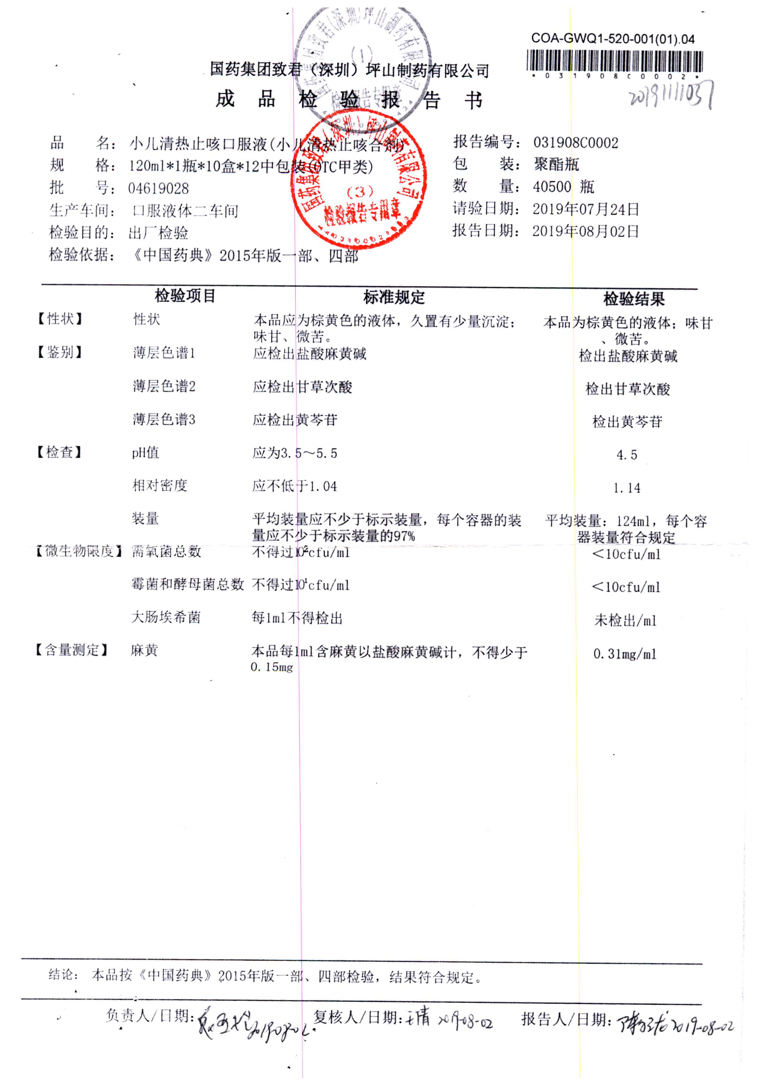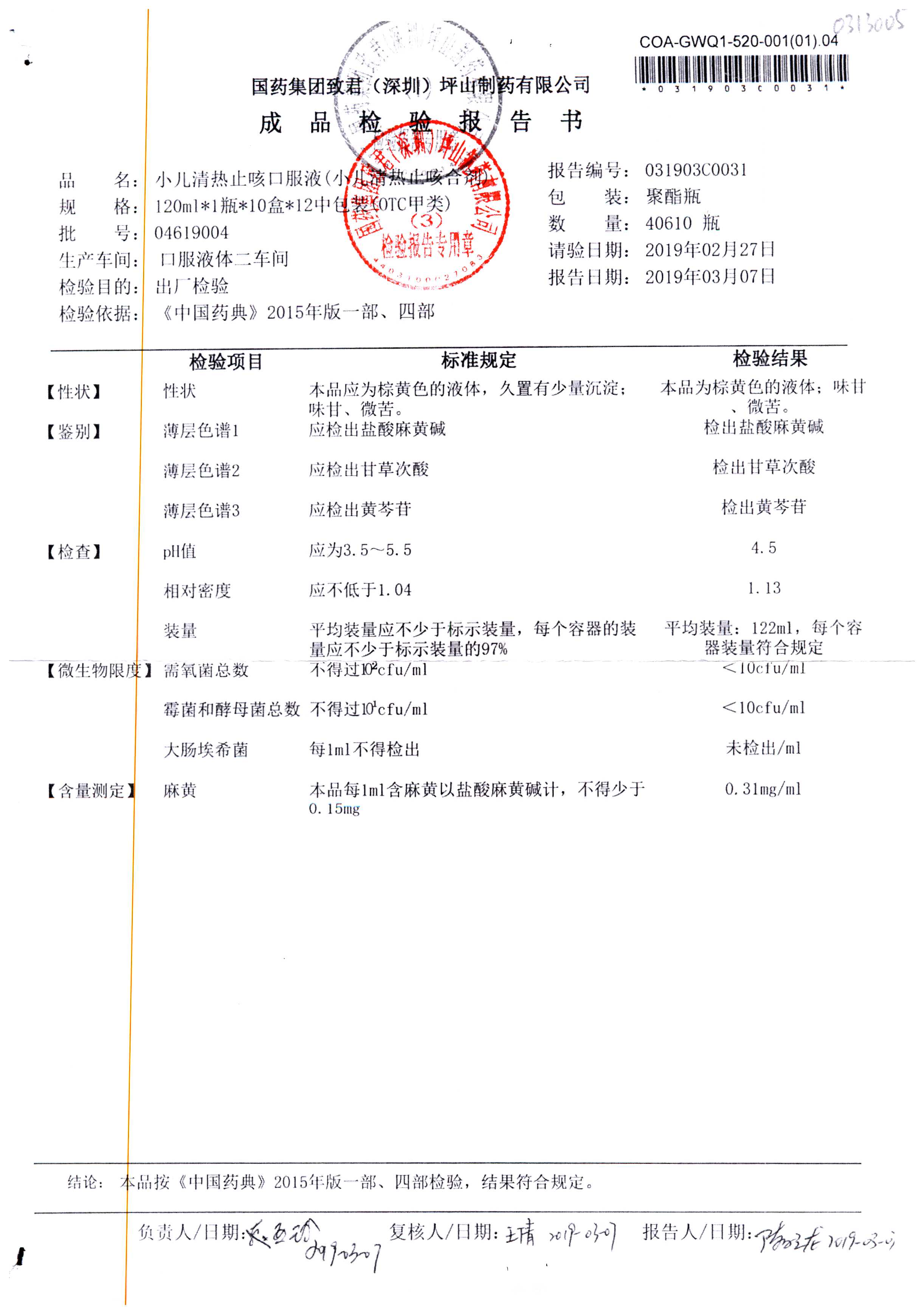 小兒清熱止咳口服液 | 120ml | 04619004 | 查看詳情 |