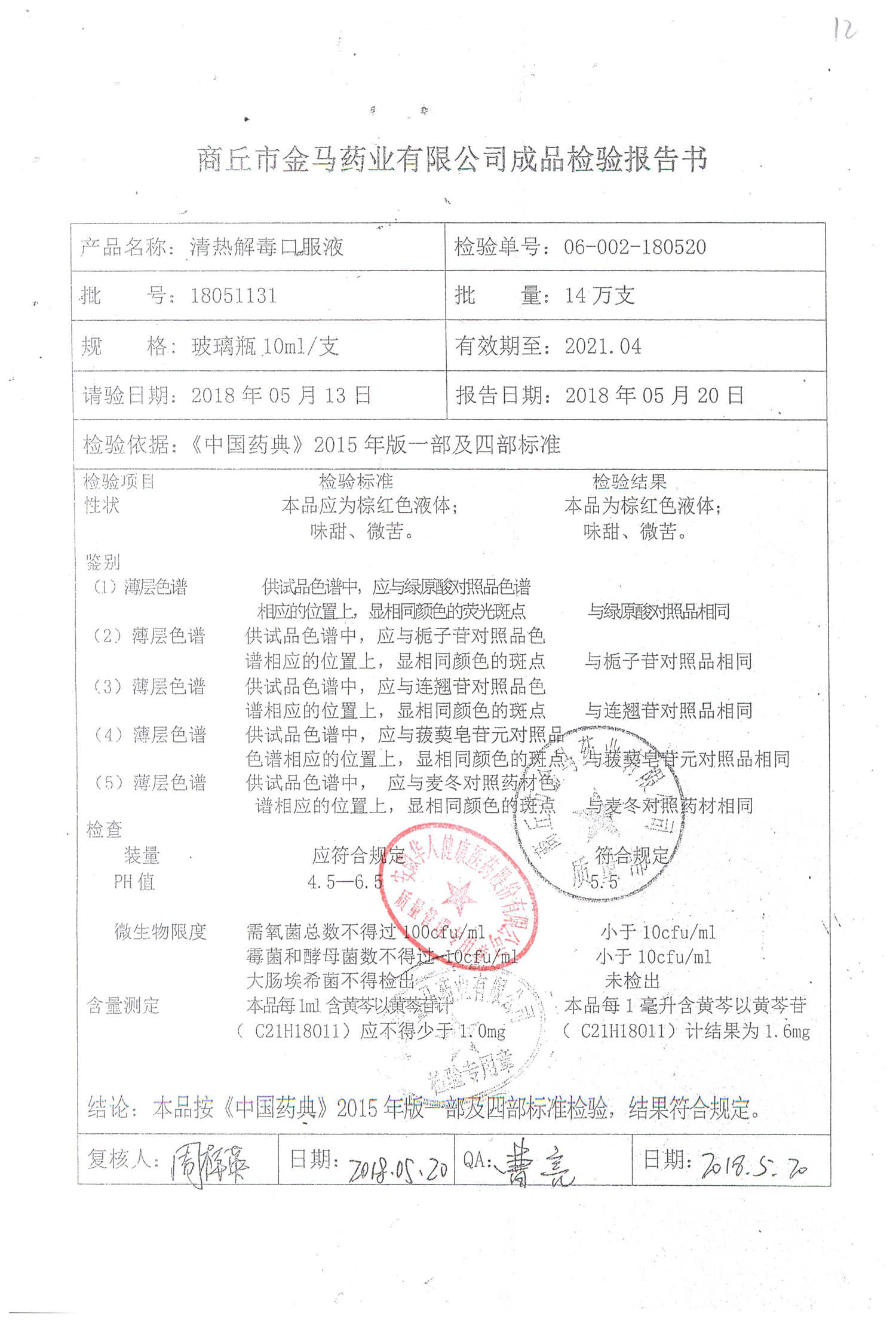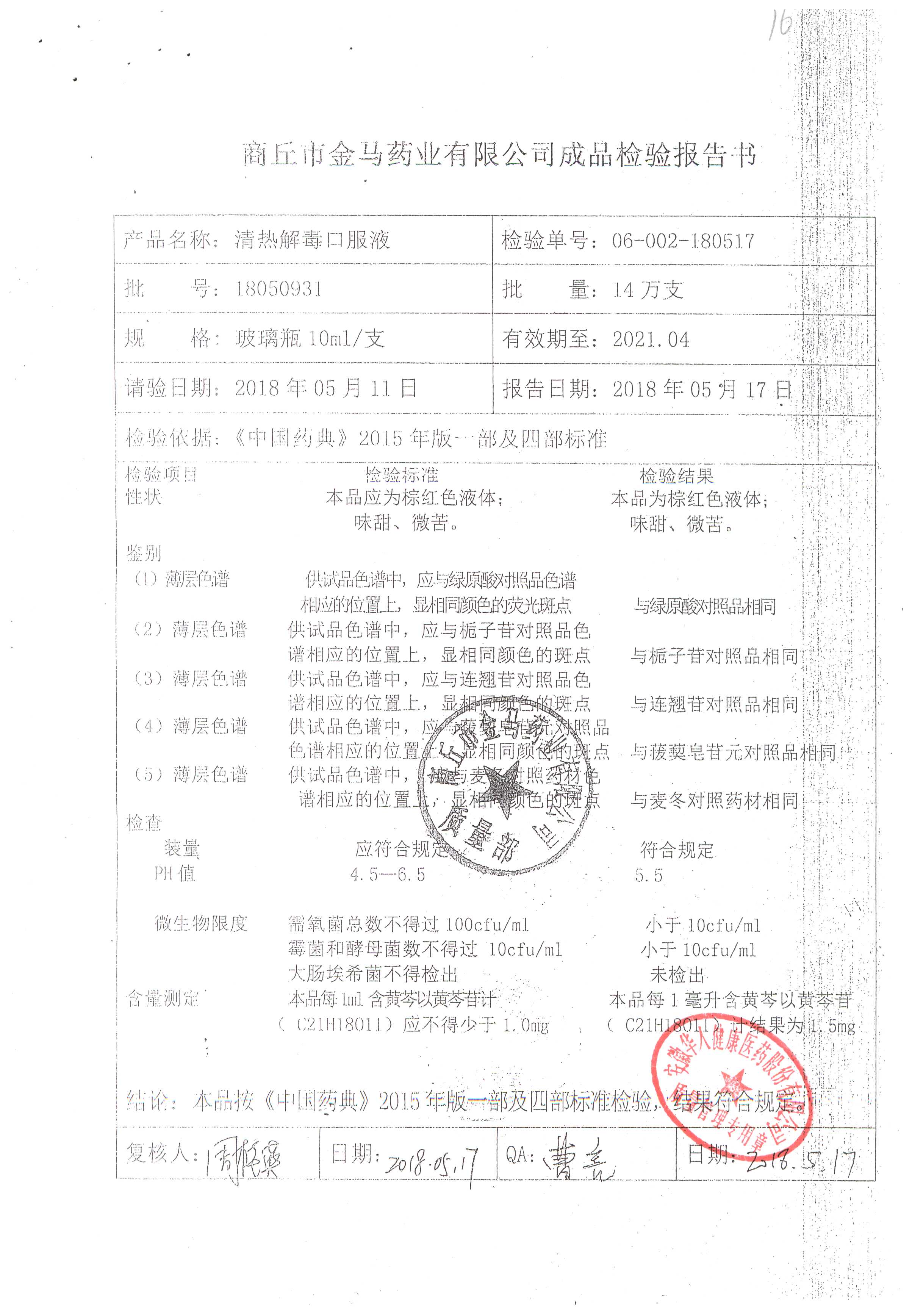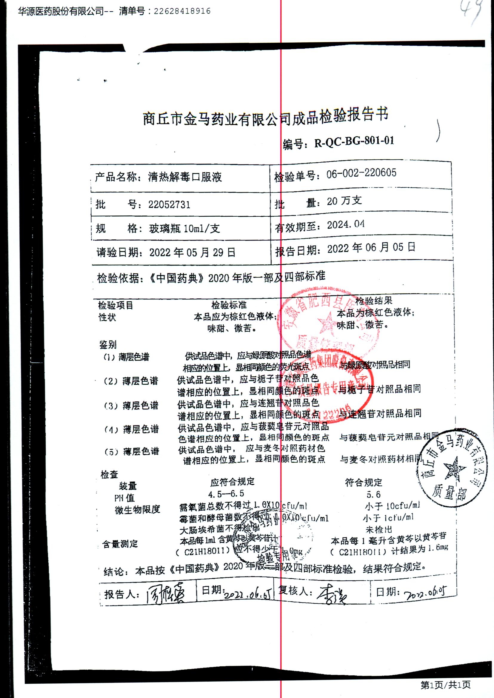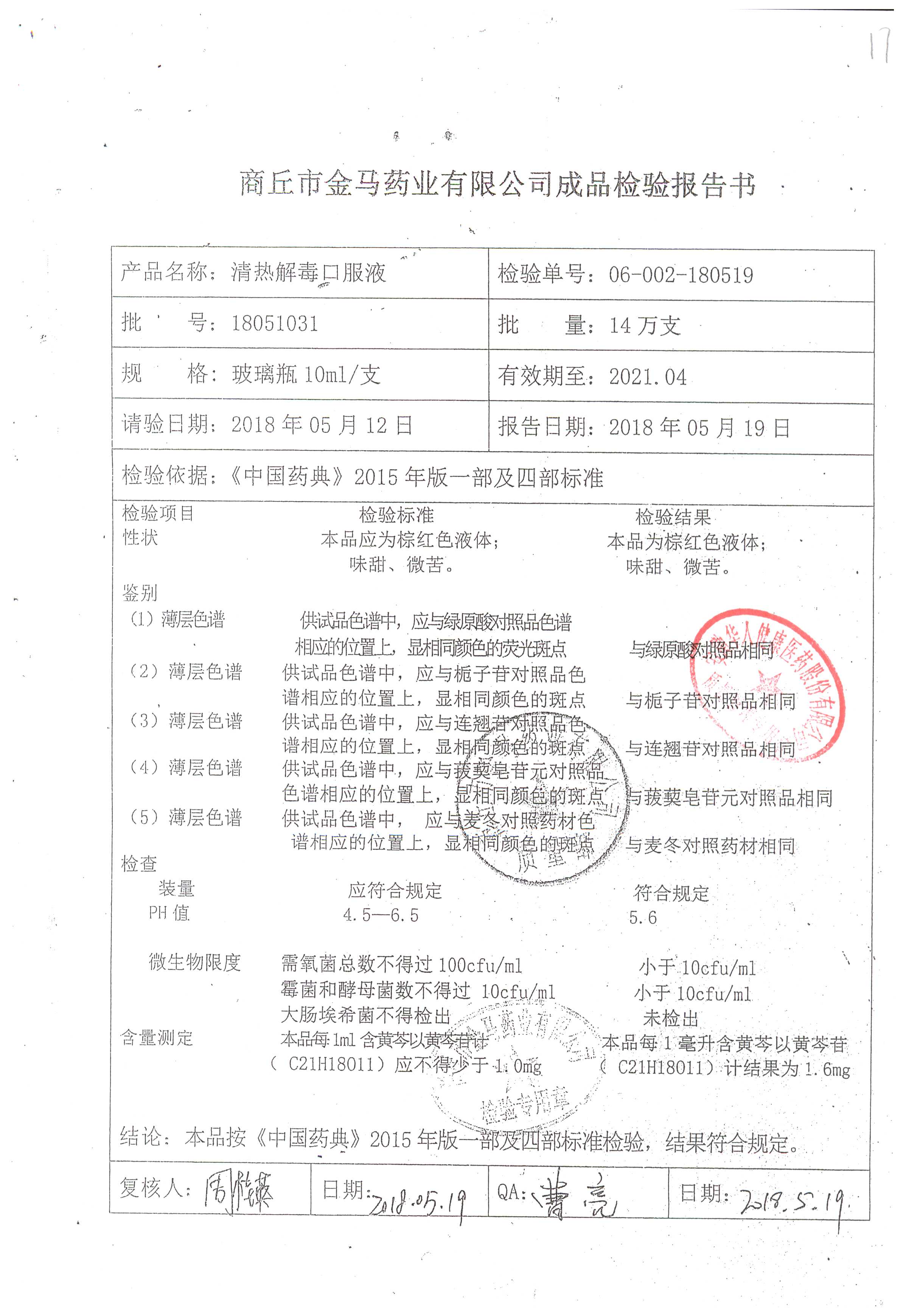 清熱解毒口服液 | 10ml | 18051031 | 查看詳情 |