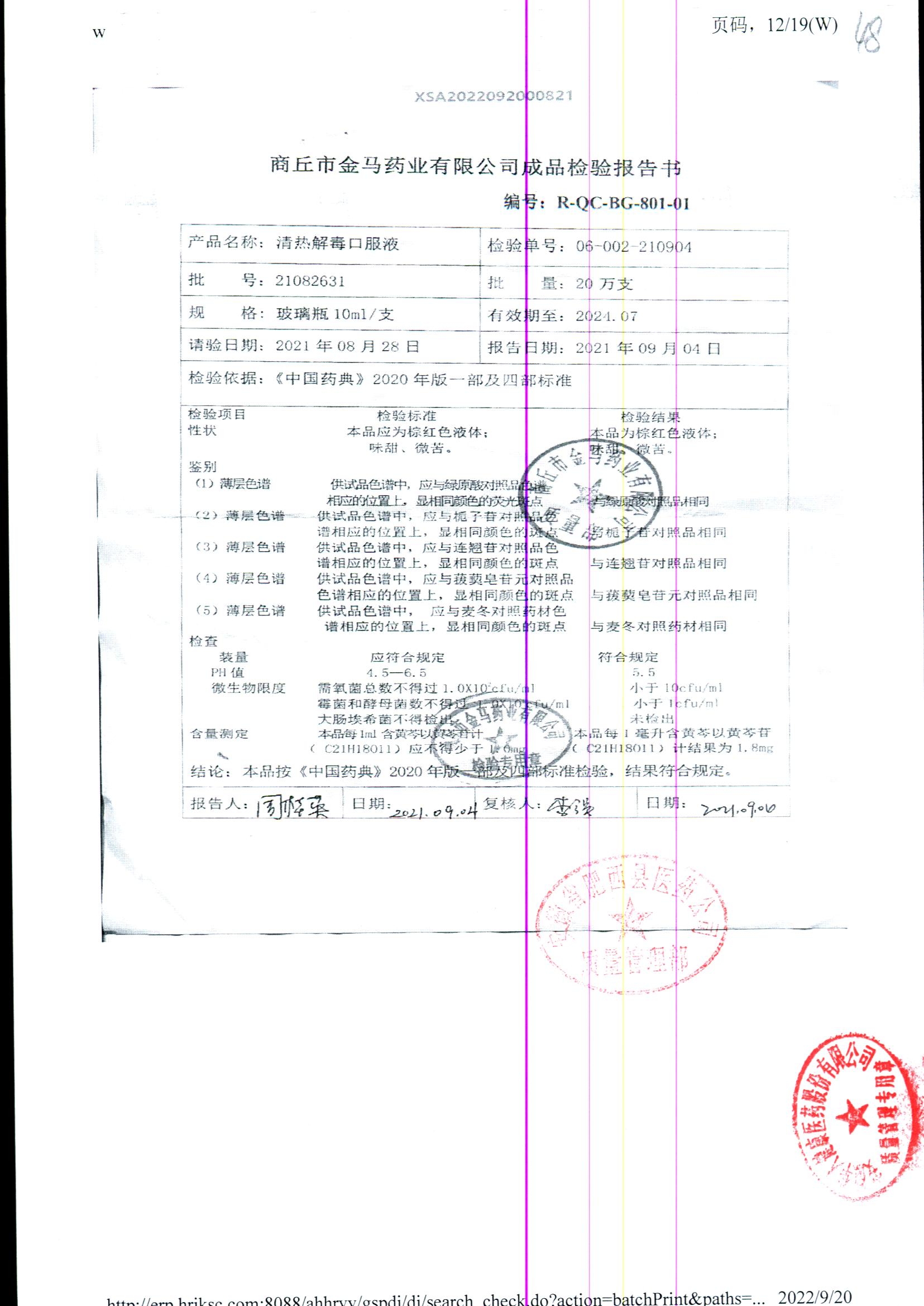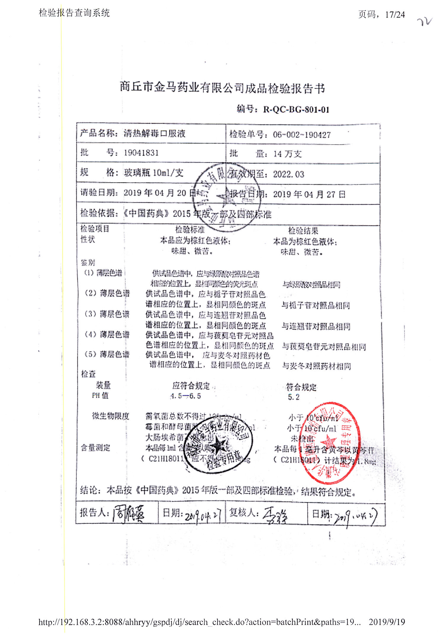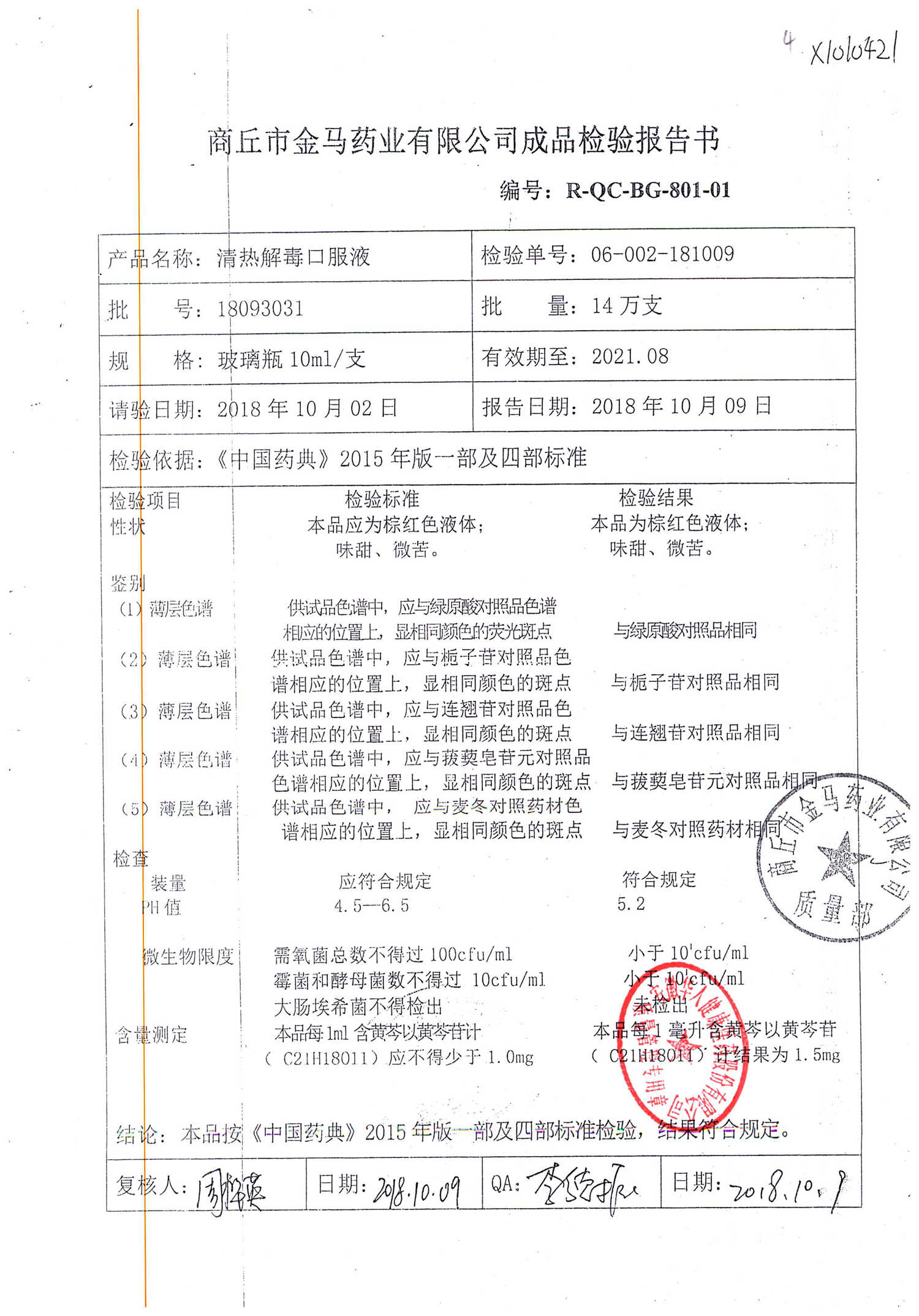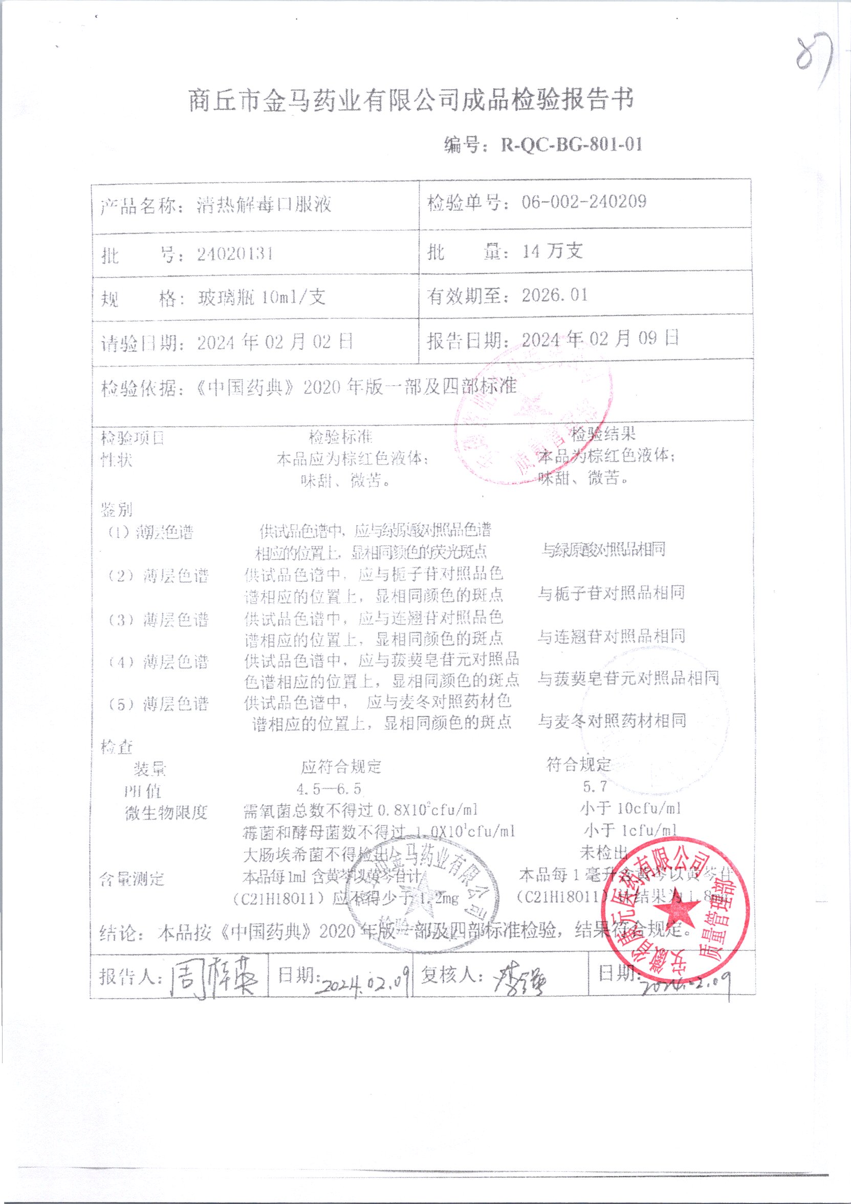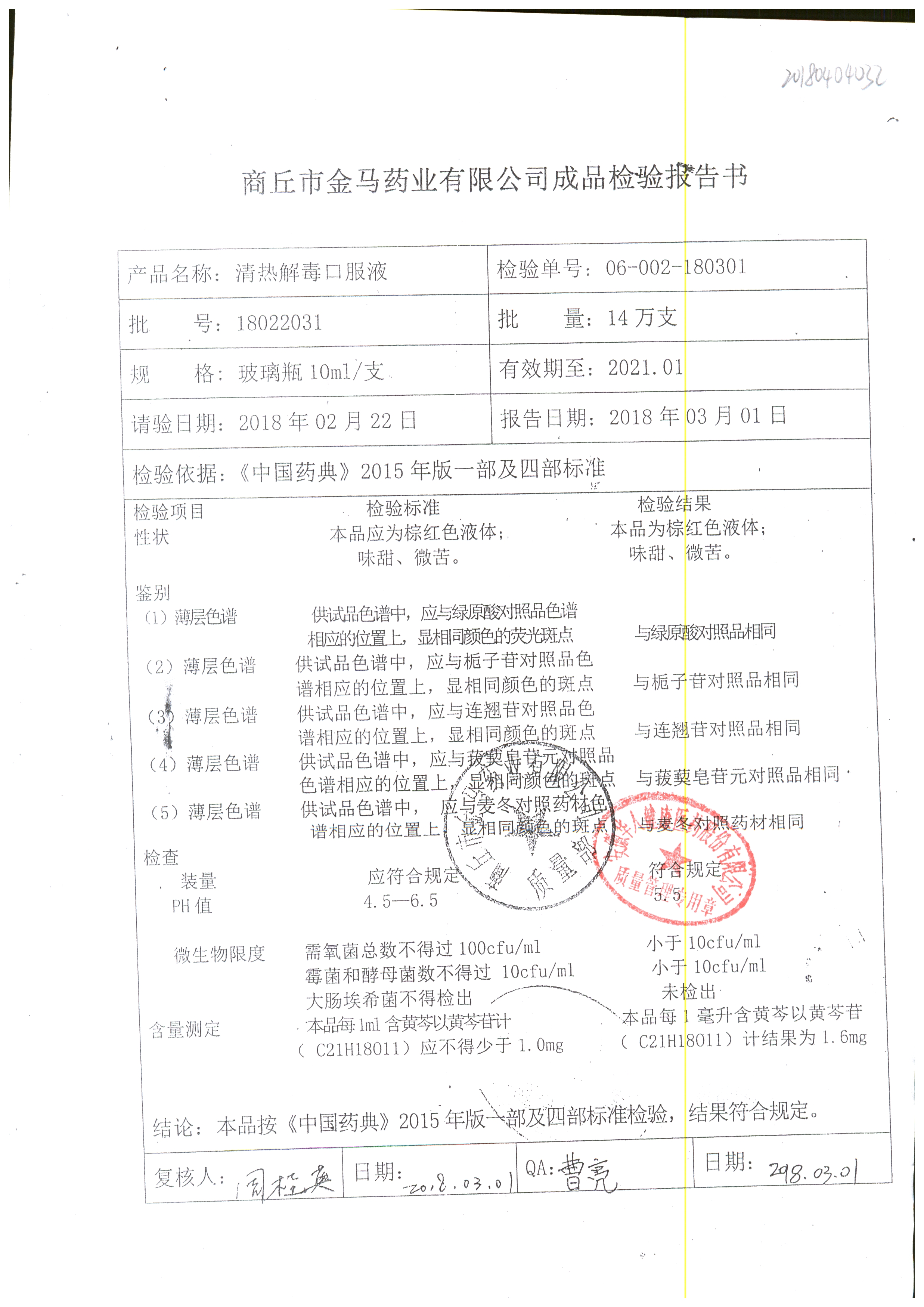 名稱(chēng) | 規(guī)格 | 批號(hào) | 藥檢報(bào)告 |