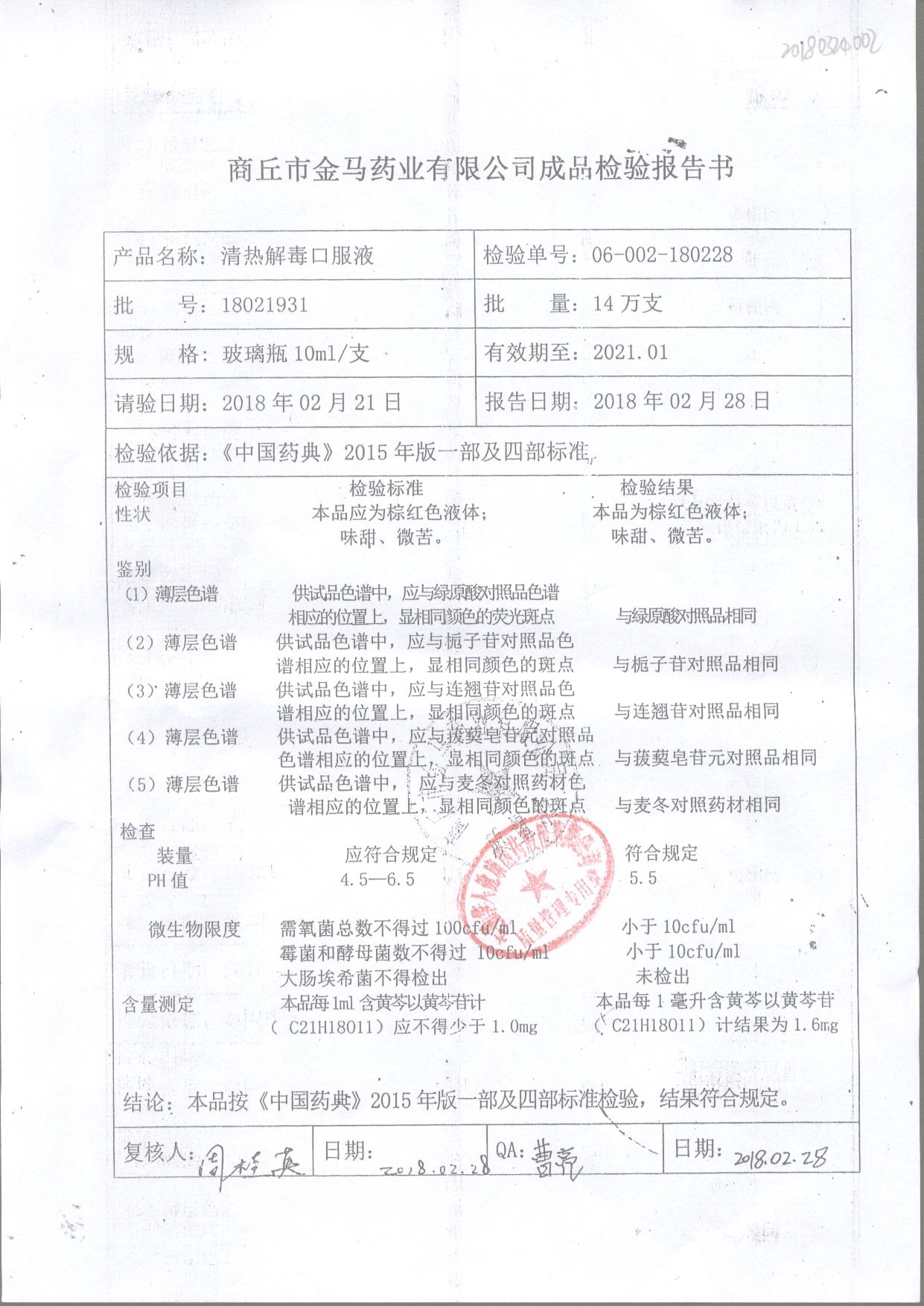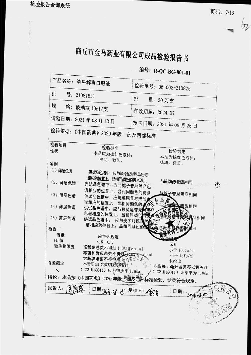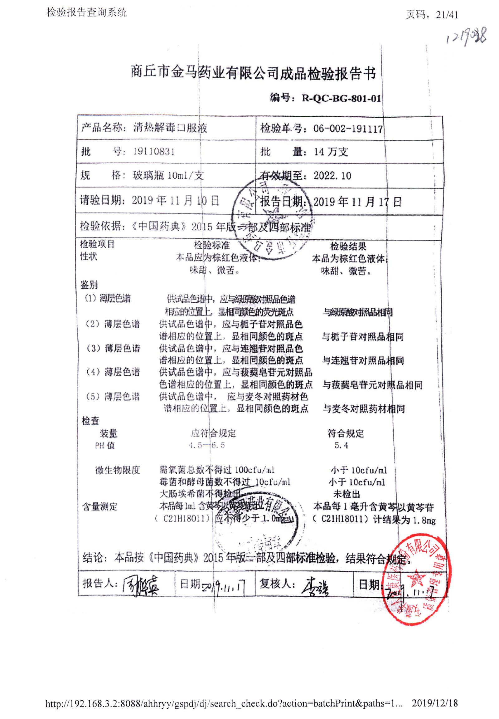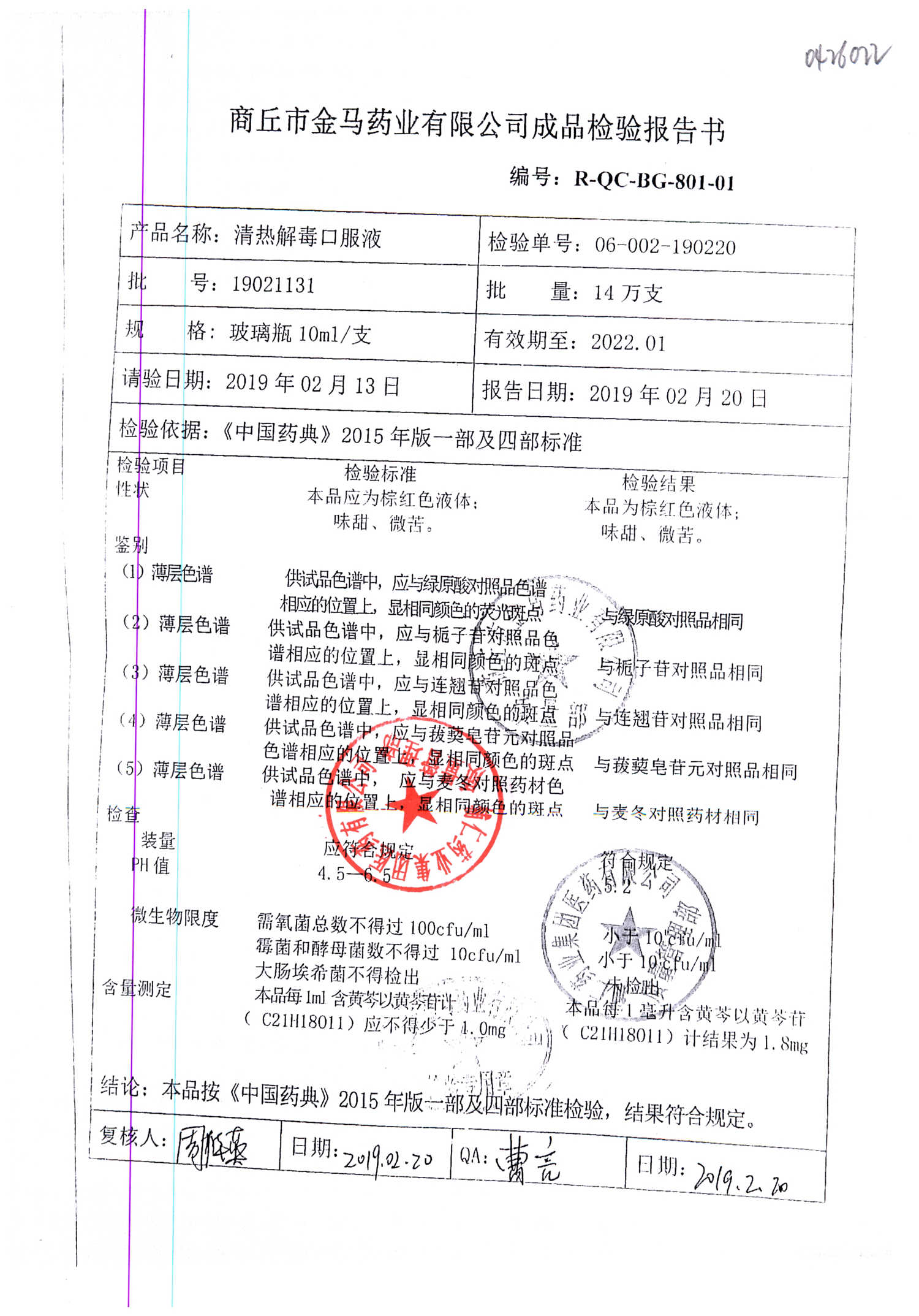 清熱解毒口服液 | 10ml | 19021231 | 查看詳情 |