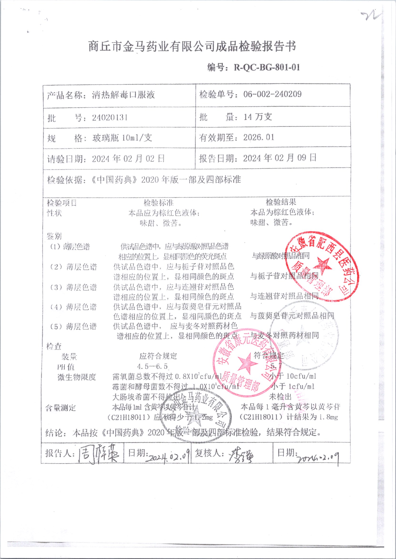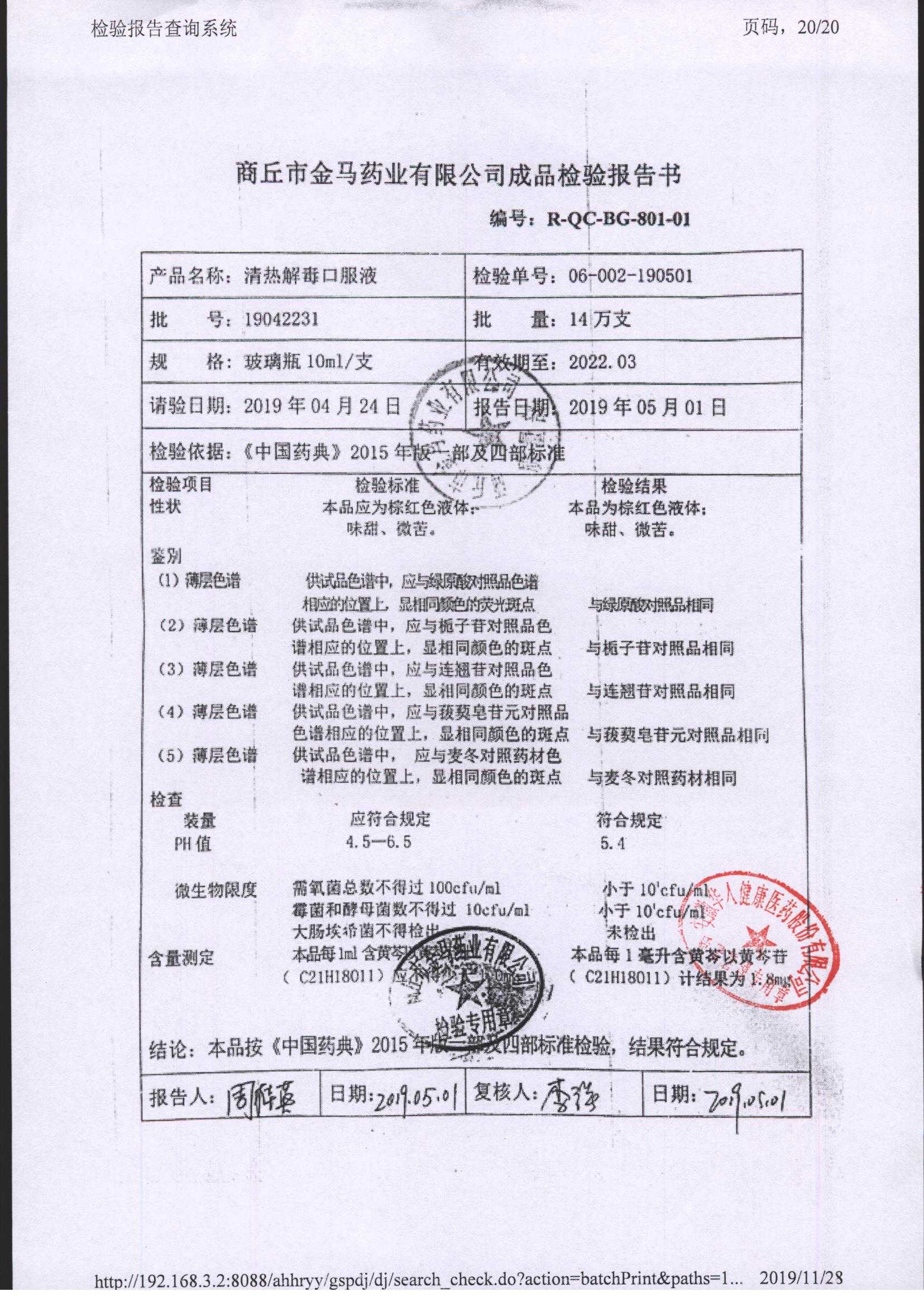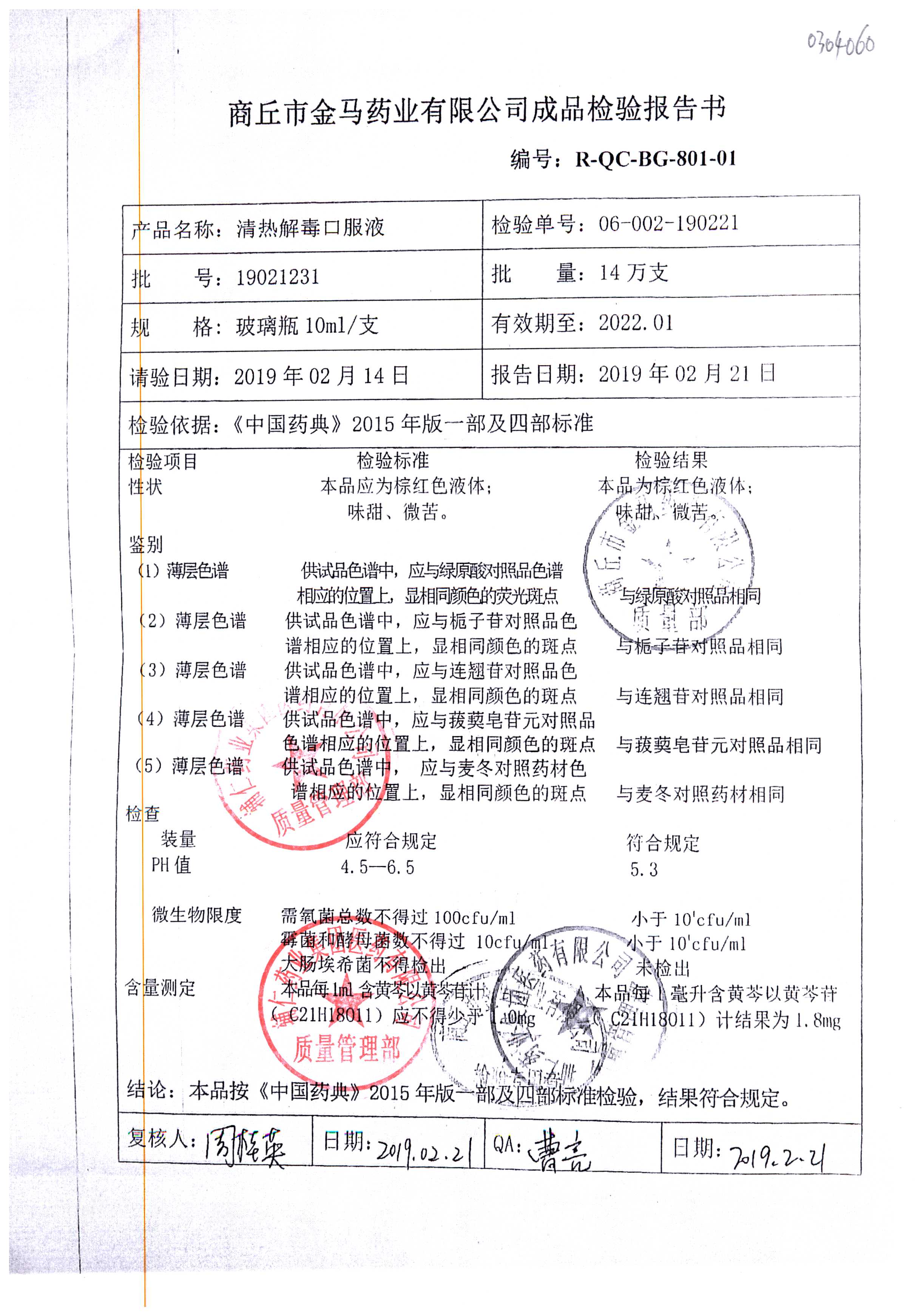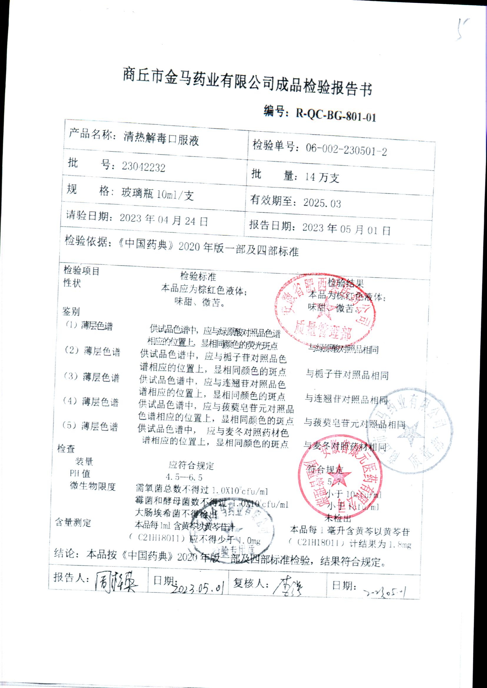 清熱解毒口服液 | 10ml | 19021231 | 查看詳情 |