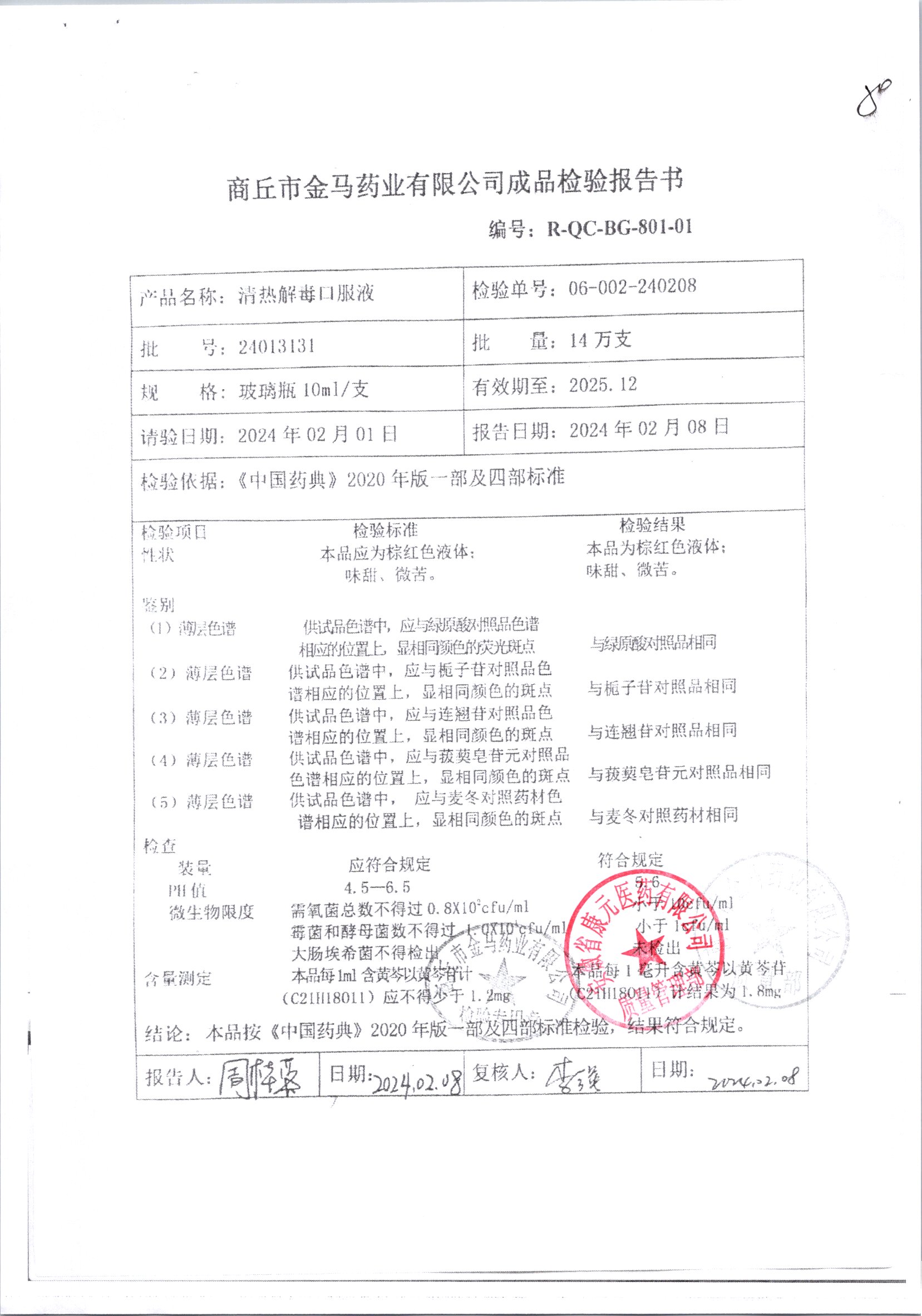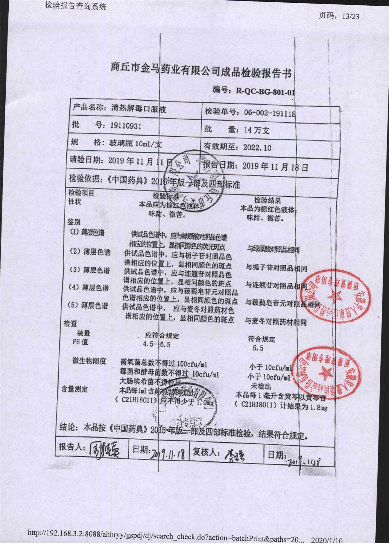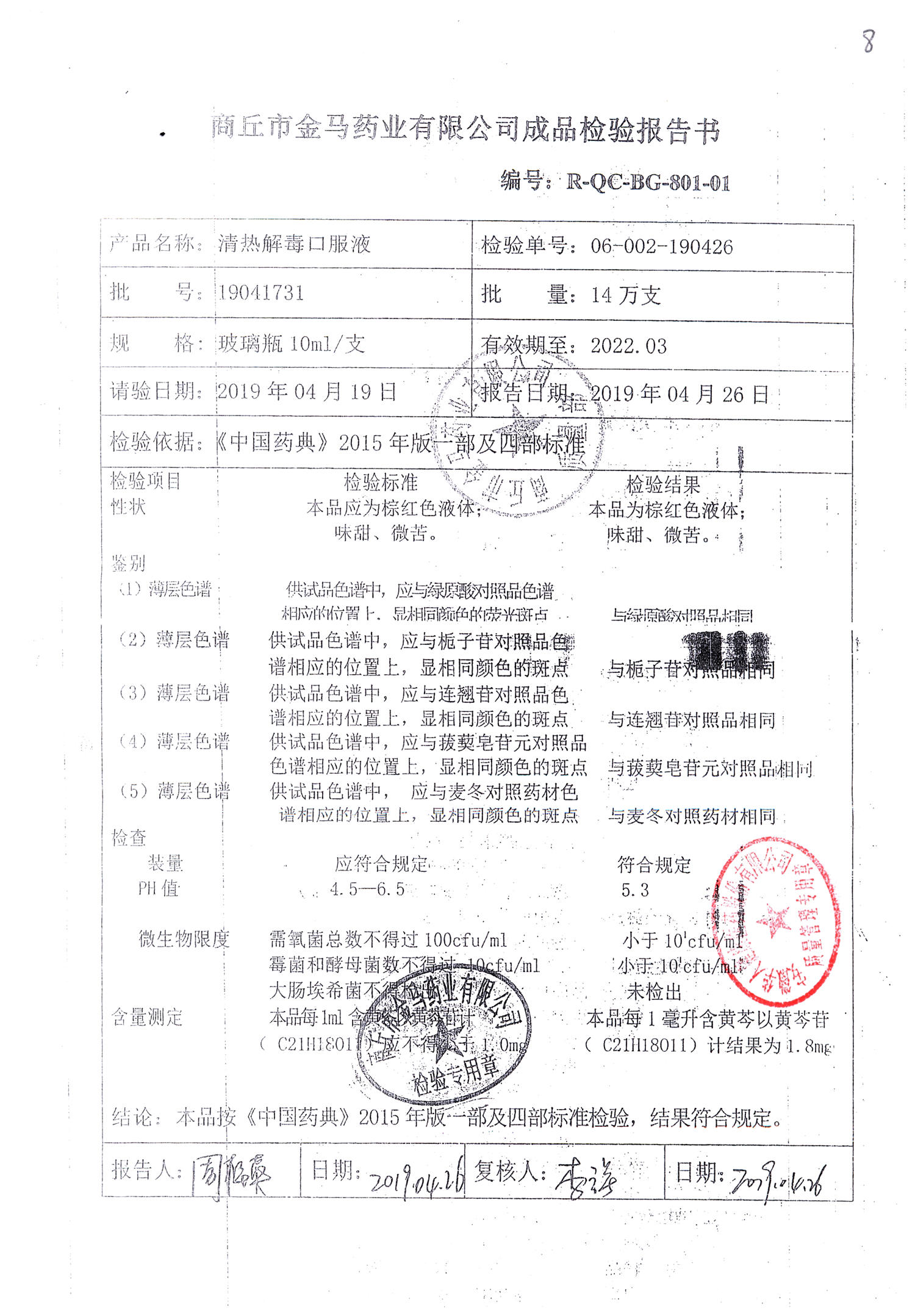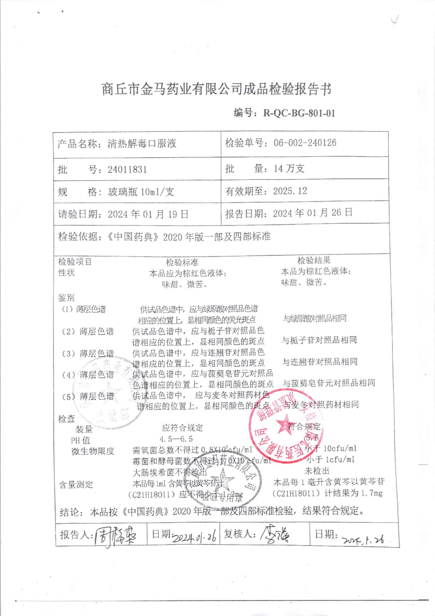 清熱解毒口服液 | 10ml | 19021231 | 查看詳情 |