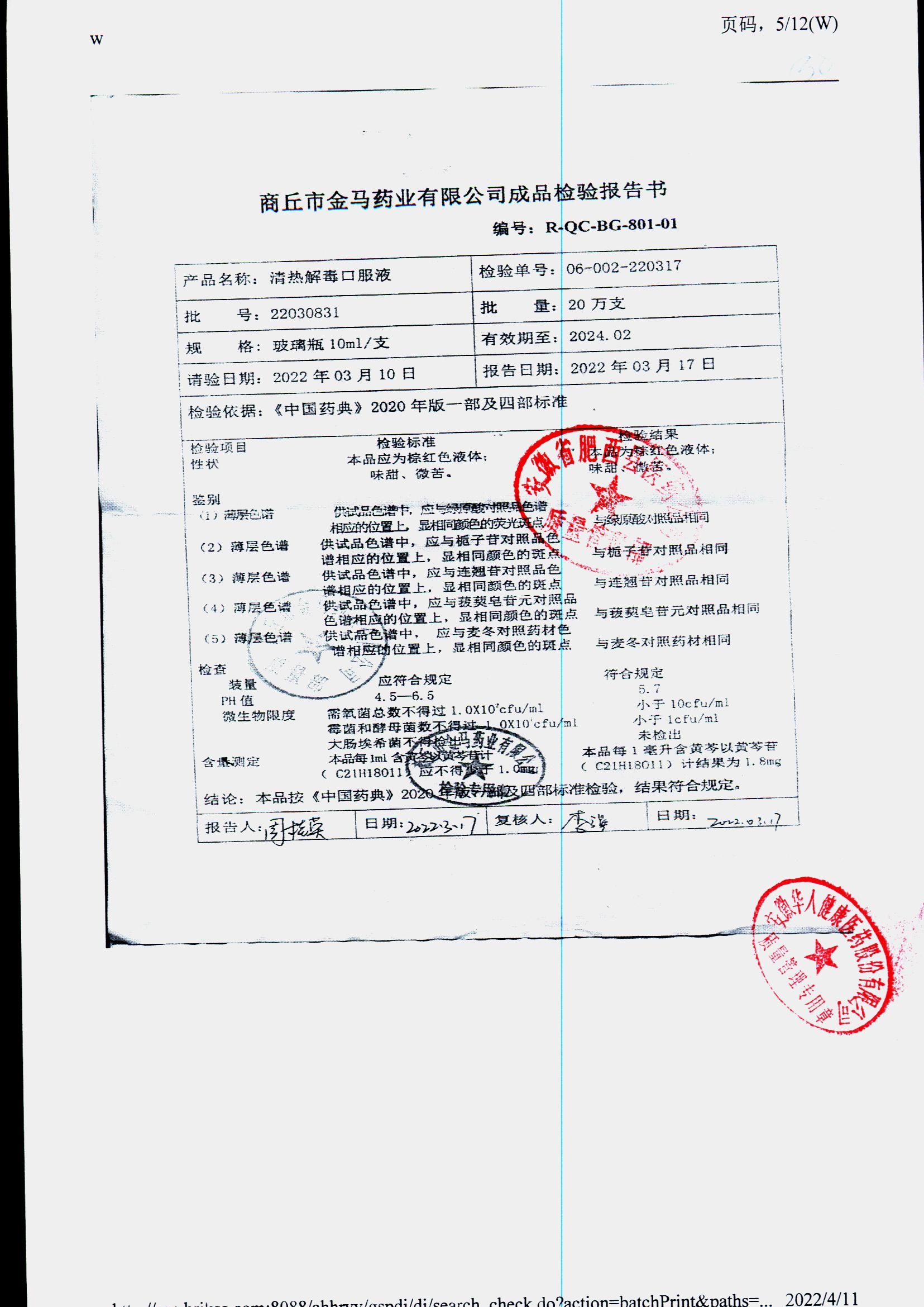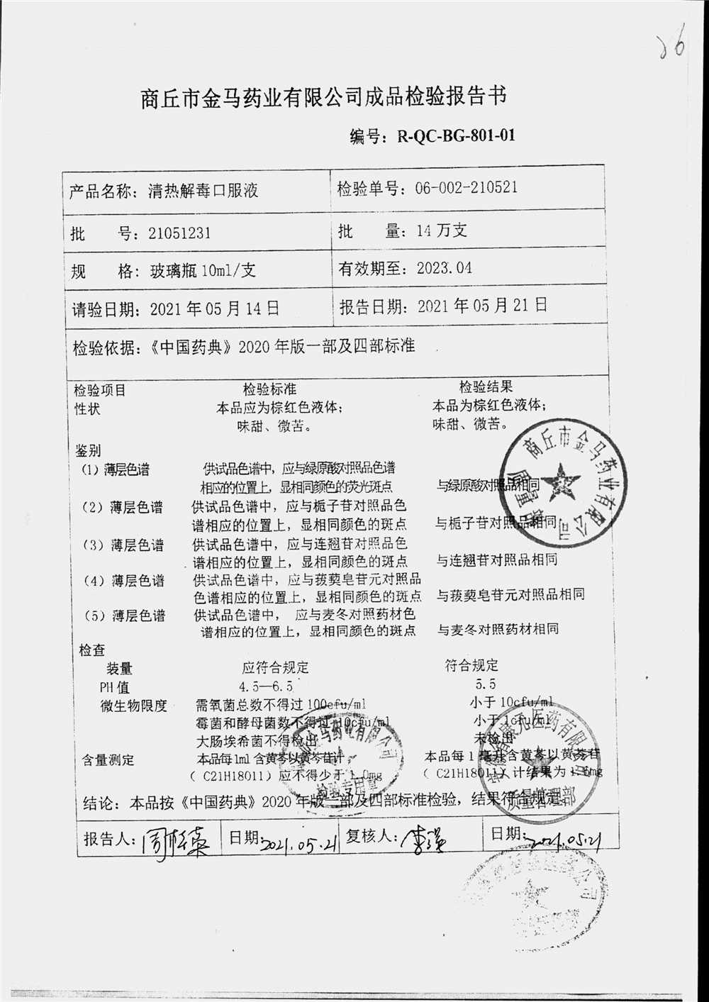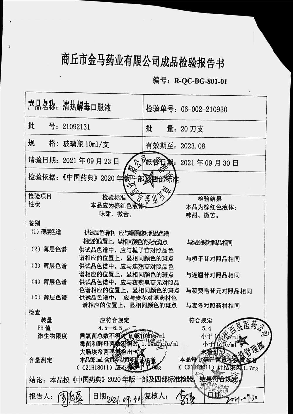 清熱解毒口服液 | 10ml | 21051231 | 查看詳情 |