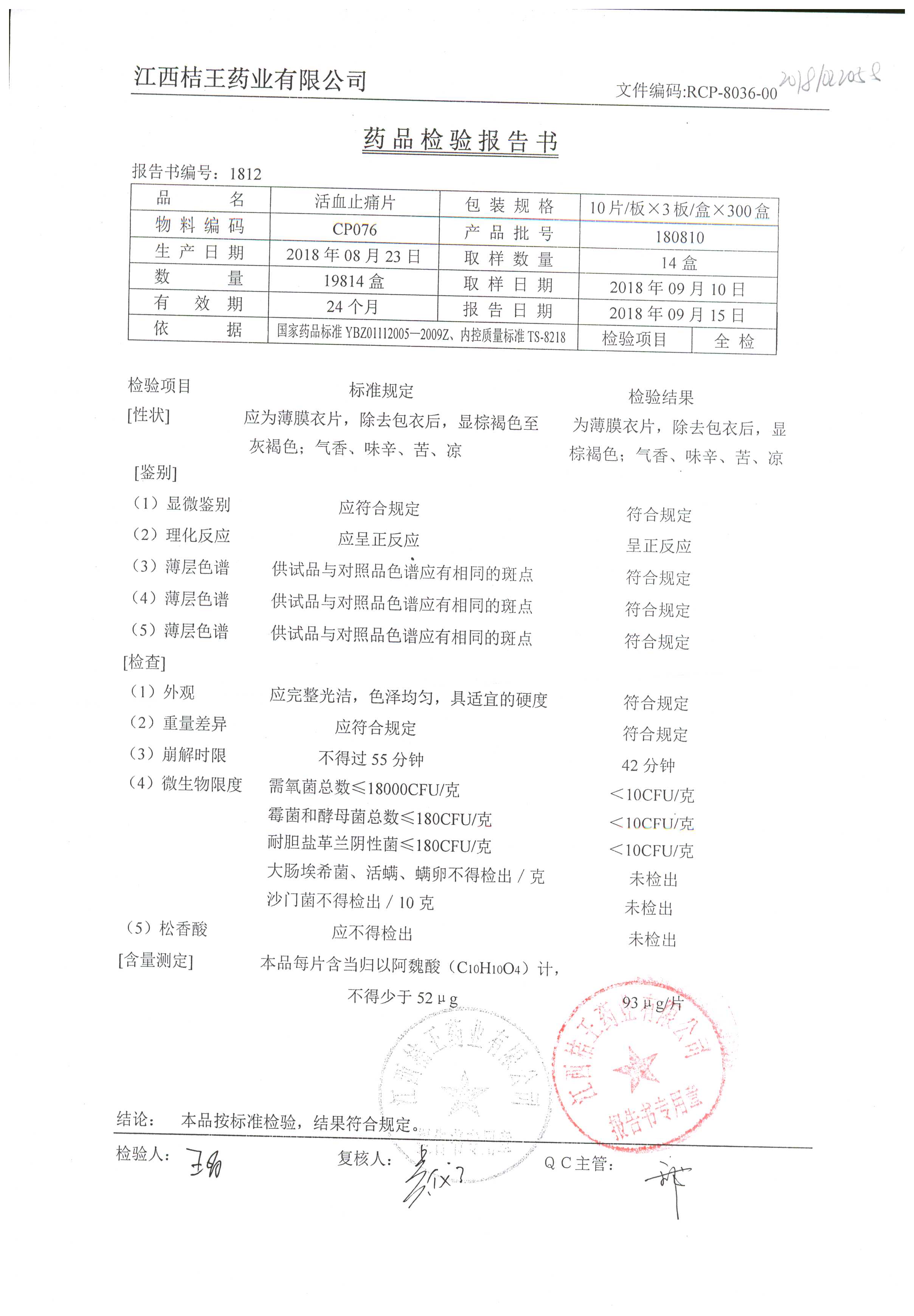活血止痛片 | 10s*3板 | 181209 | 查看詳情 |