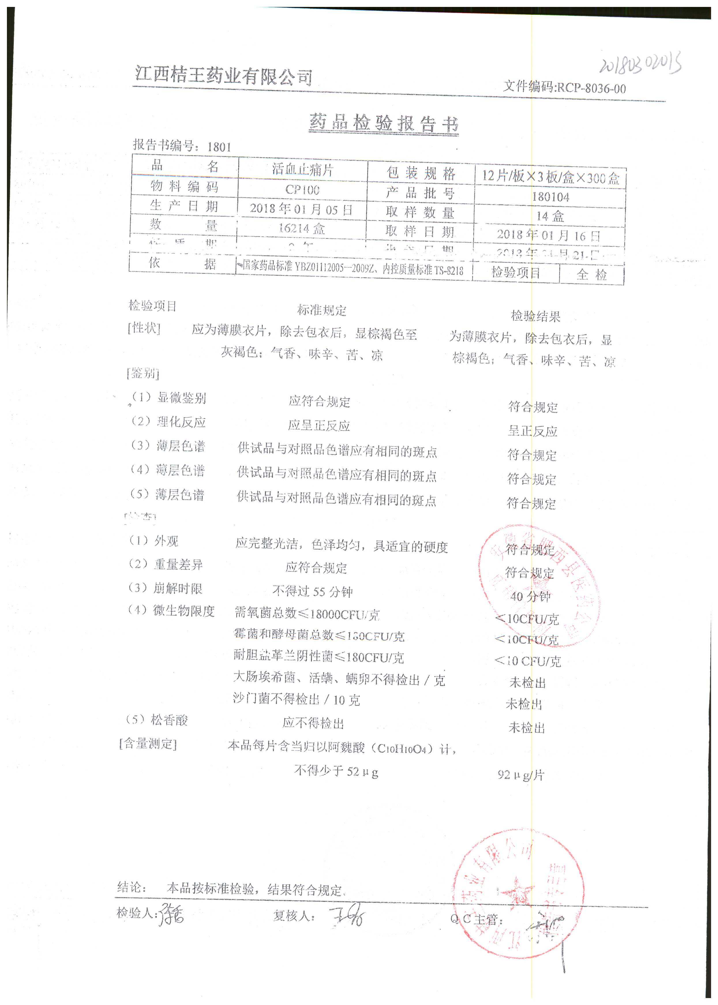 活血止痛片 | 10s*3板 | 180104 | 查看詳情 |
