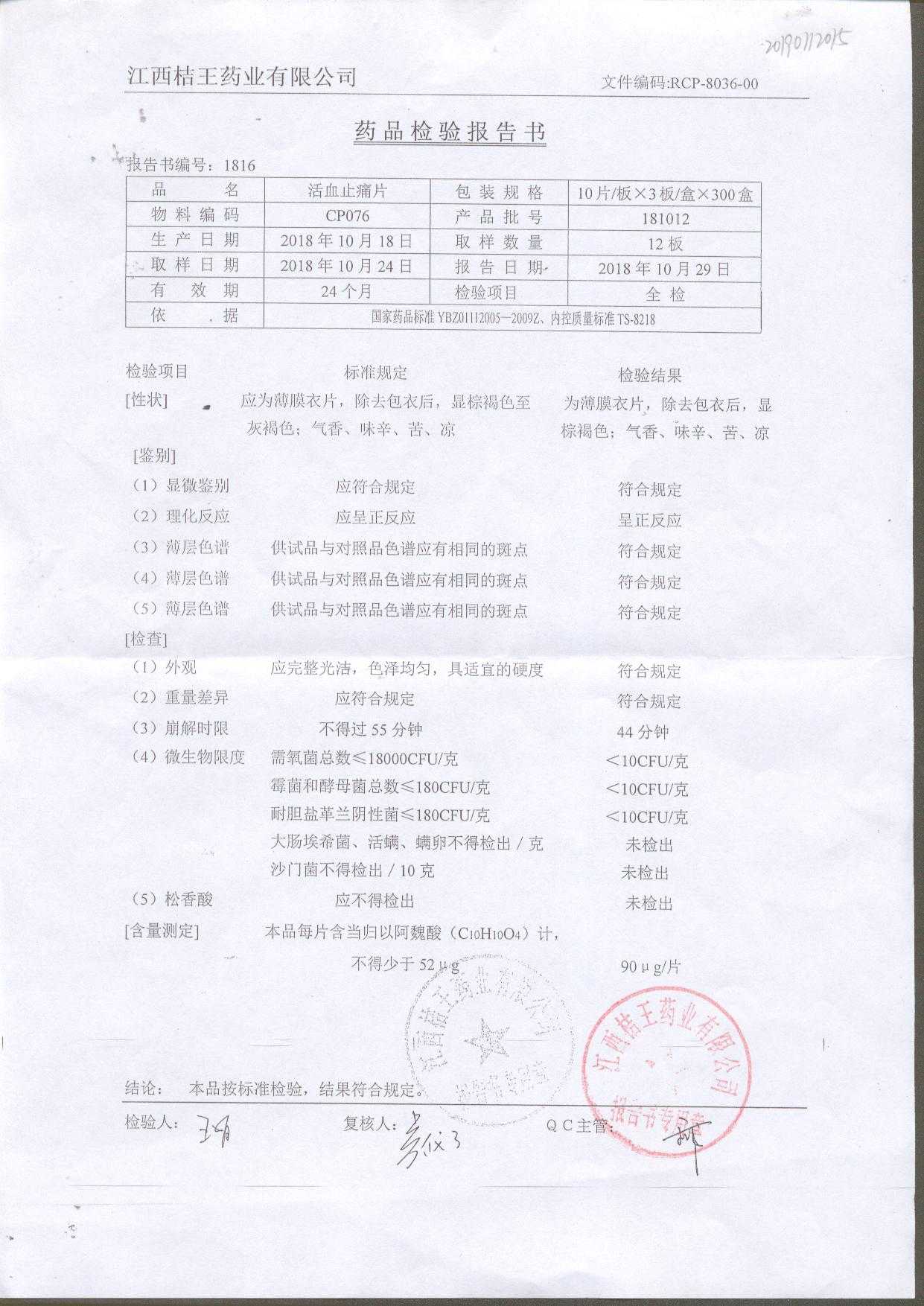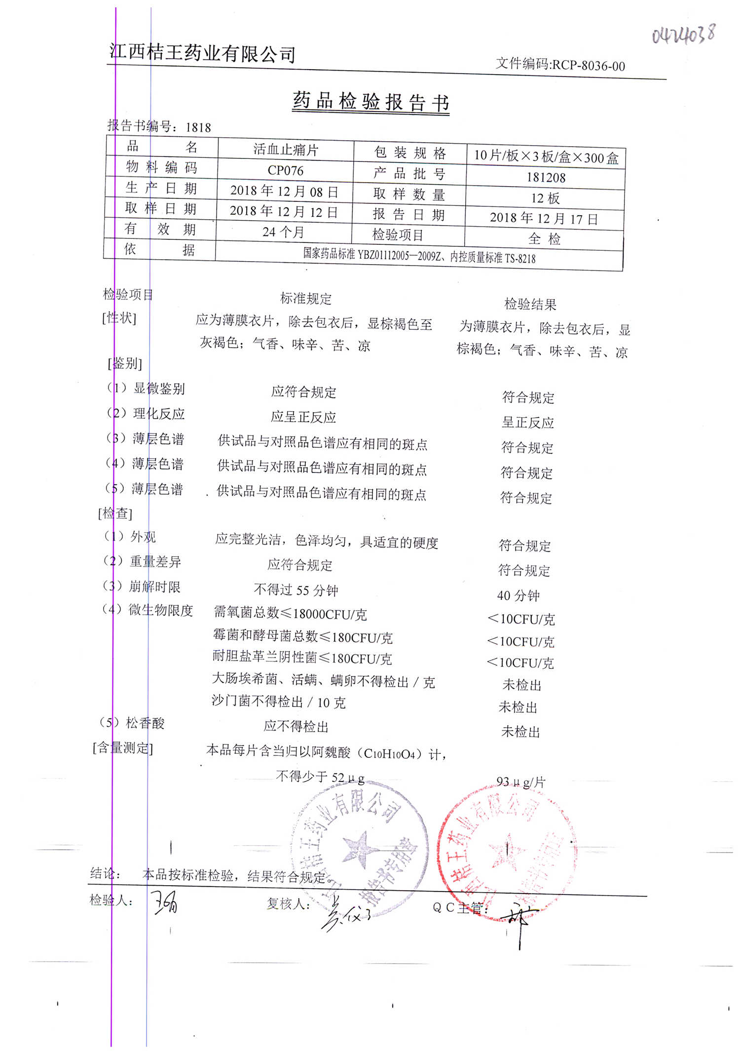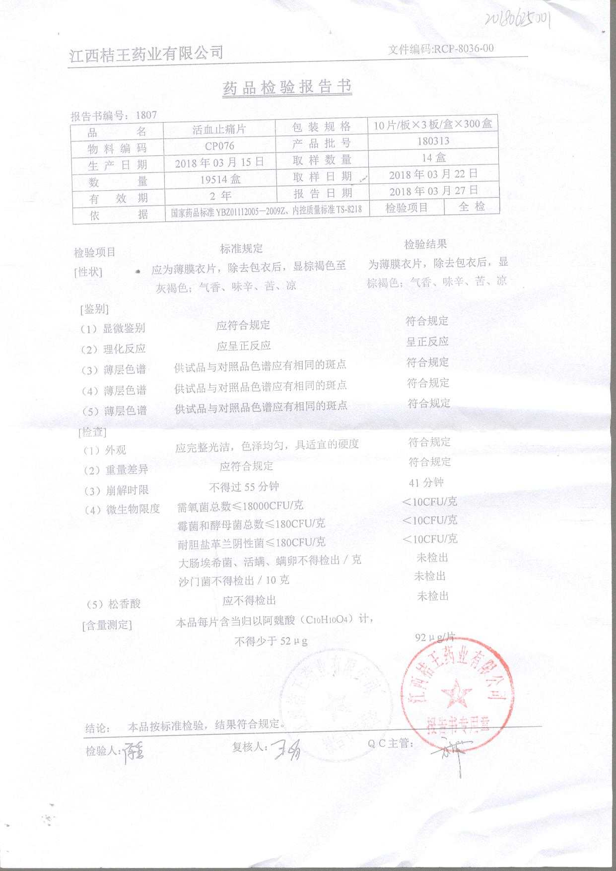 名稱 | 規(guī)格 | 批號 | 藥檢報告 |