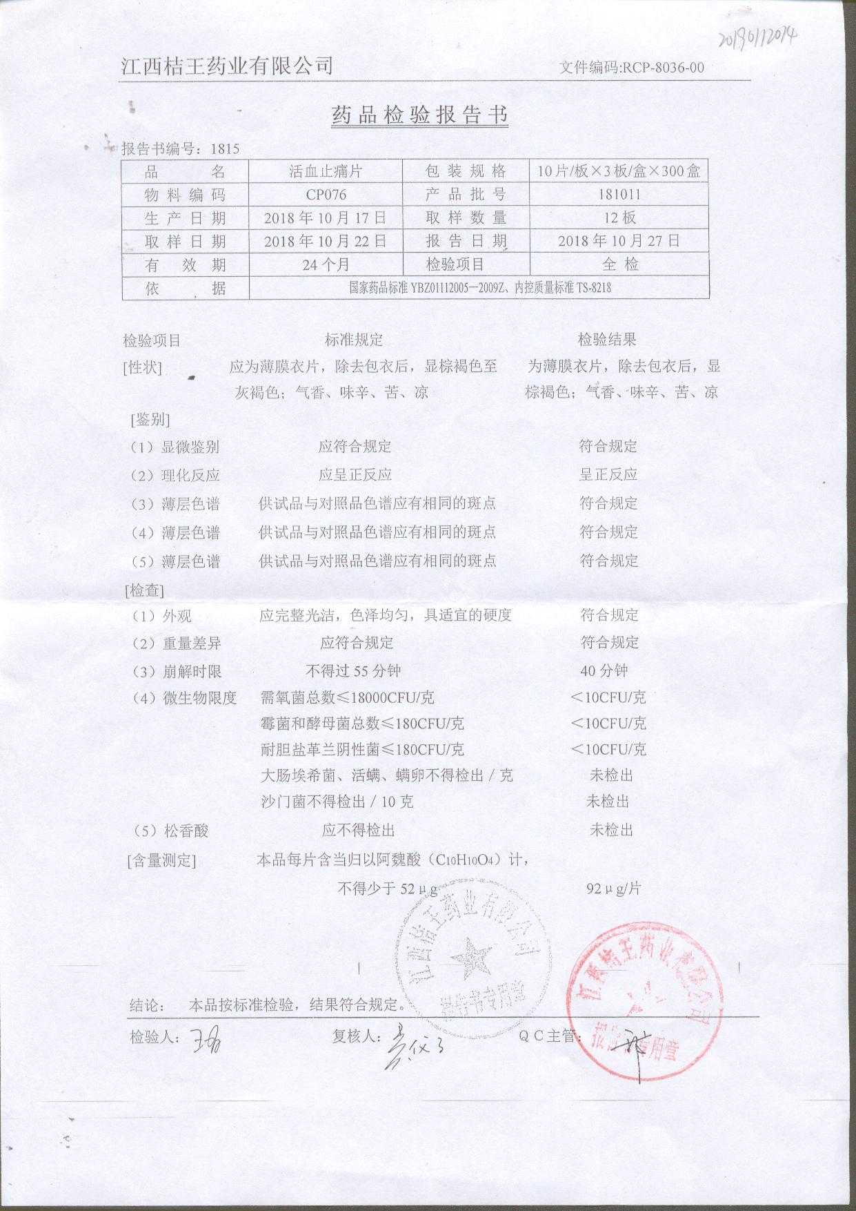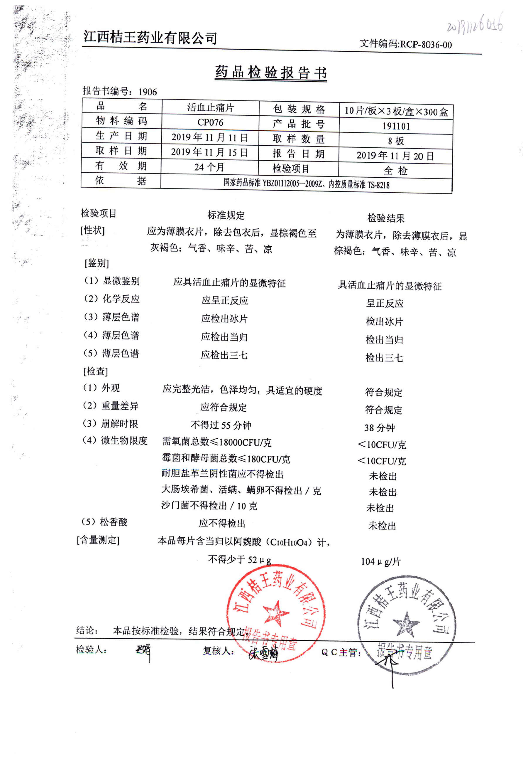 活血止痛片 | 10s*3板 | 191101 | 查看詳情 |