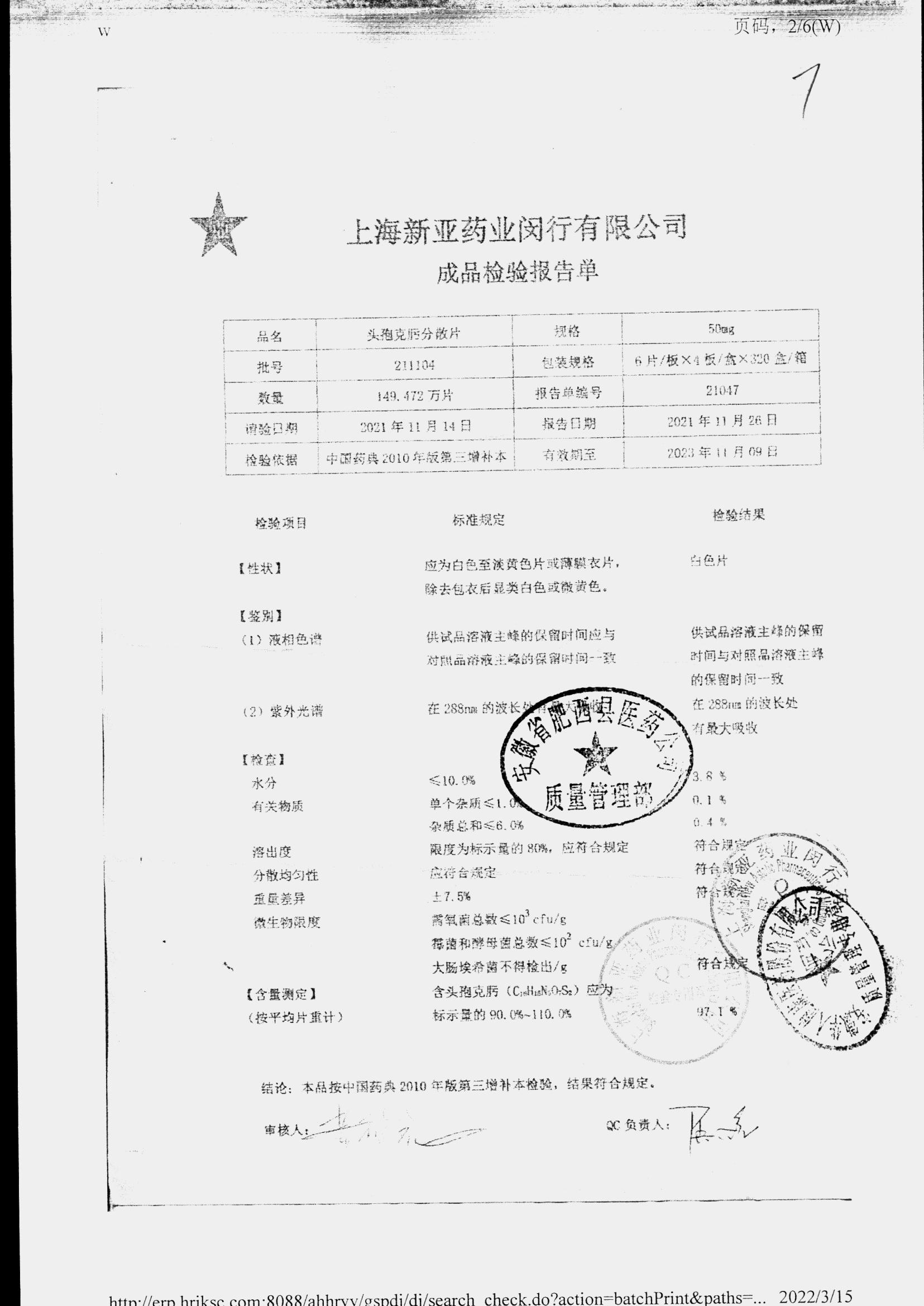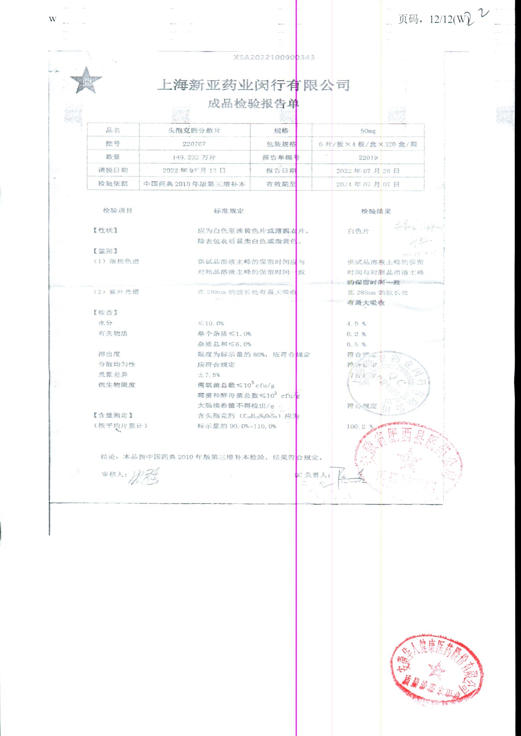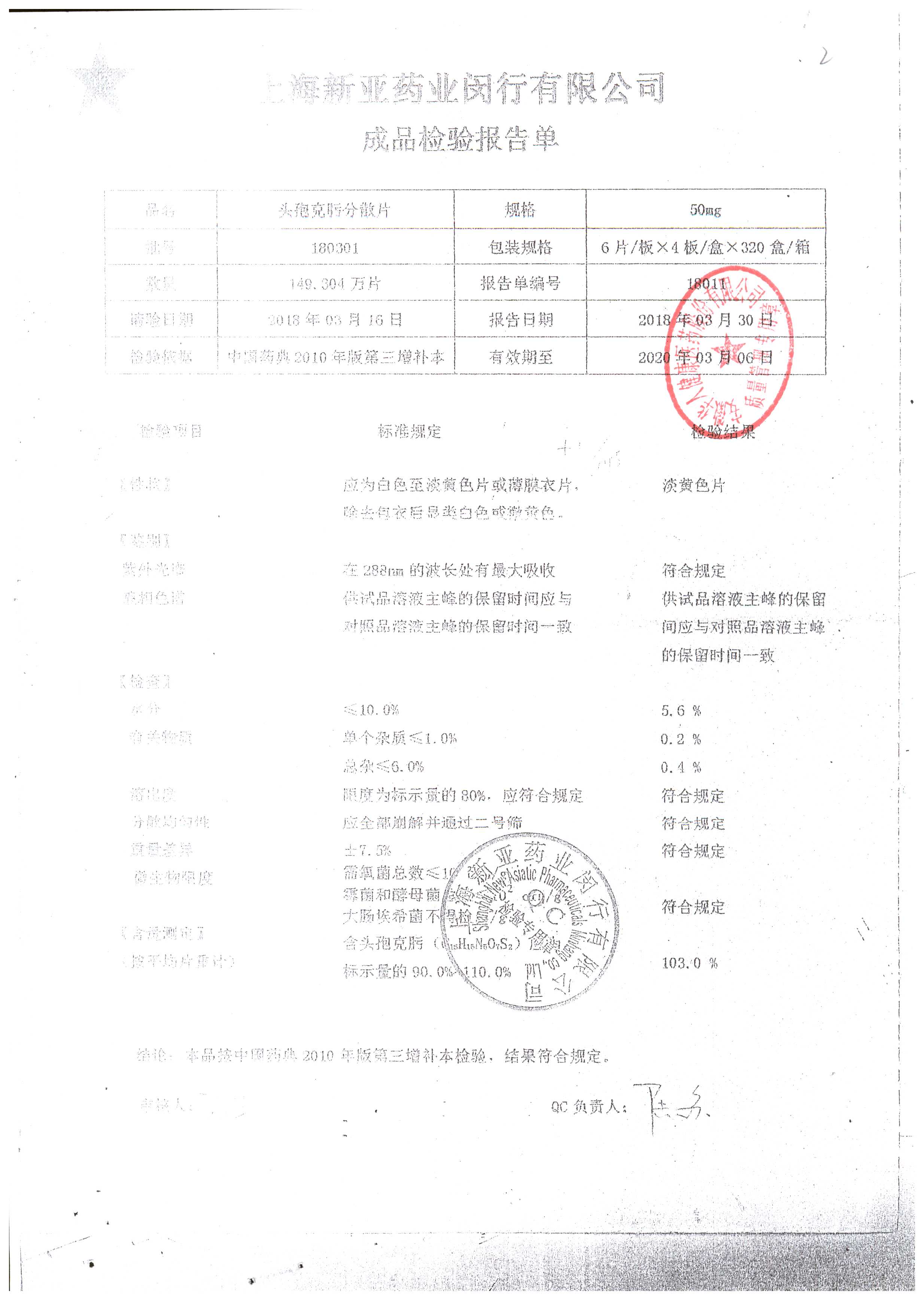 | 頭孢克肟分散片 | 50mg*24s | 220301 | 查看詳情 |