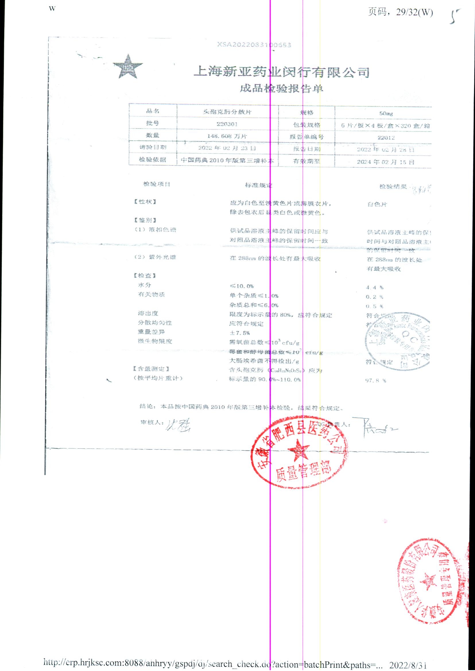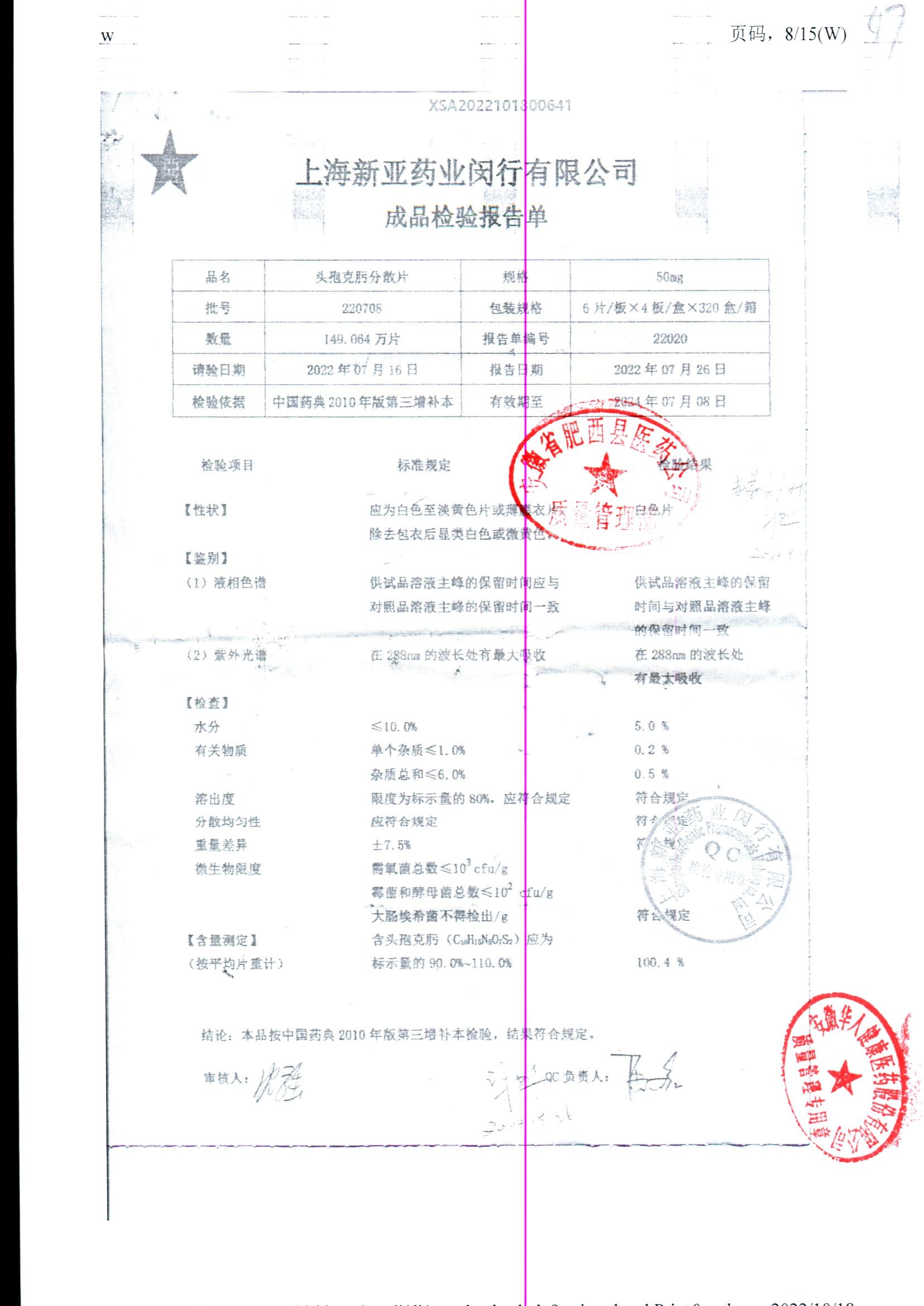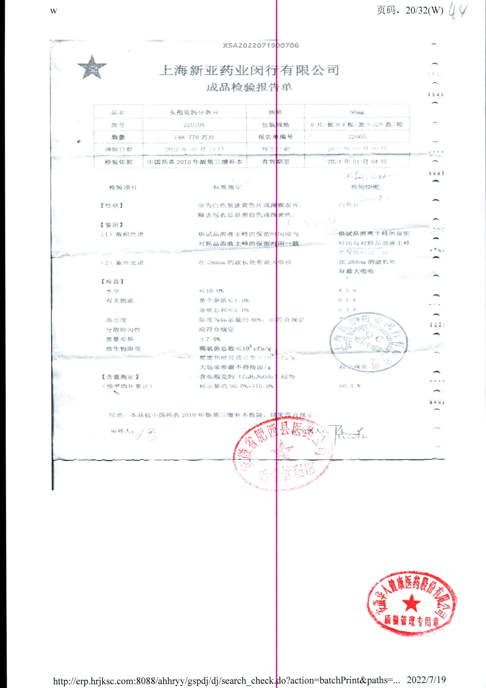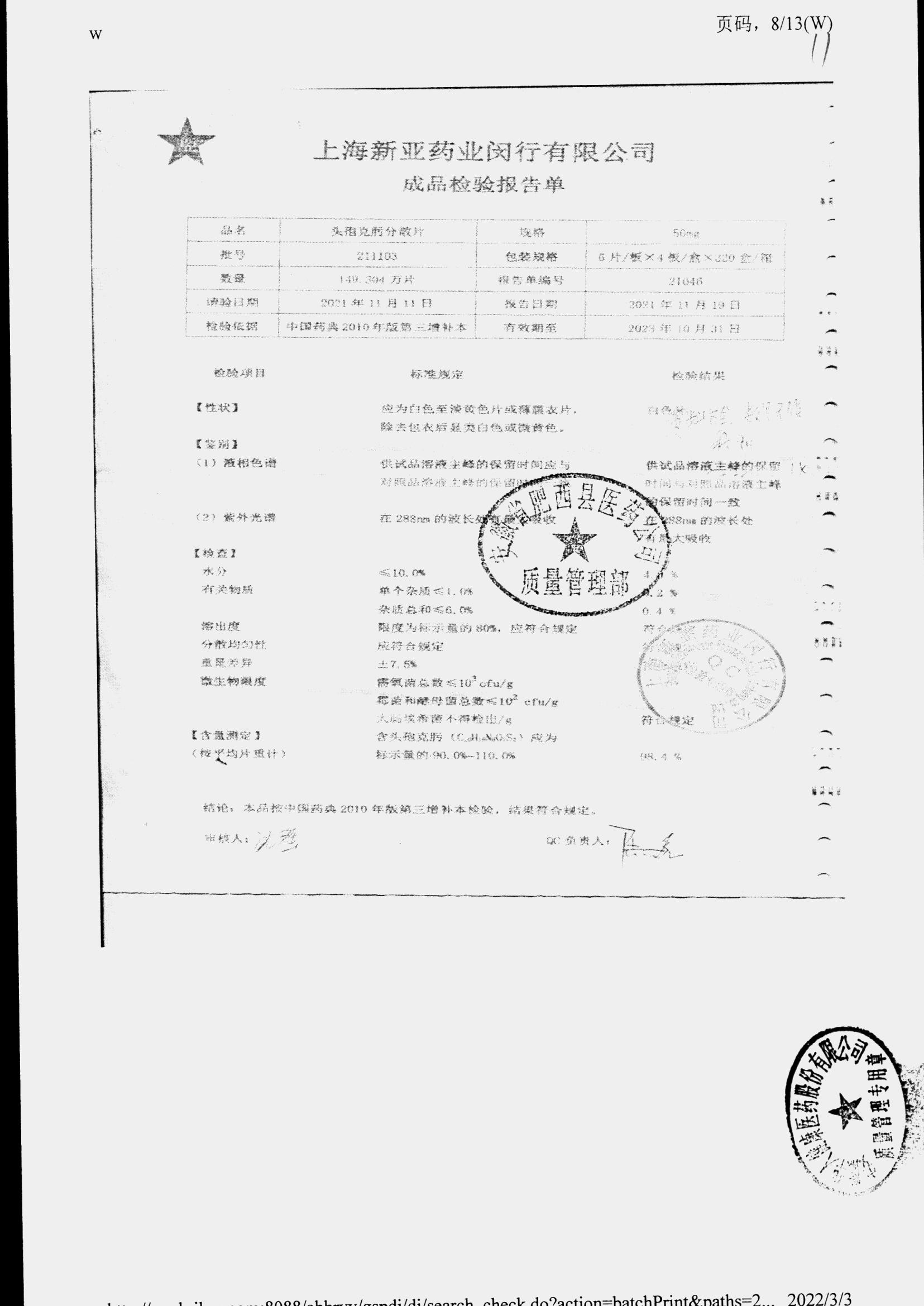 | 頭孢克肟分散片 | 50mg*24s | 220301 | 查看詳情 |