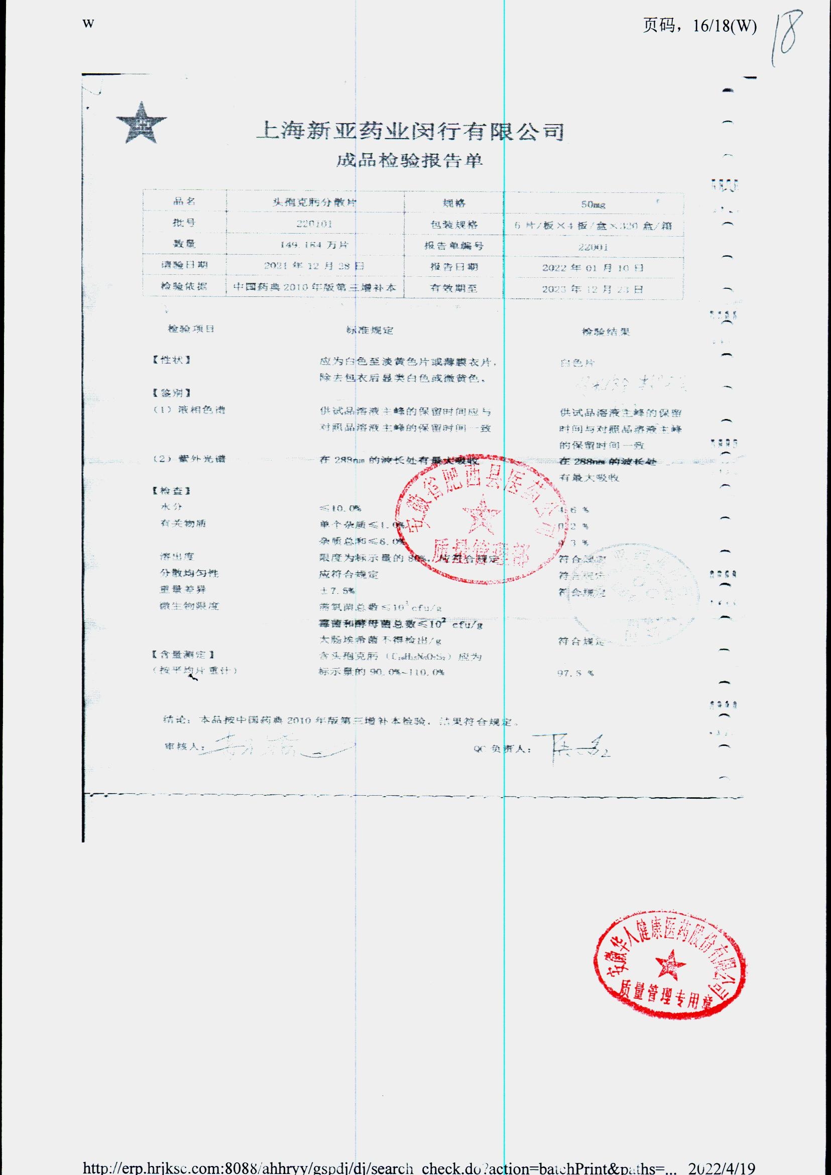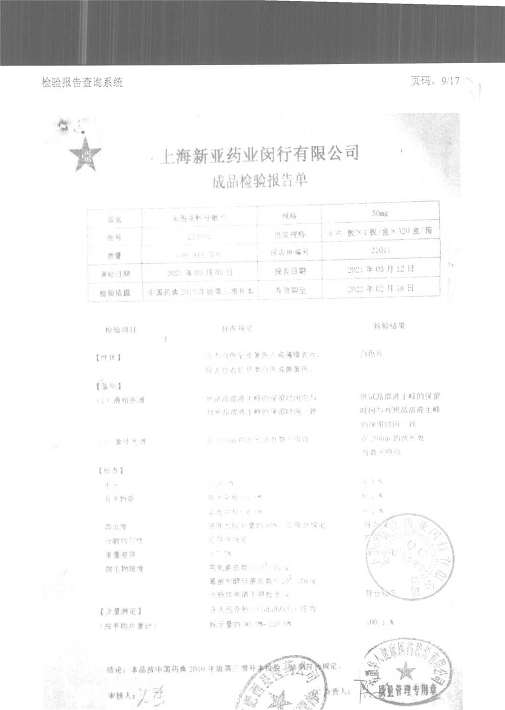 | 名稱 | 規(guī)格 | 批號 | 藥檢報告 |
