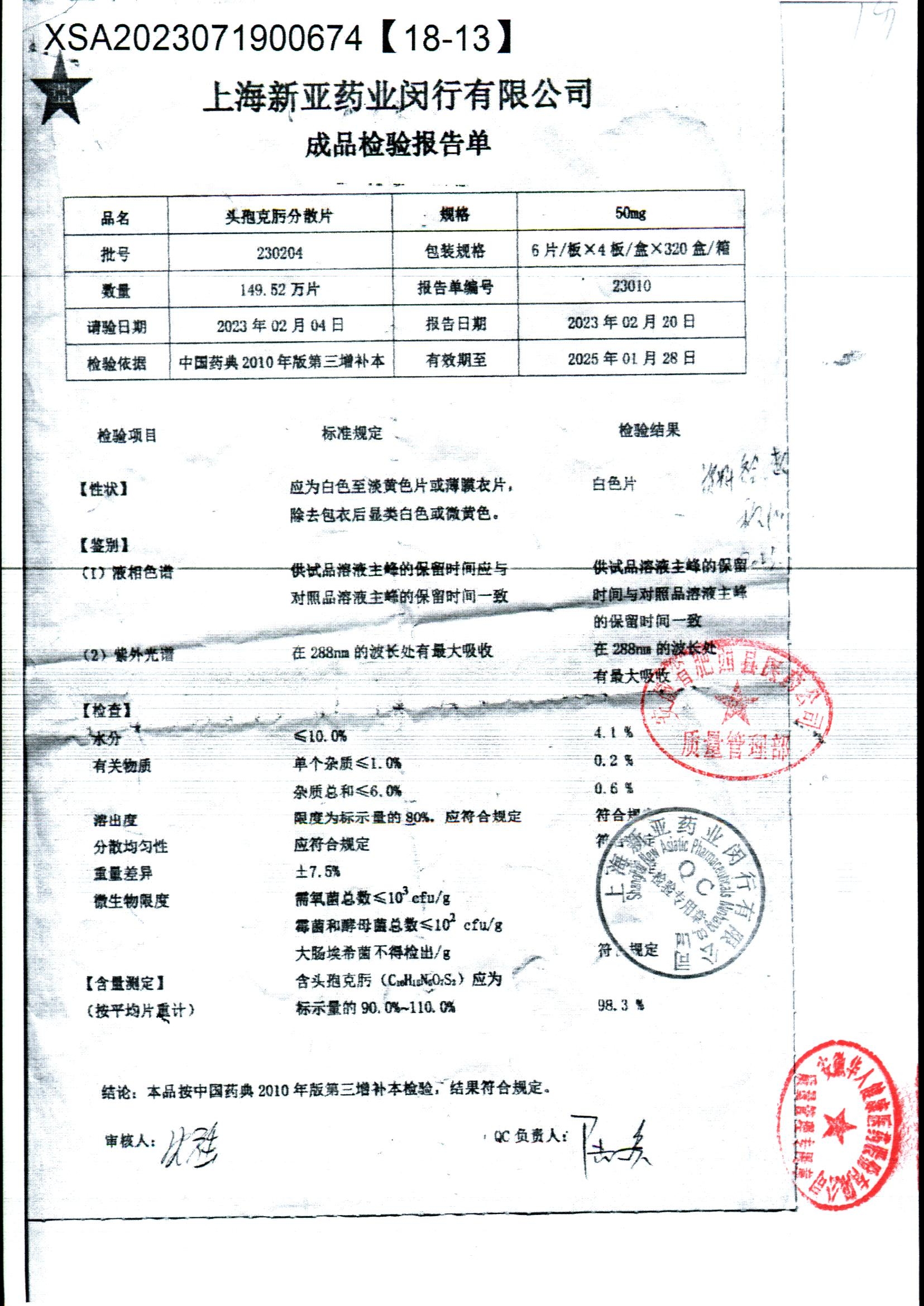 | 頭孢克肟分散片 | 50mg*24s | 230801 | 查看詳情 |