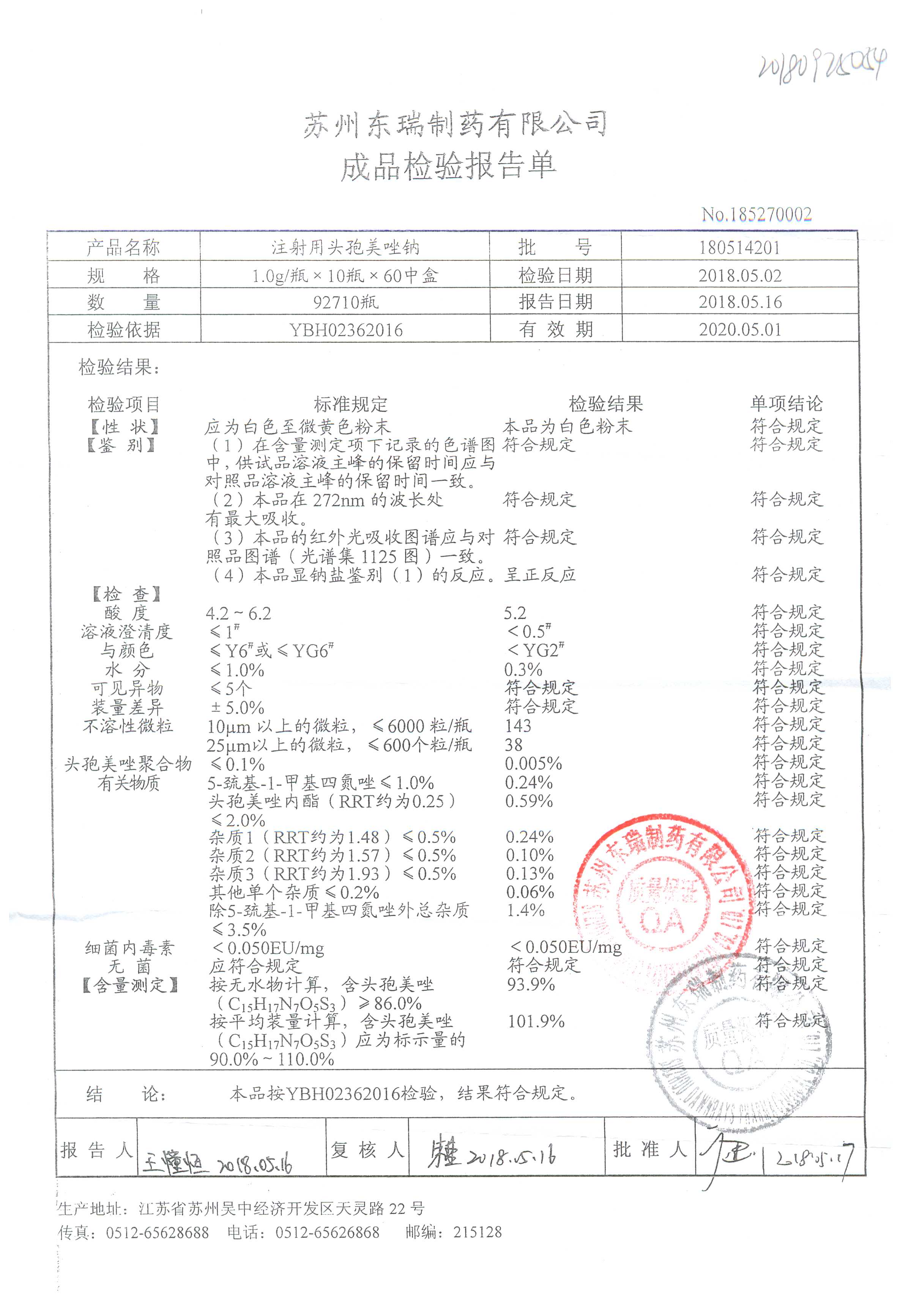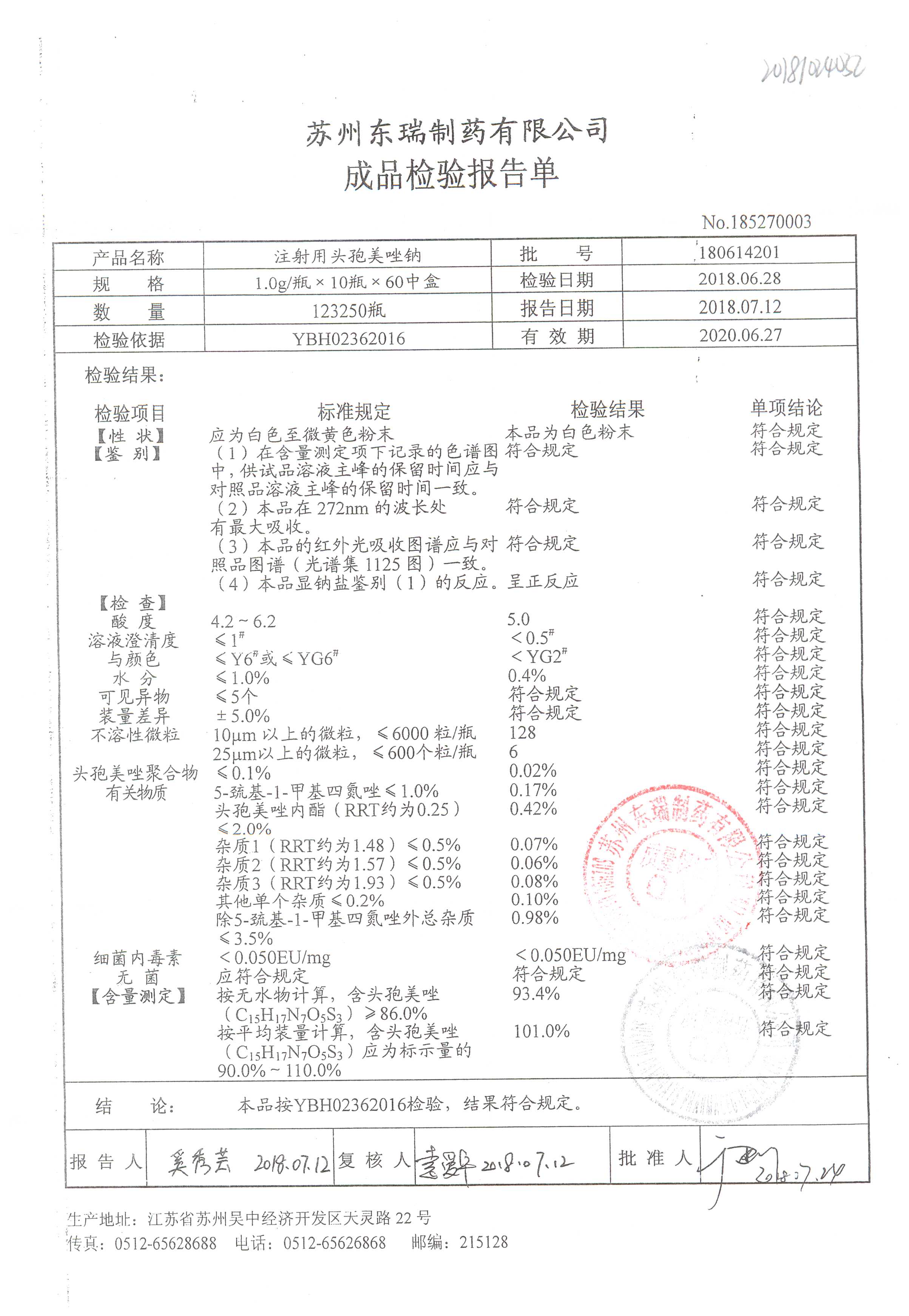 注射用頭孢美唑鈉 1g*10*60 180214201 查看詳情
