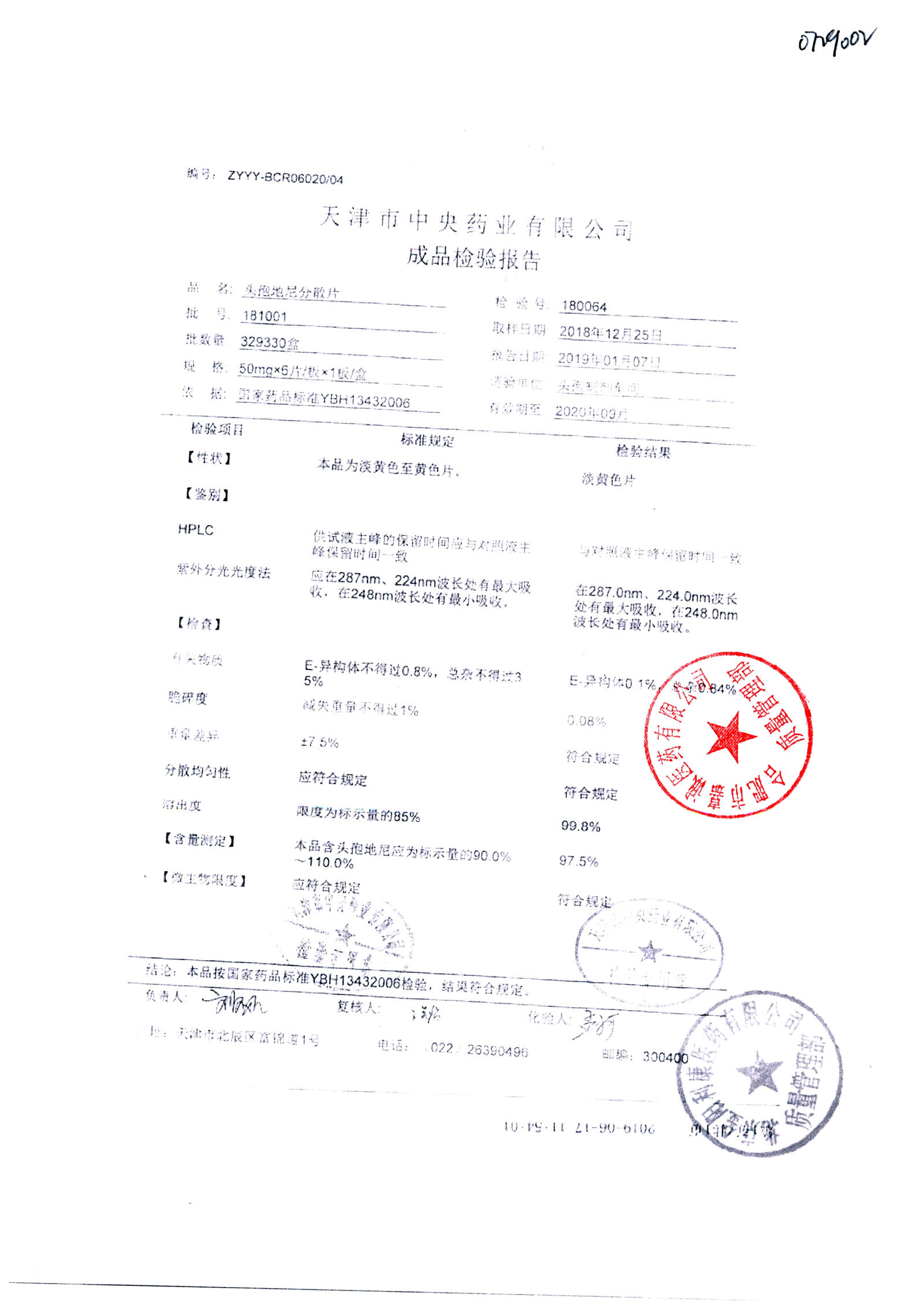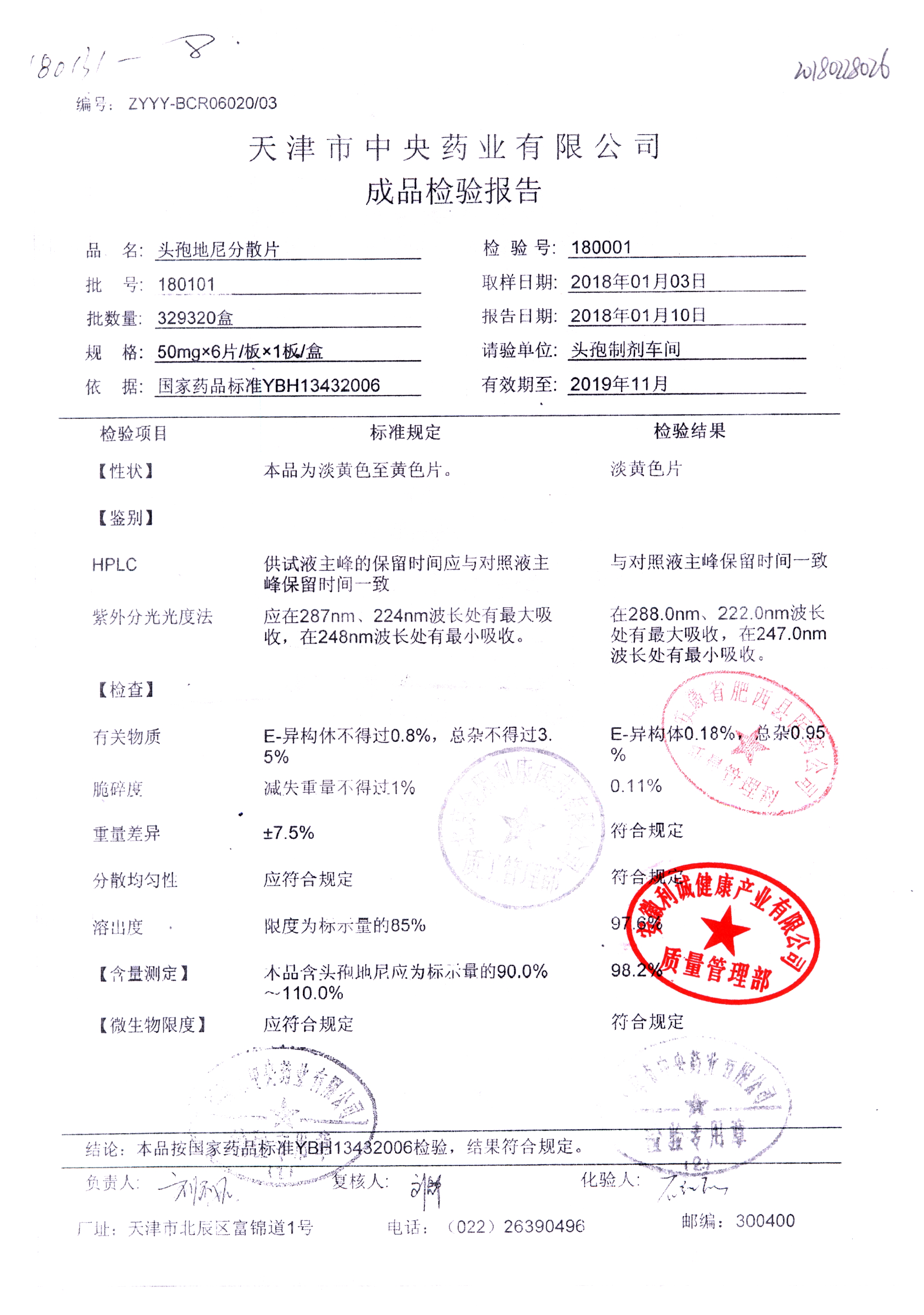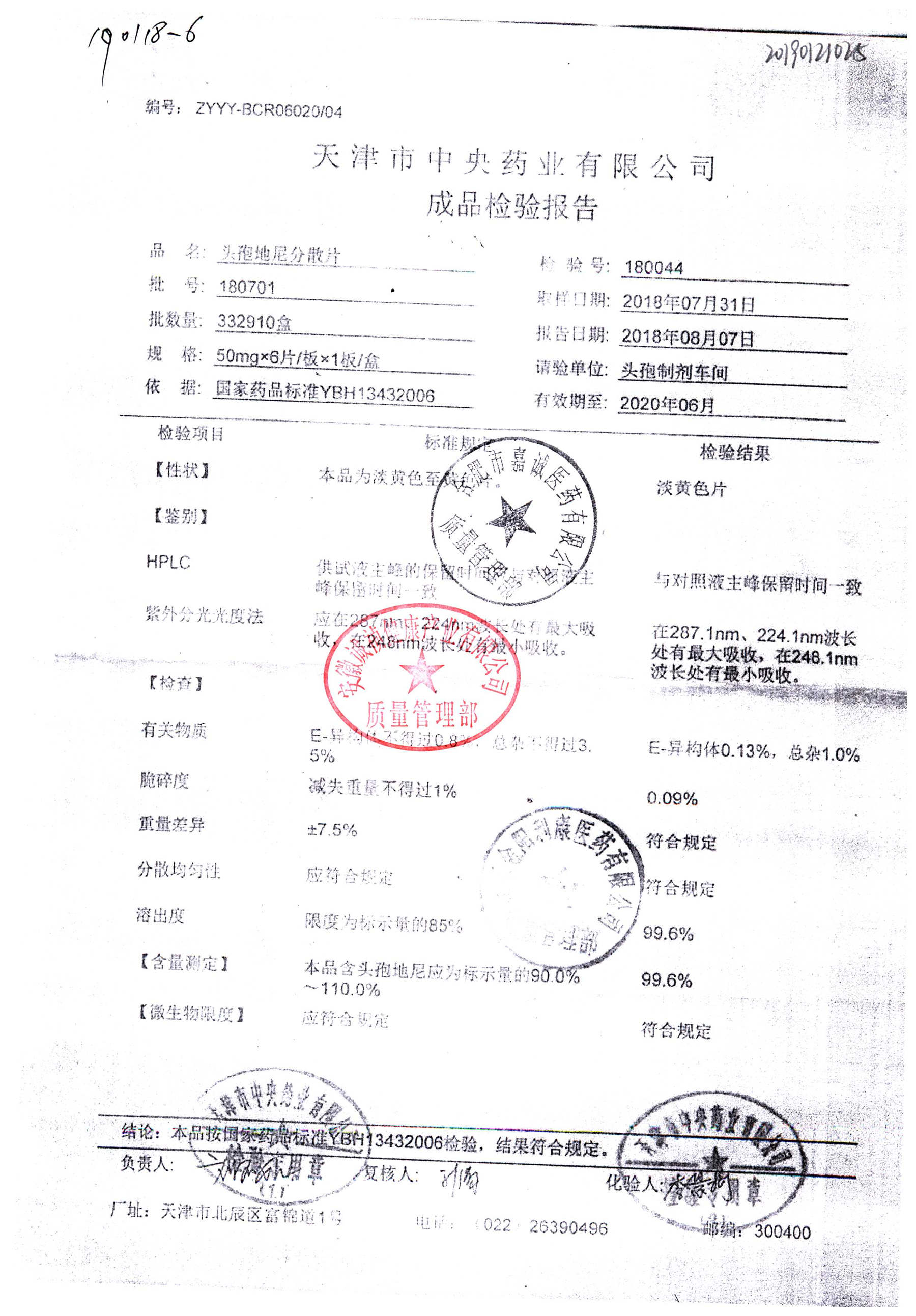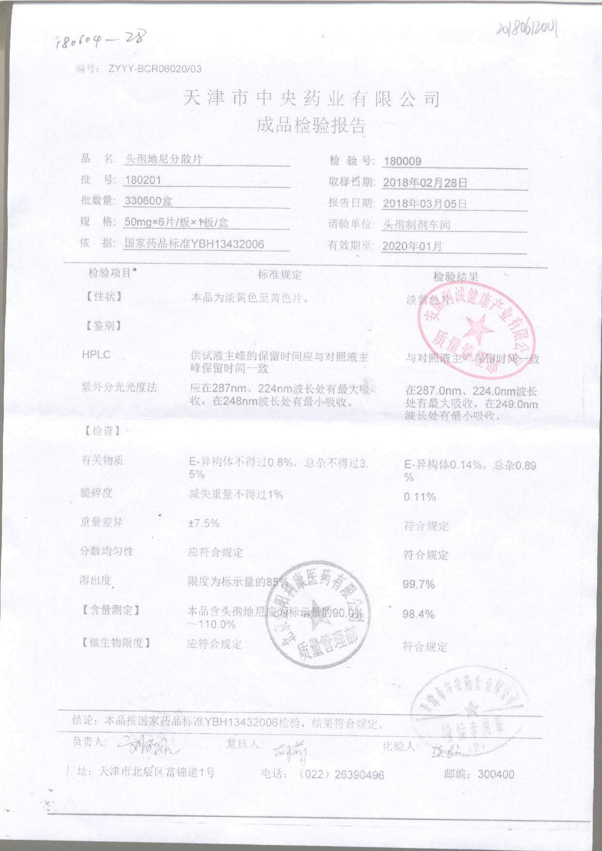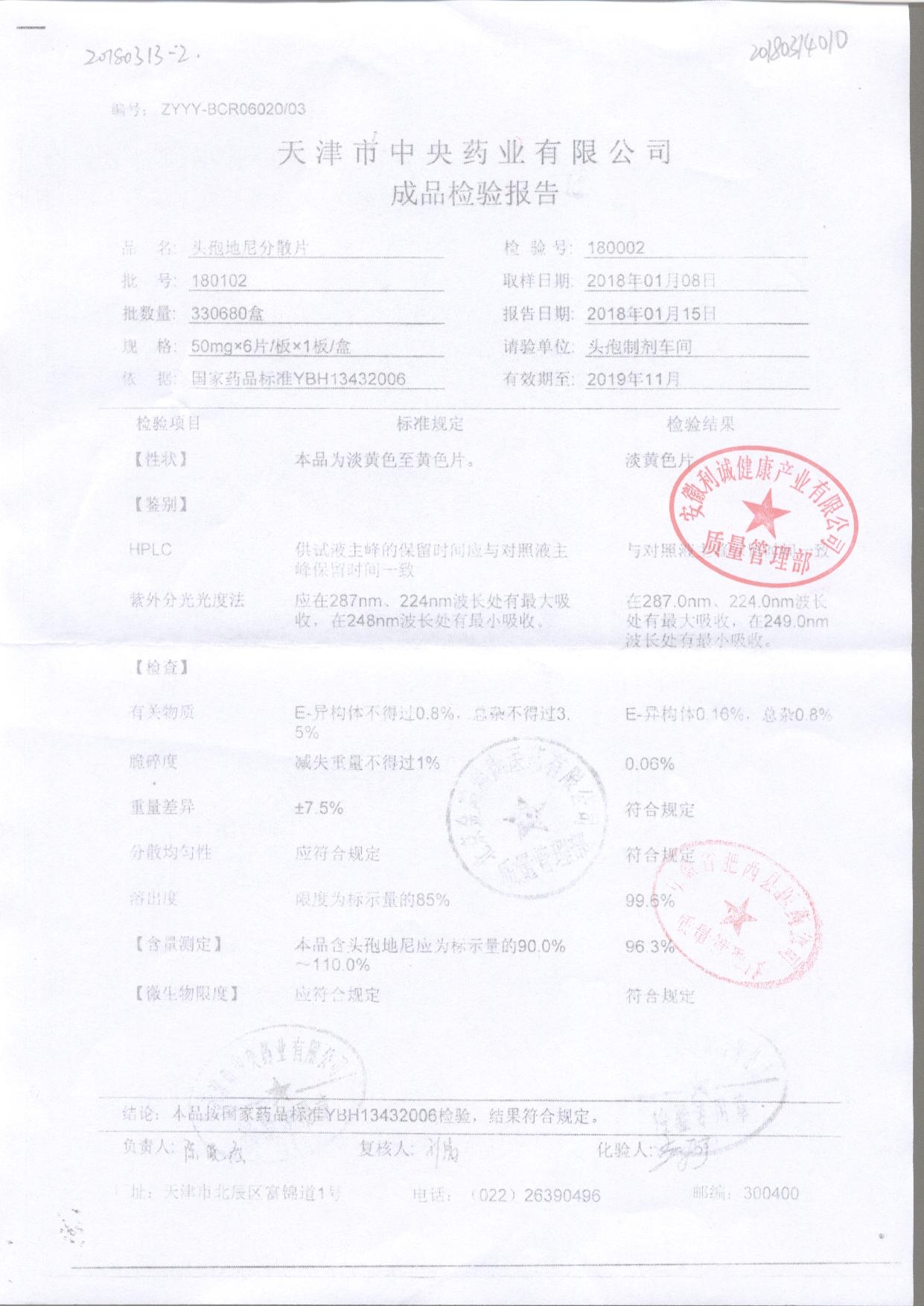 | 頭孢地尼分散片 | 50mg*6s | 180701 | 查看詳情 |