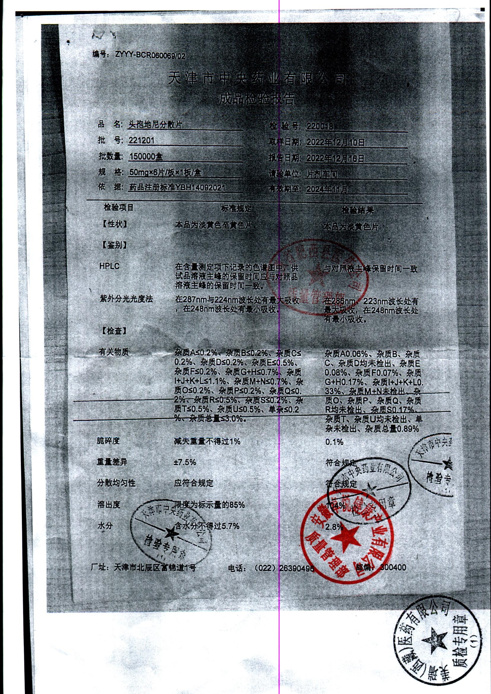 | 頭孢地尼分散片 | 50mg*6s | 221201 | 查看詳情 |