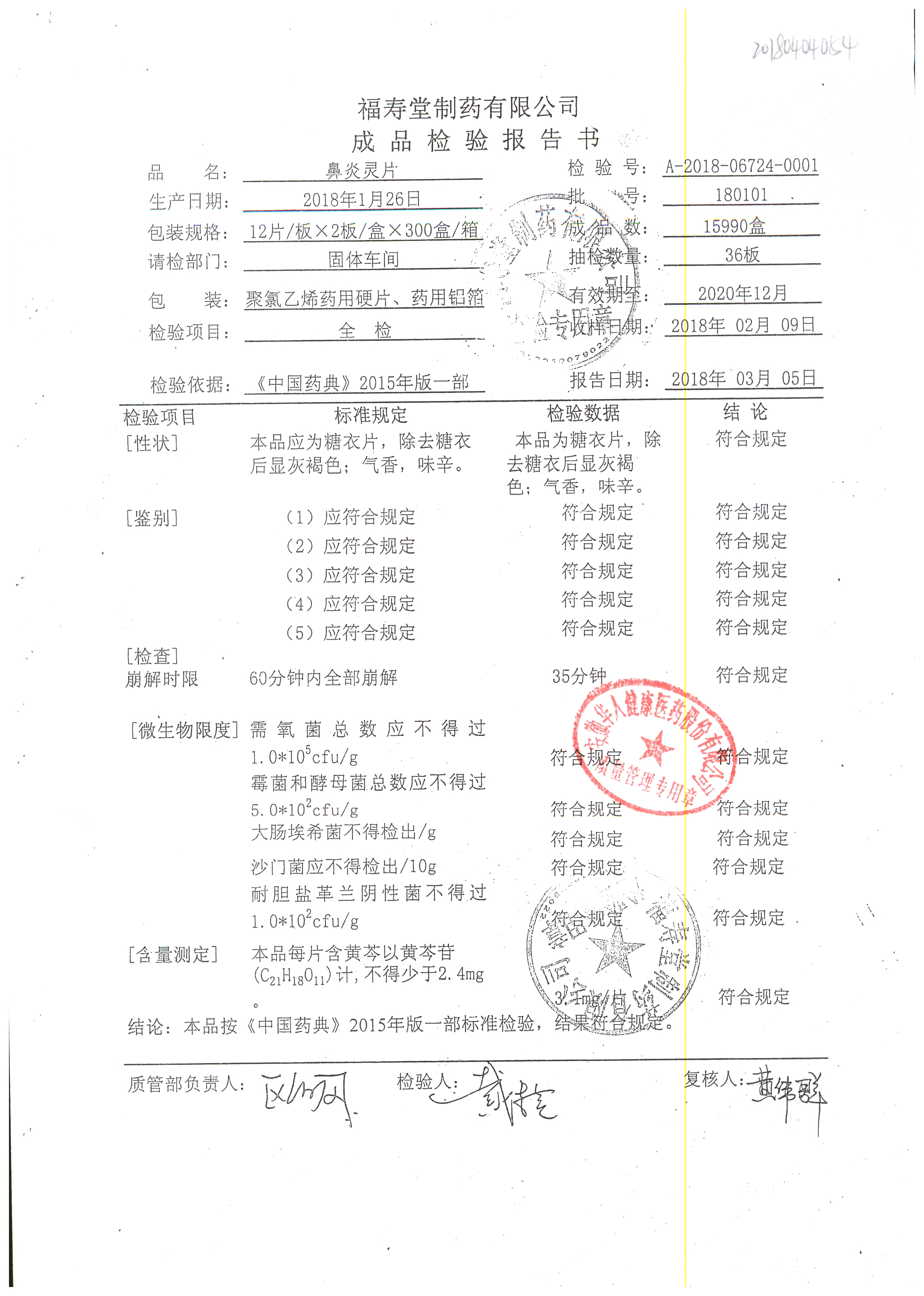 | 名稱 | 規(guī)格 | 批號(hào) | 藥檢報(bào)告 |
