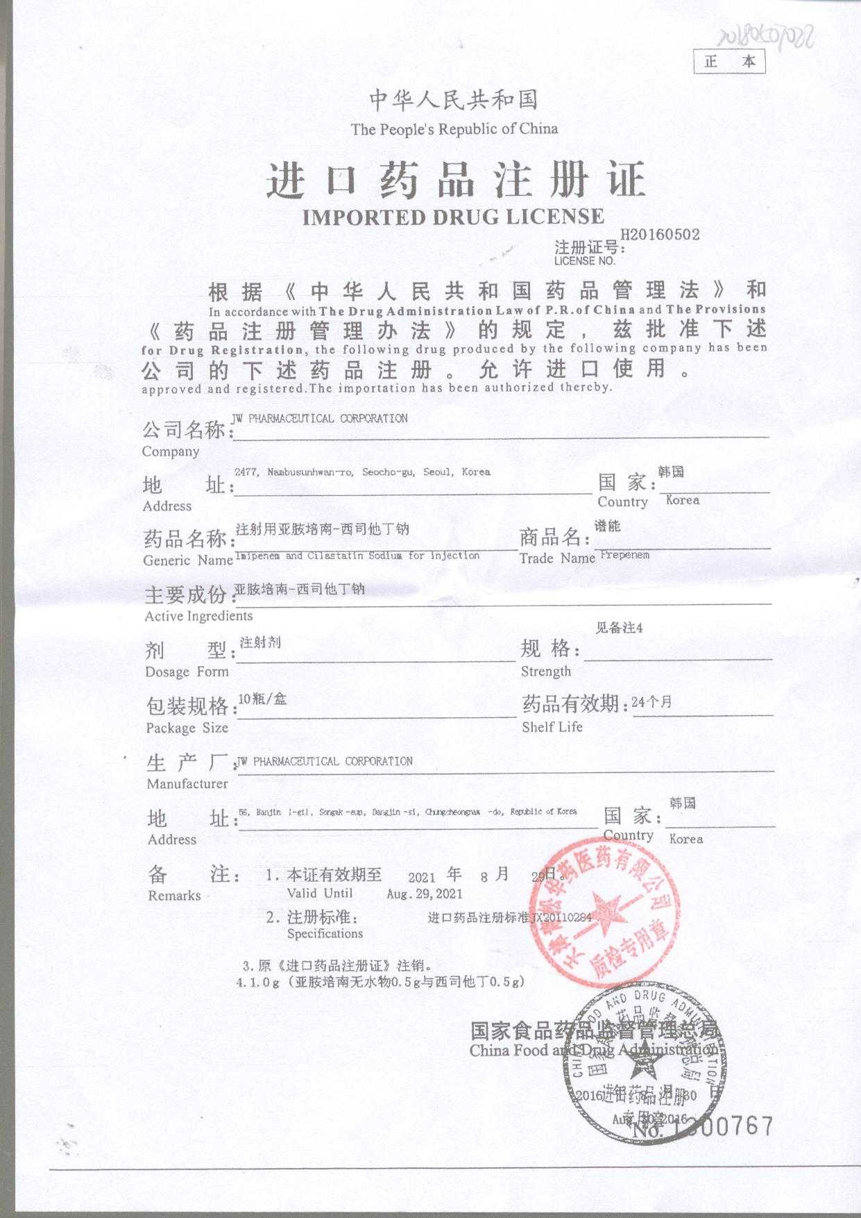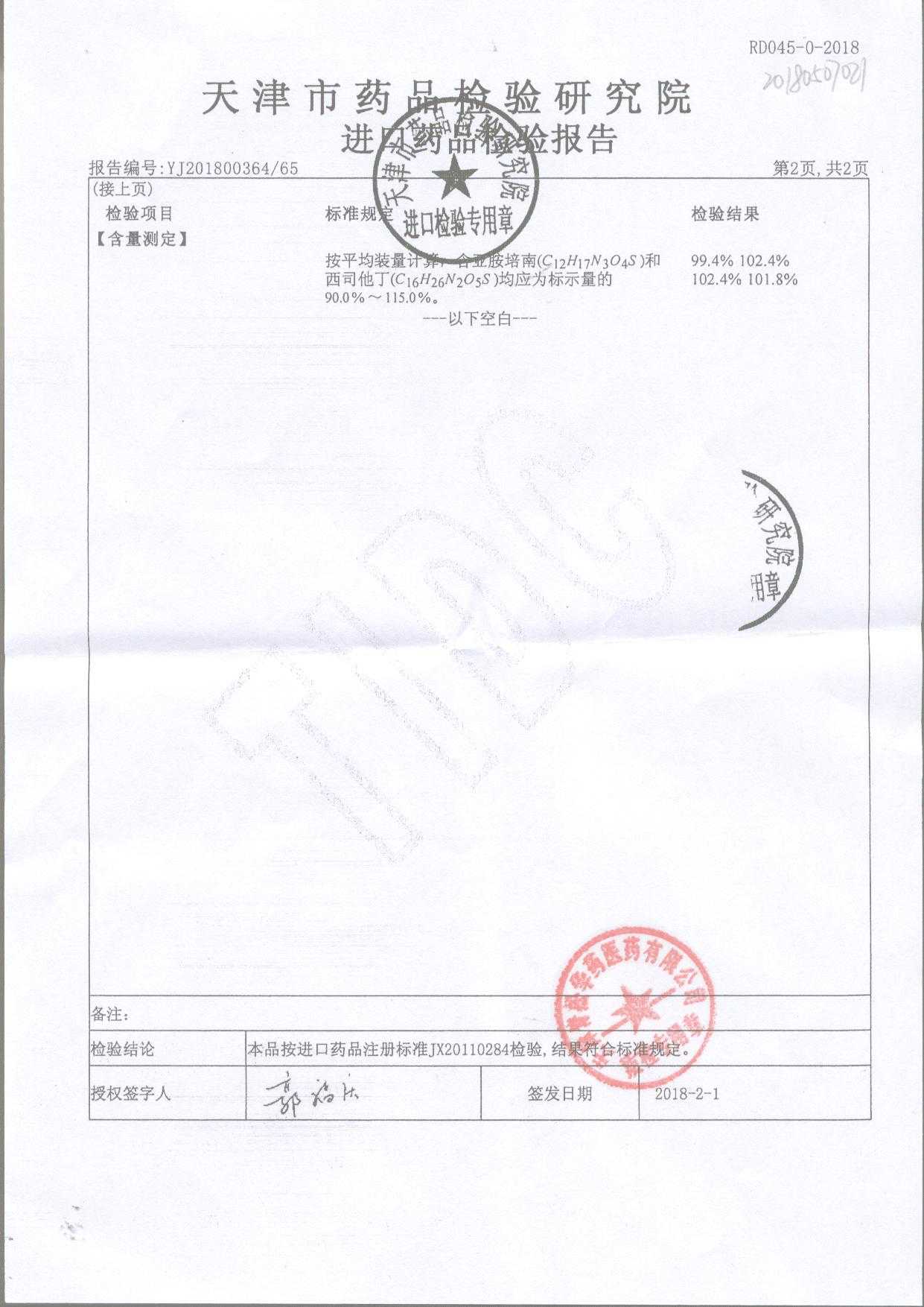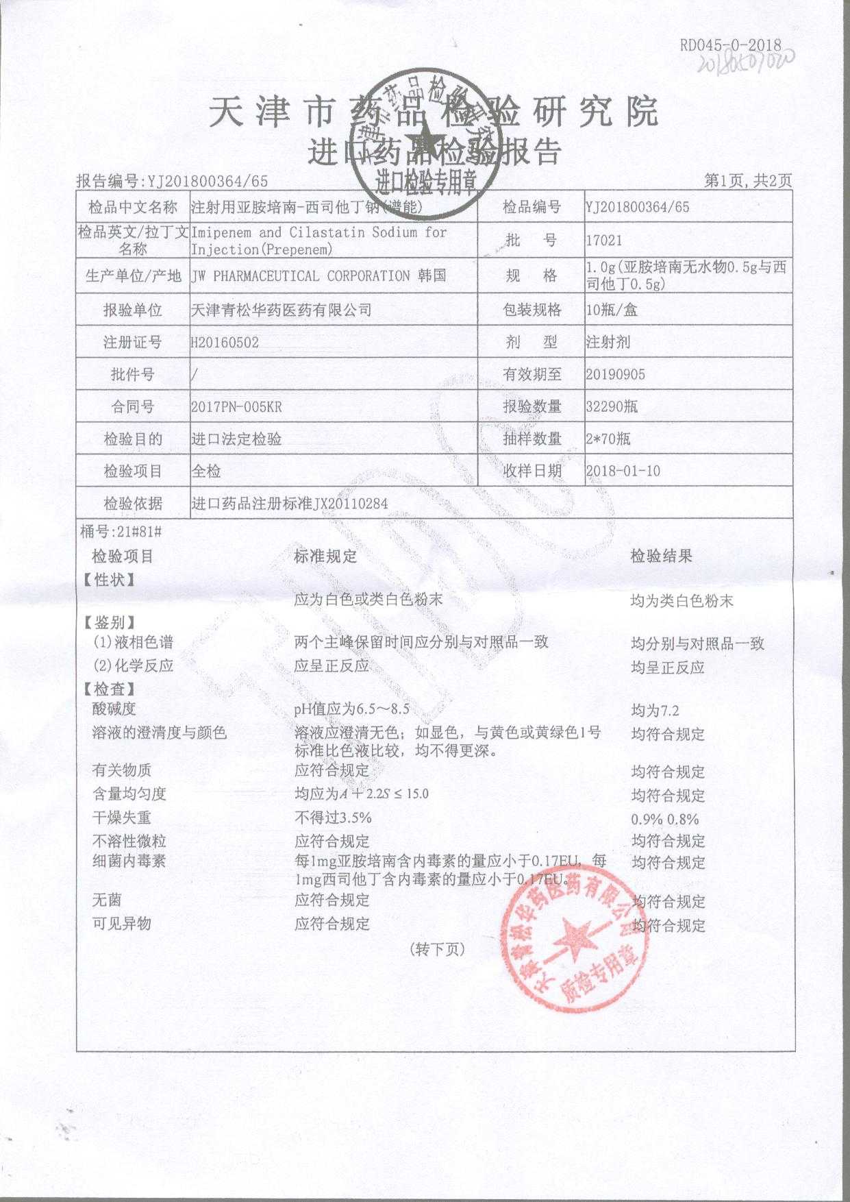 | 注射用亞胺培南-西司他丁鈉 | 1g*10瓶 | 17025(2/4) | 查看詳情 |