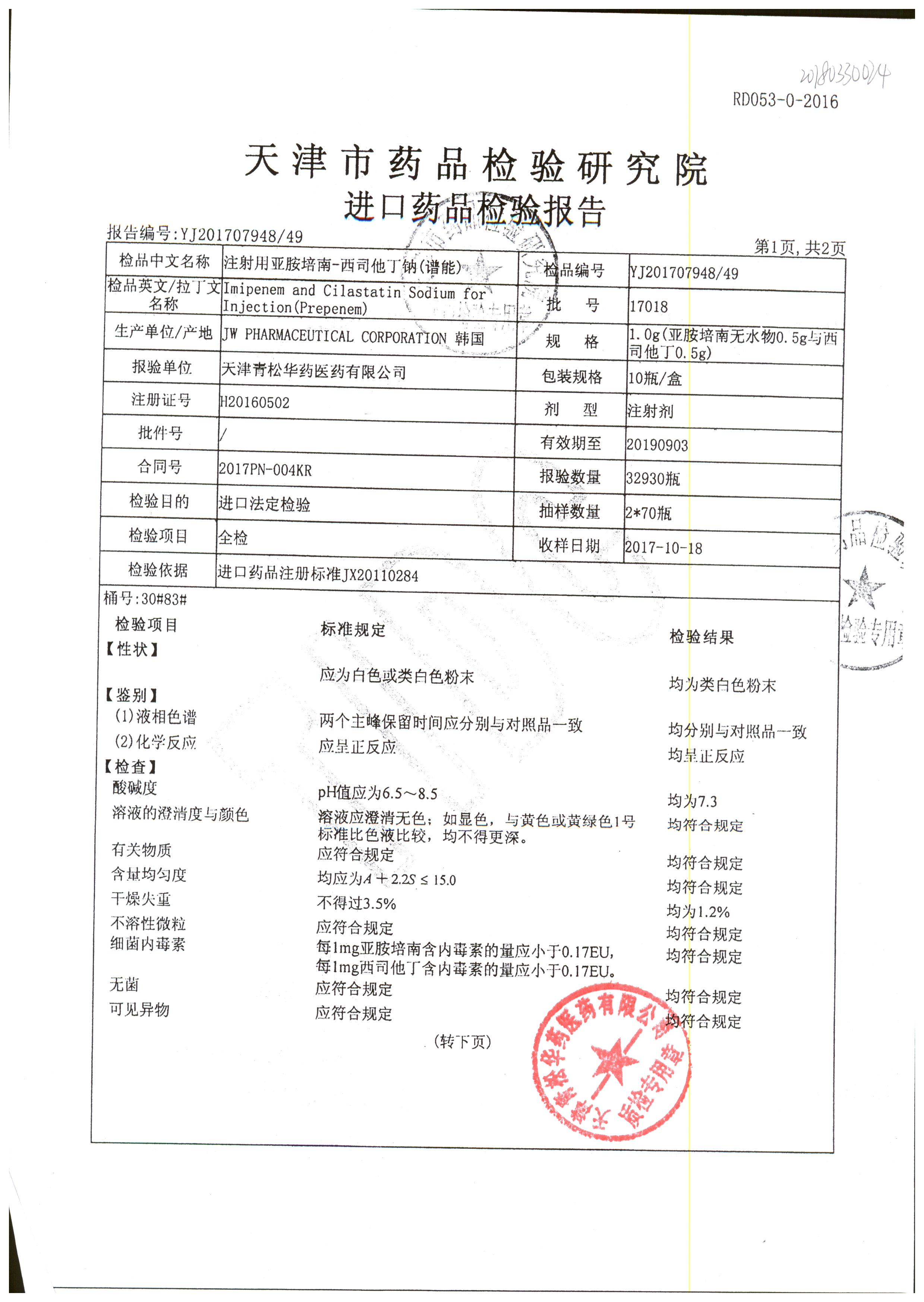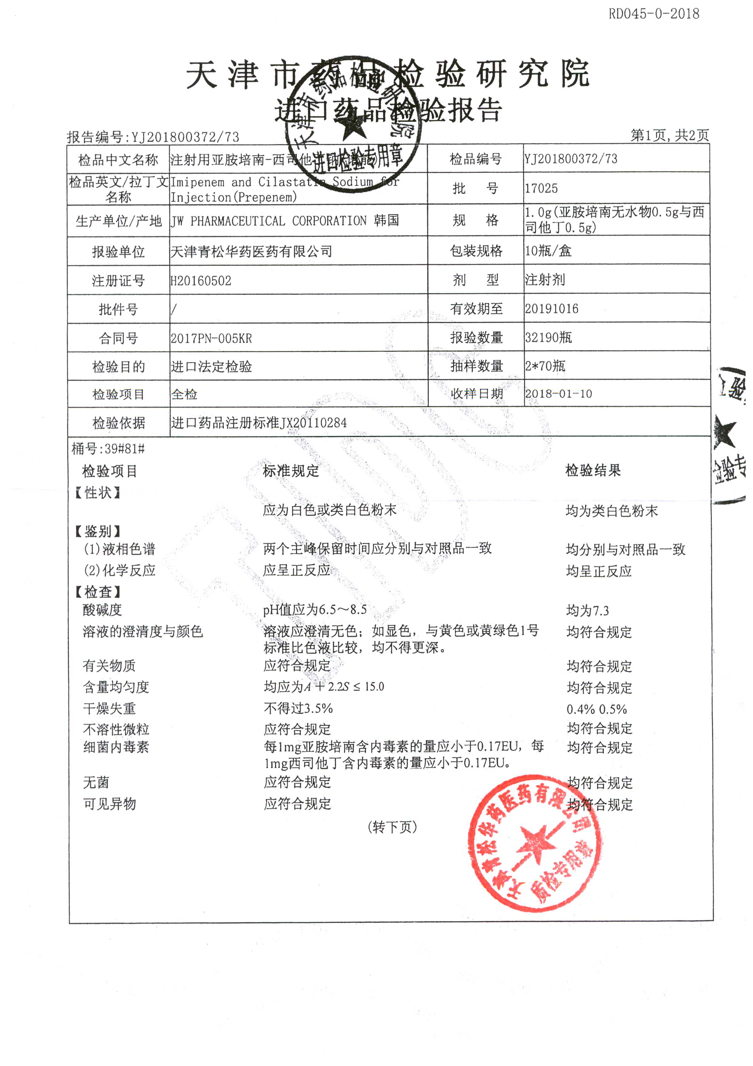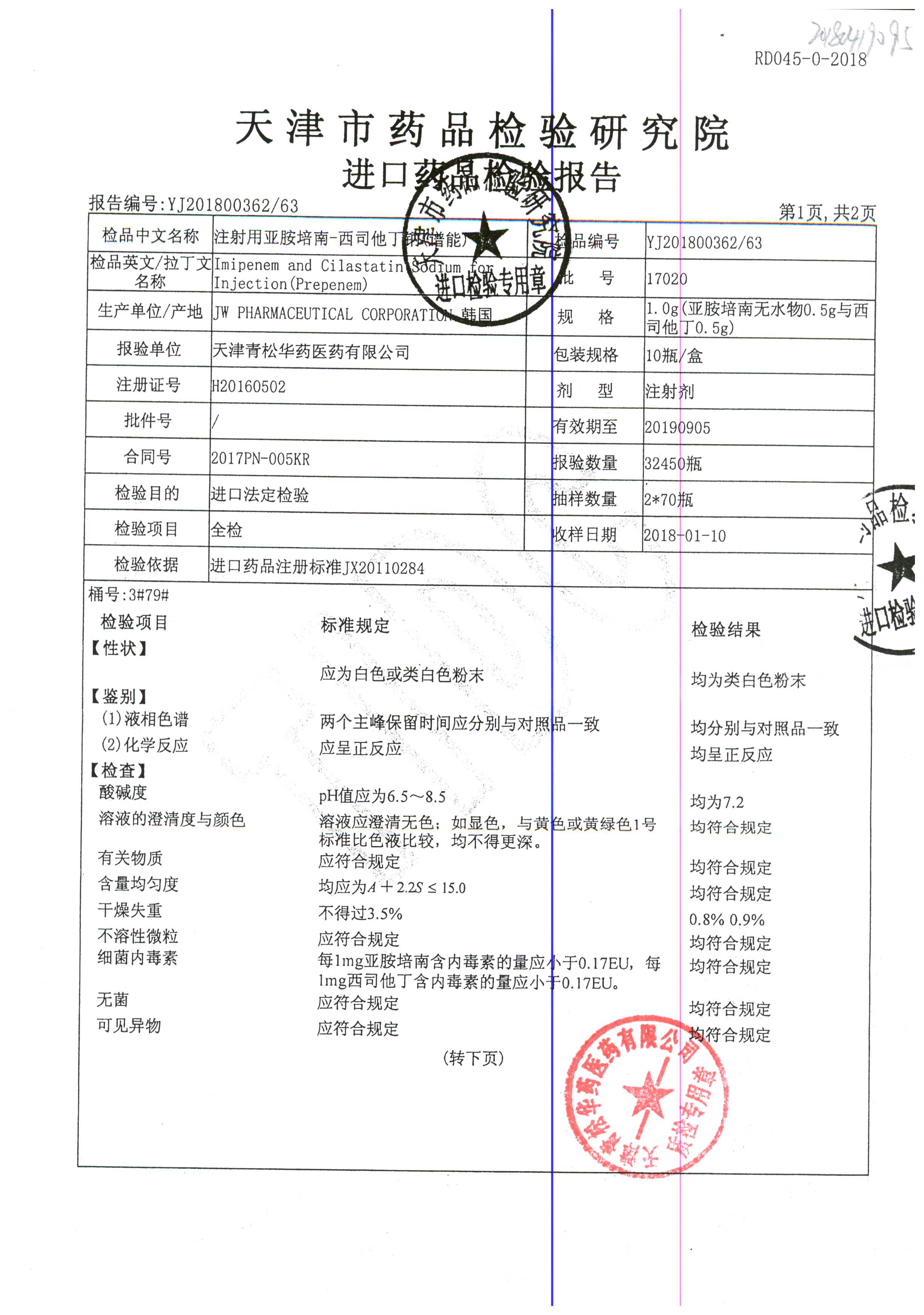 | 注射用亞胺培南-西司他丁鈉 | 1g*10瓶 | 17025(2/4) | 查看詳情 |