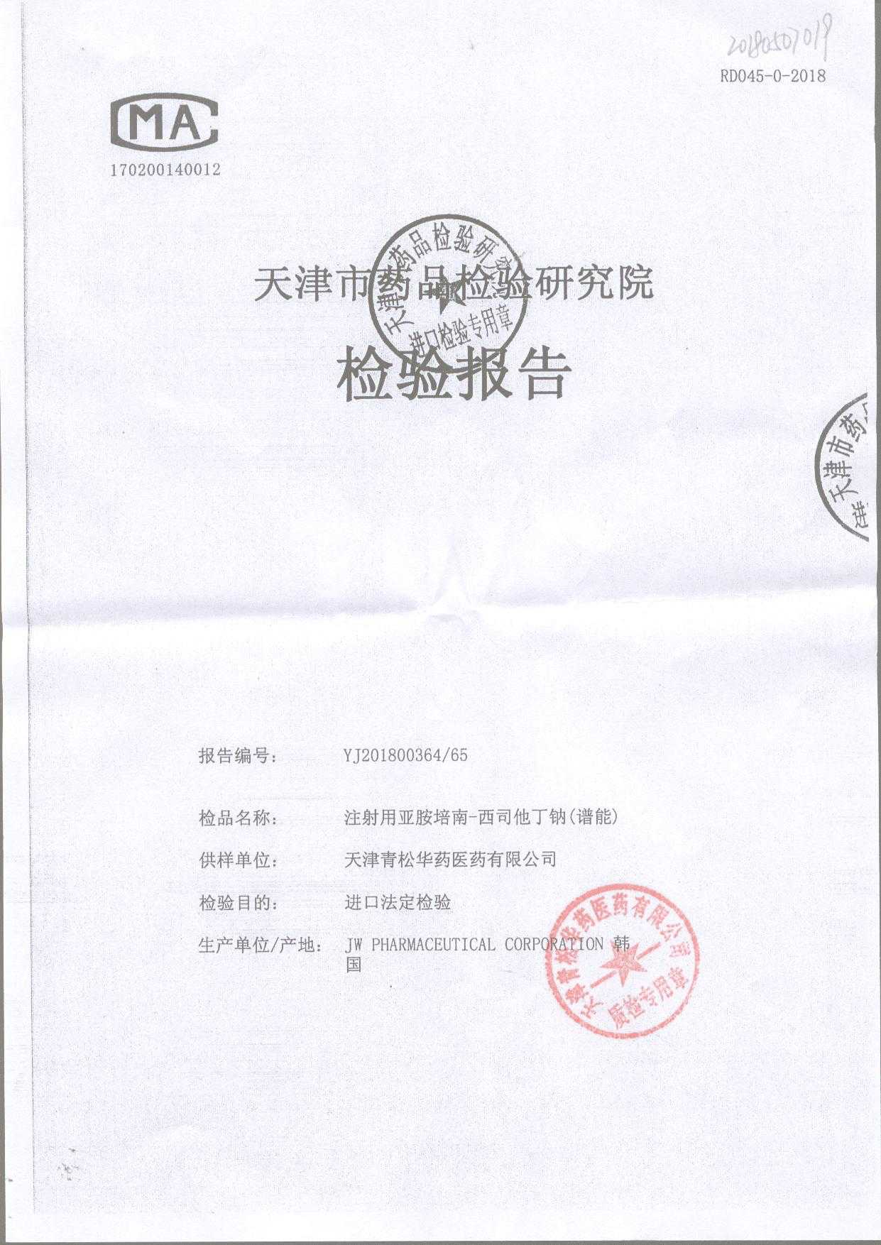 | 名稱(chēng) | 規(guī)格 | 批號(hào) | 藥檢報(bào)告 |