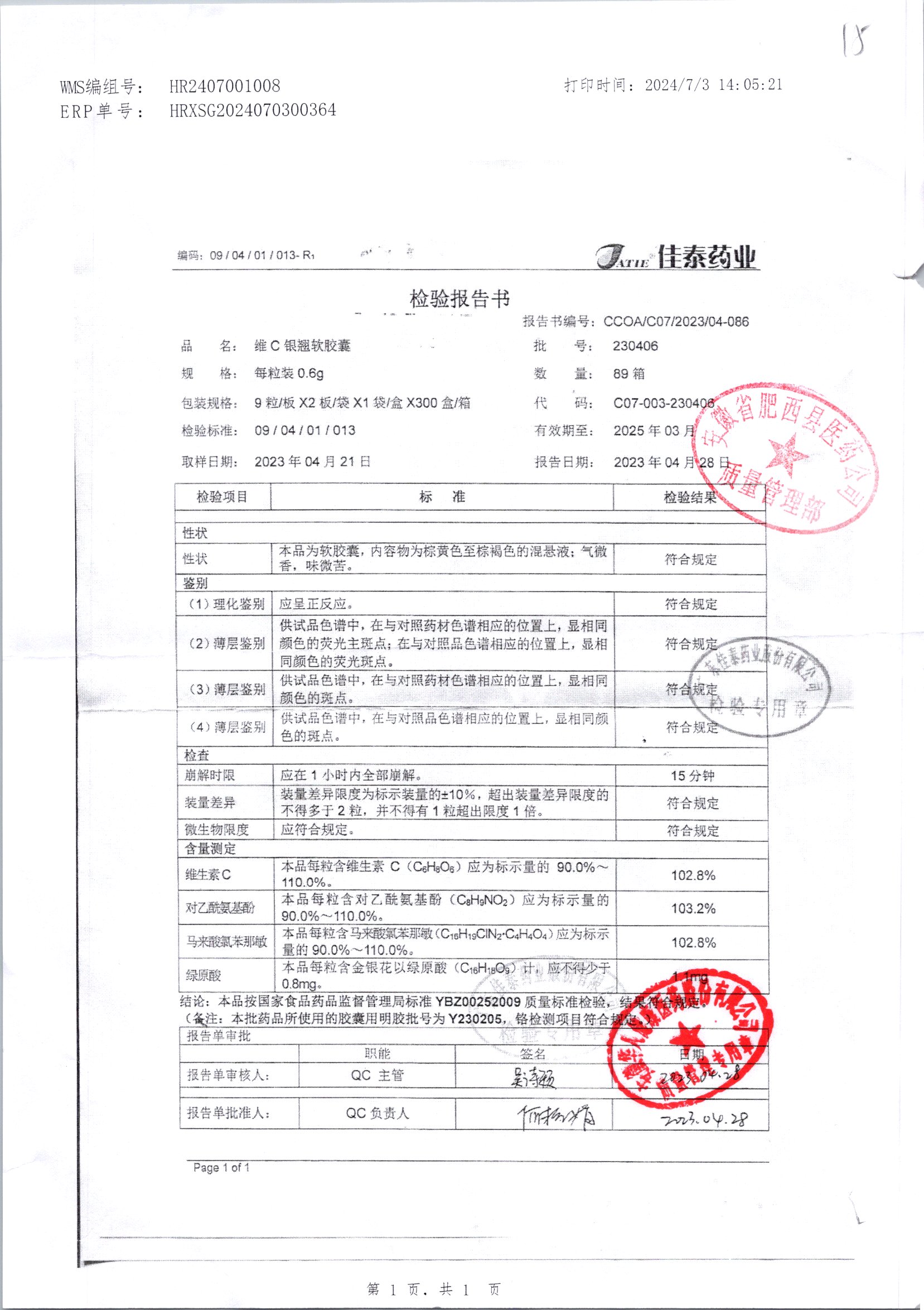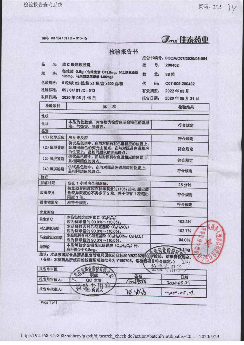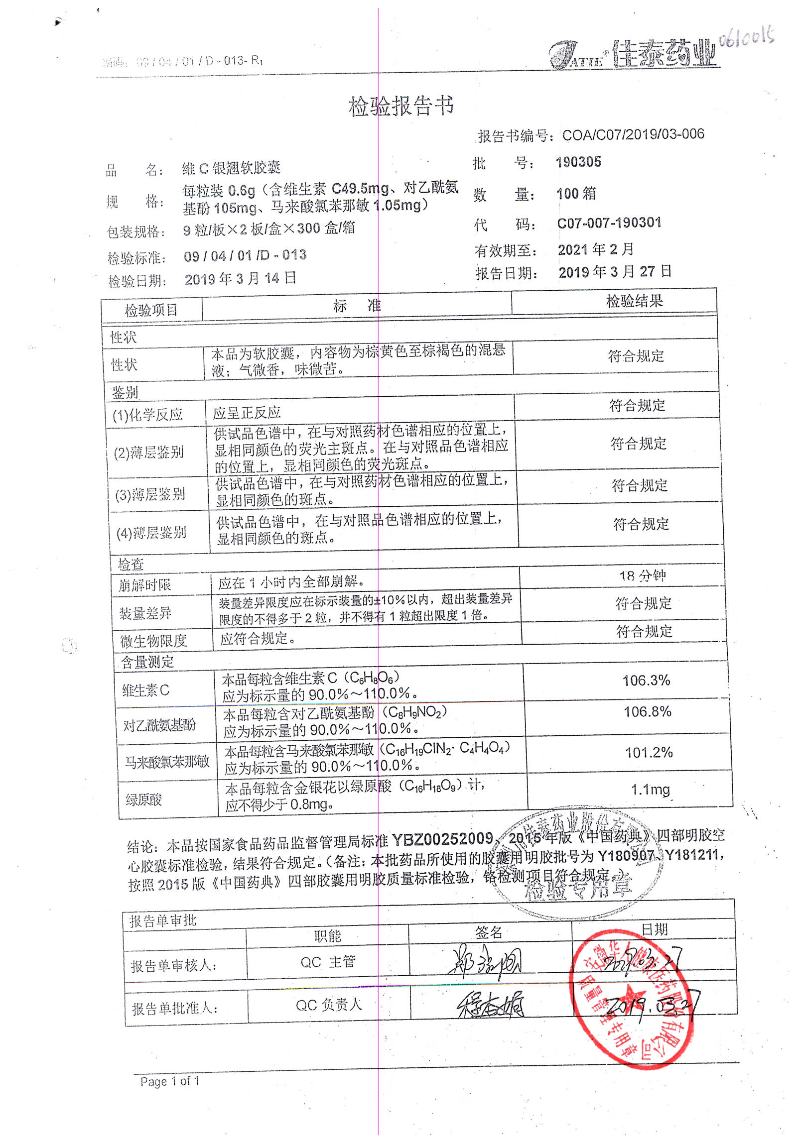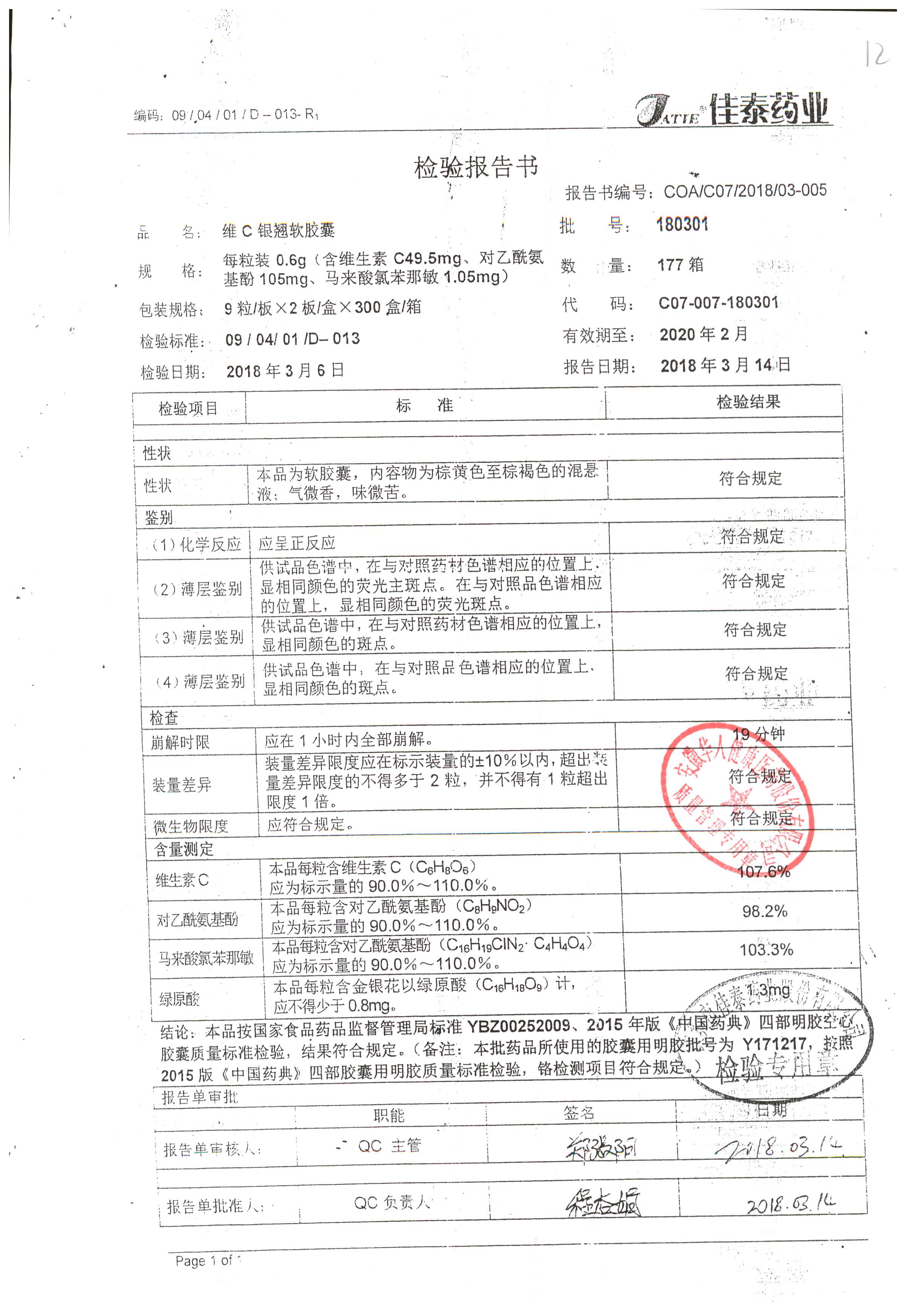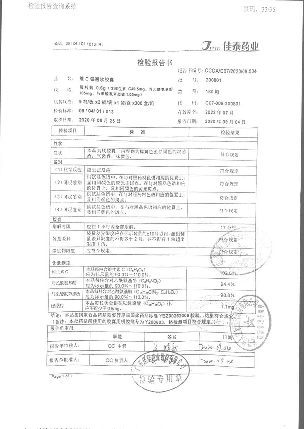 | 名稱 | 規(guī)格 | 批號(hào) | 藥檢報(bào)告 |