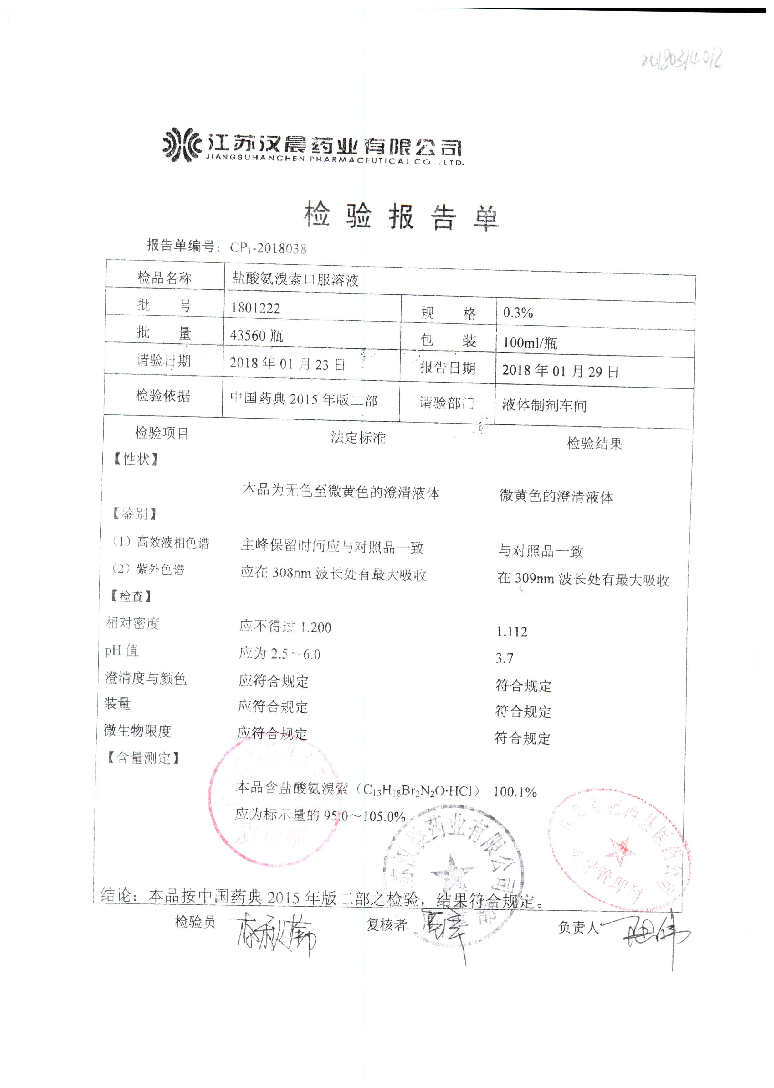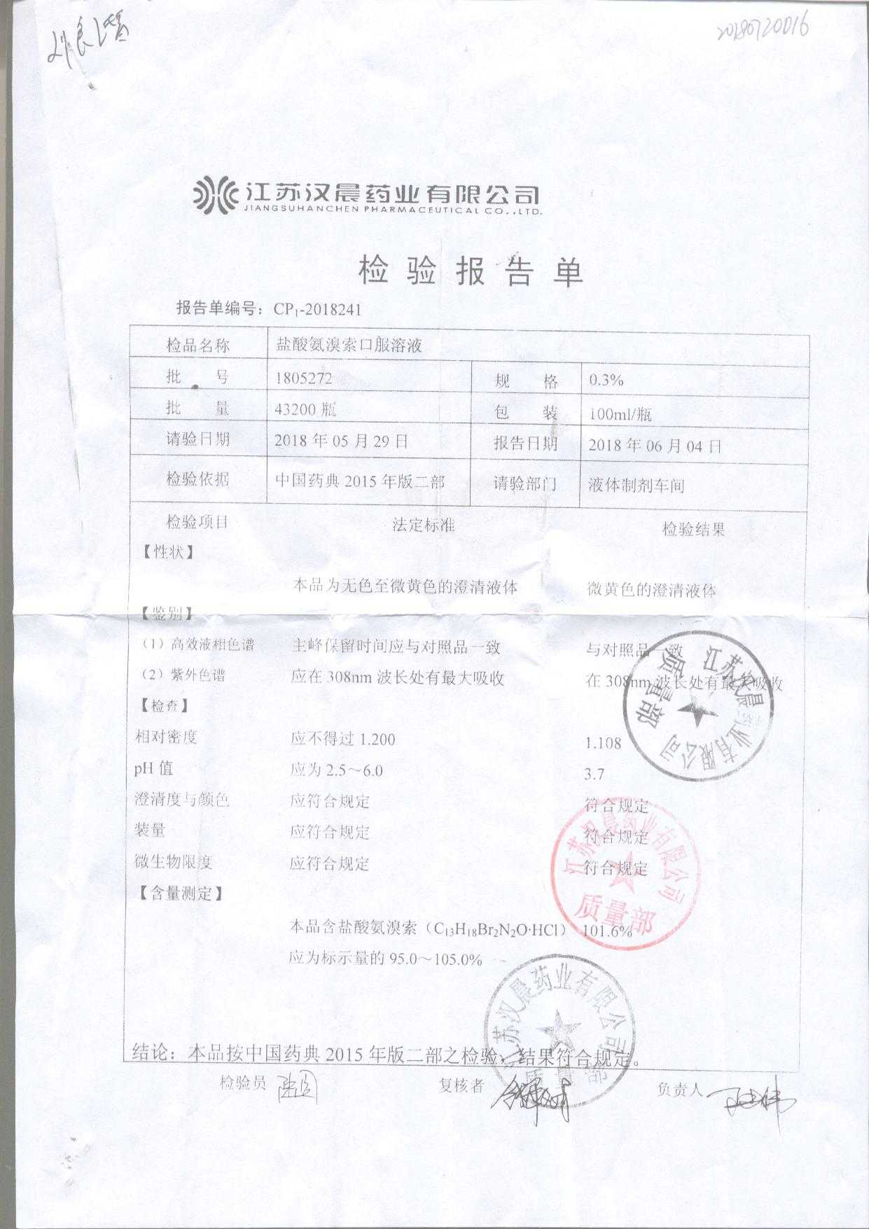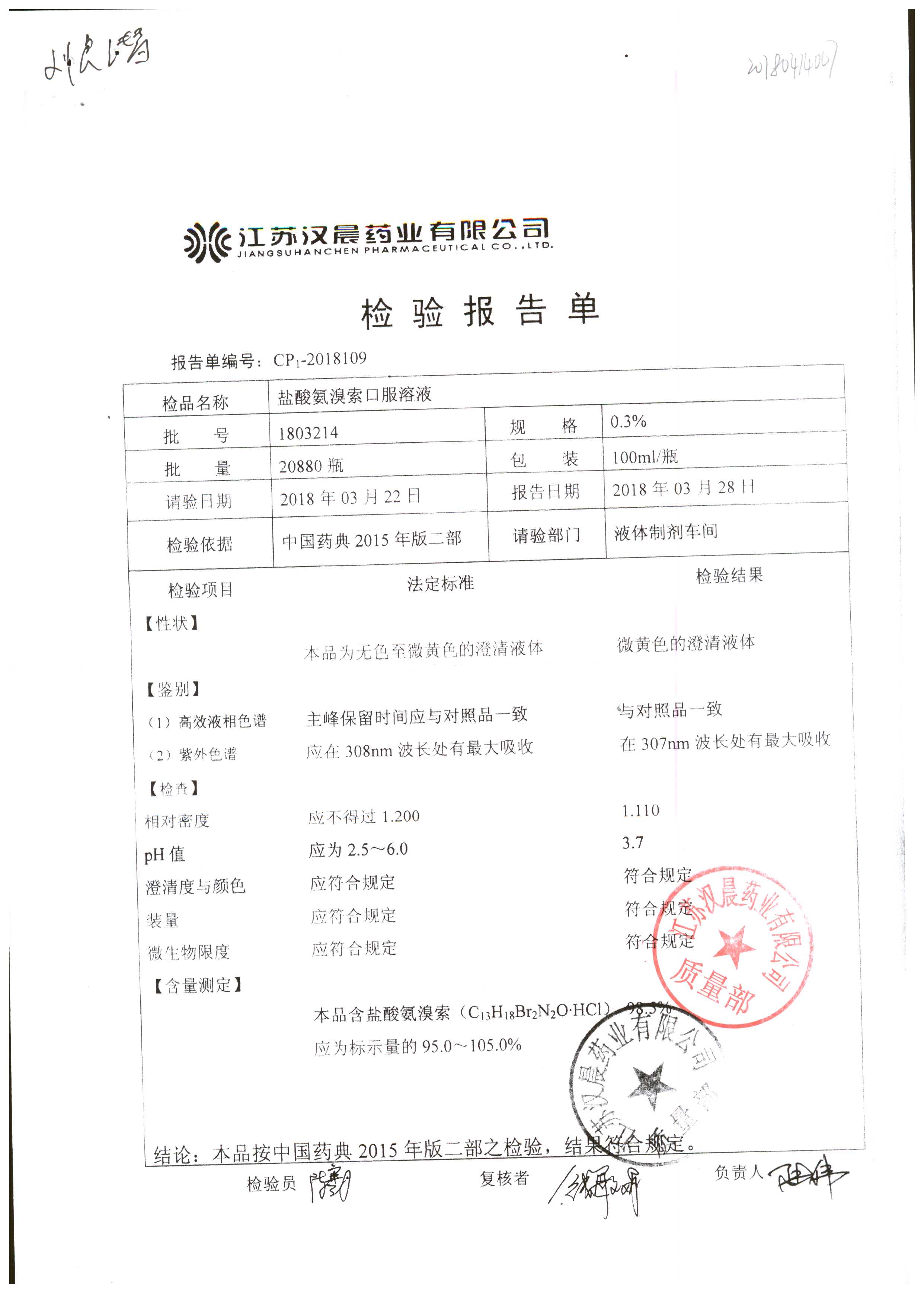 | 鹽酸氨溴索口服溶液 | 100ml | 1801222 | 查看詳情 |