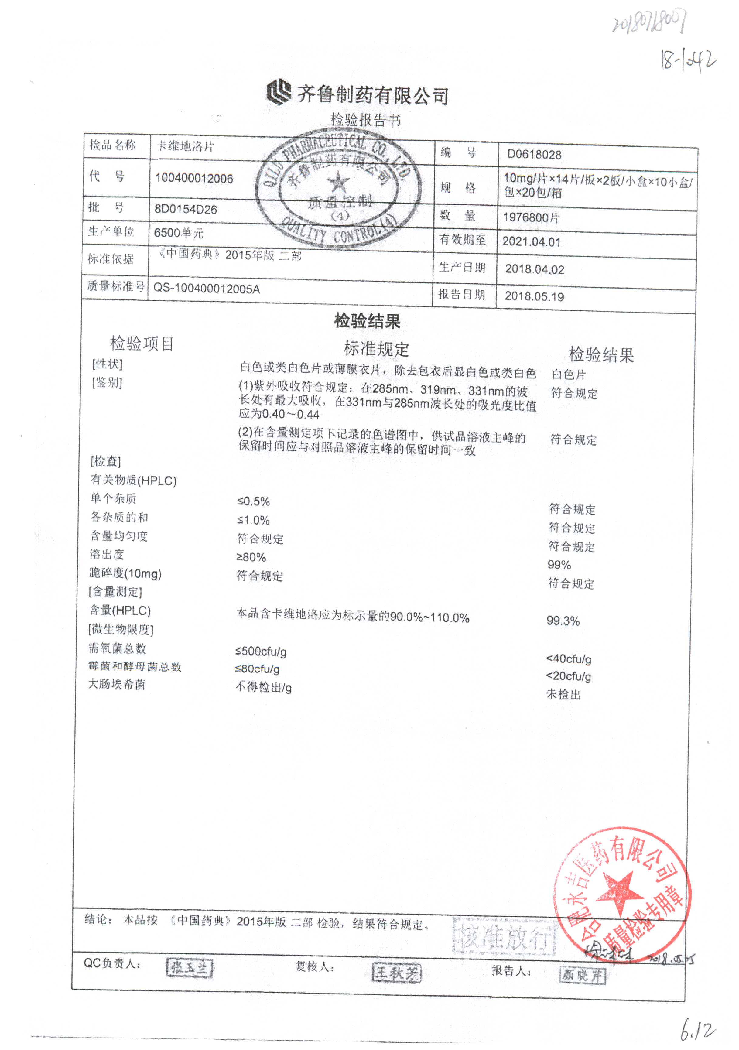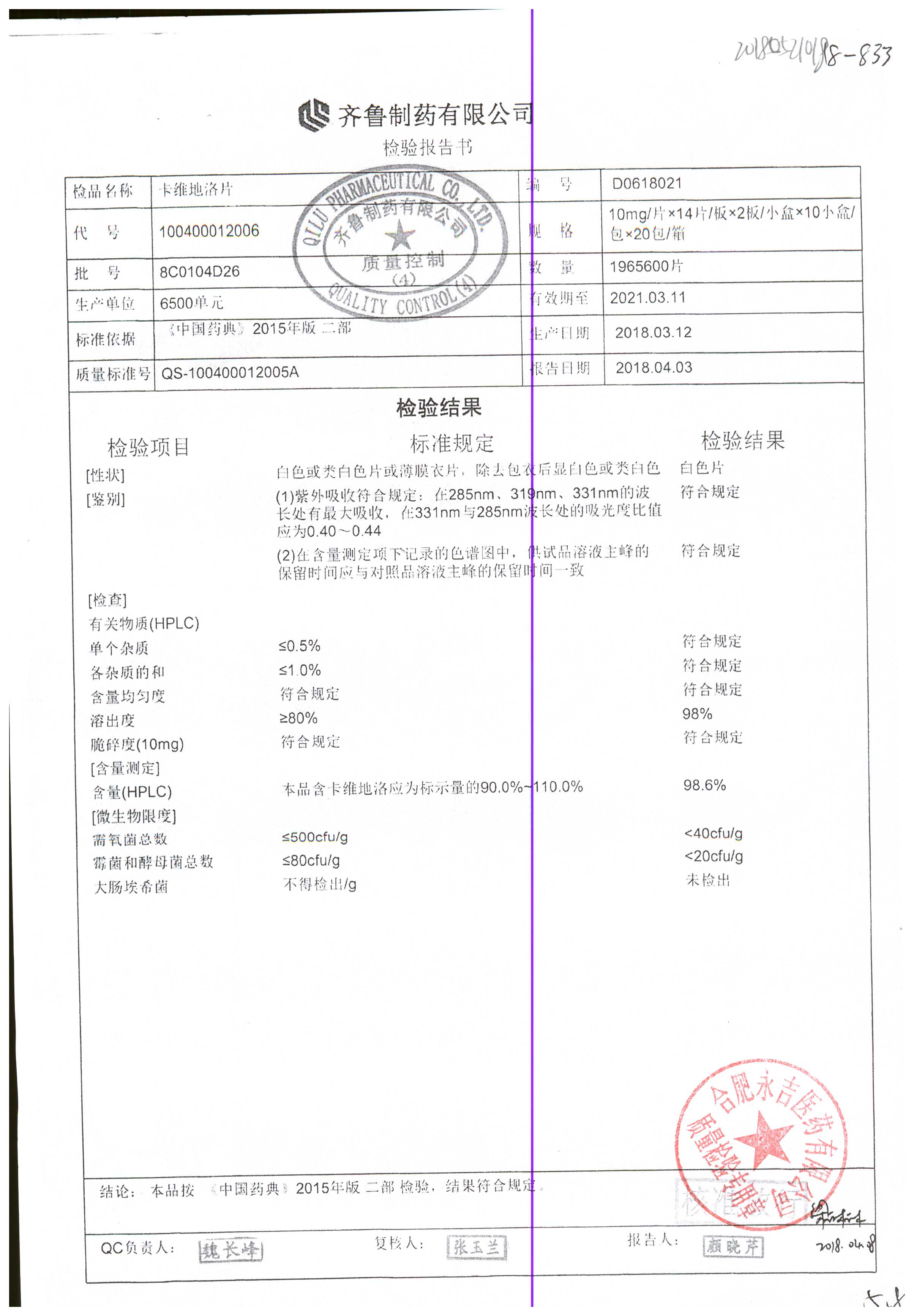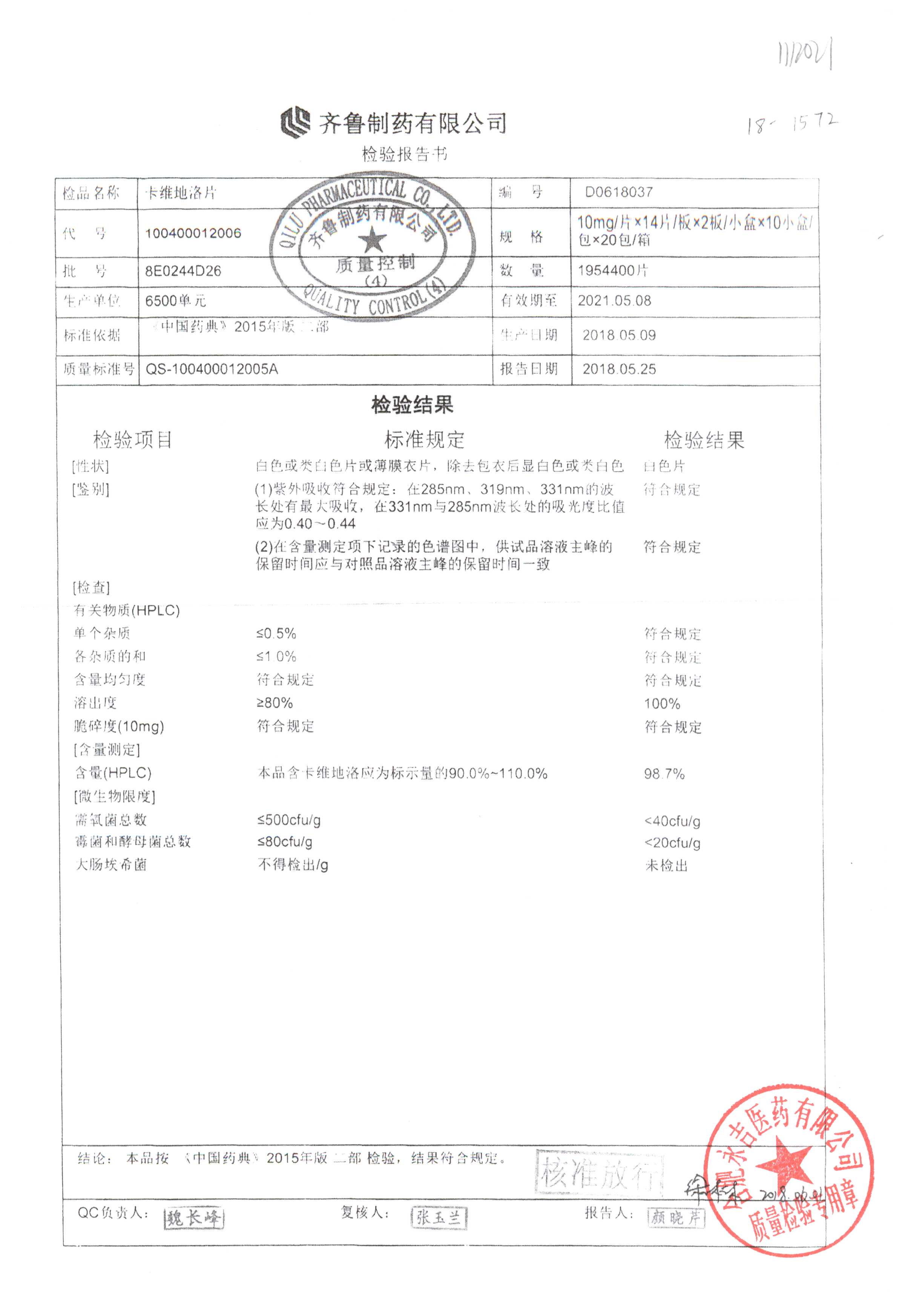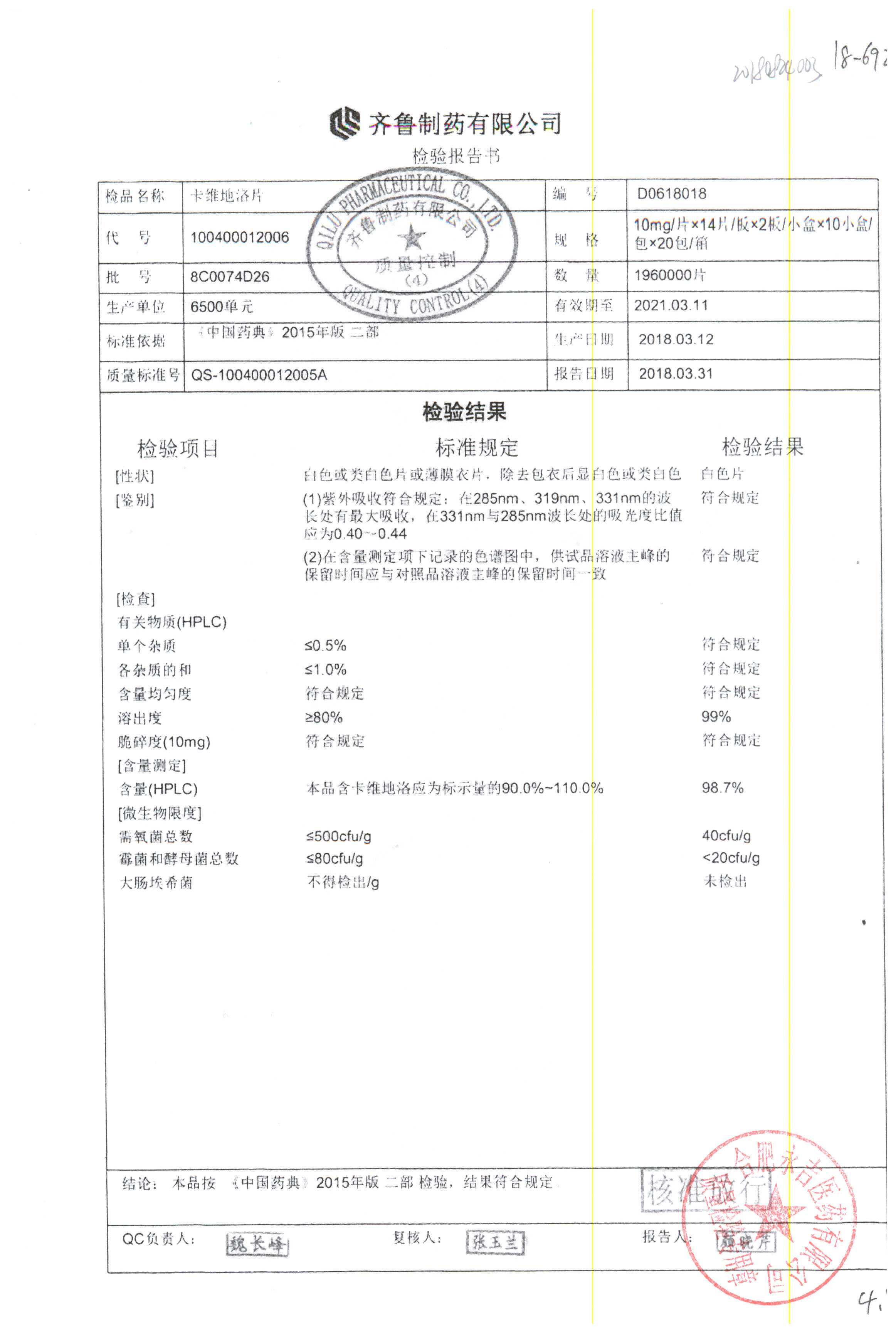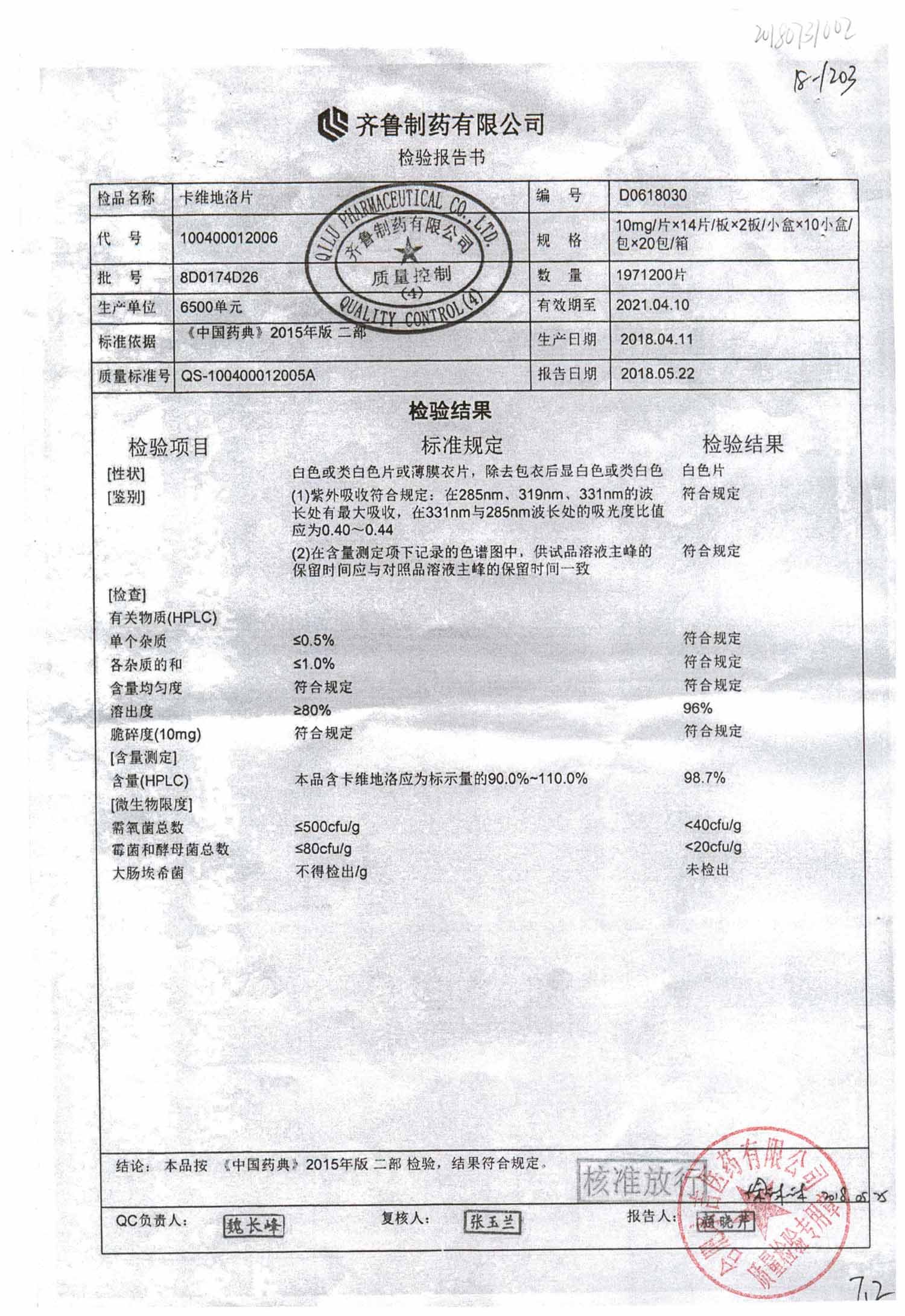 | 卡維地洛片 | 10mg*14*2 | 8C0124D26 | 查看詳情 |