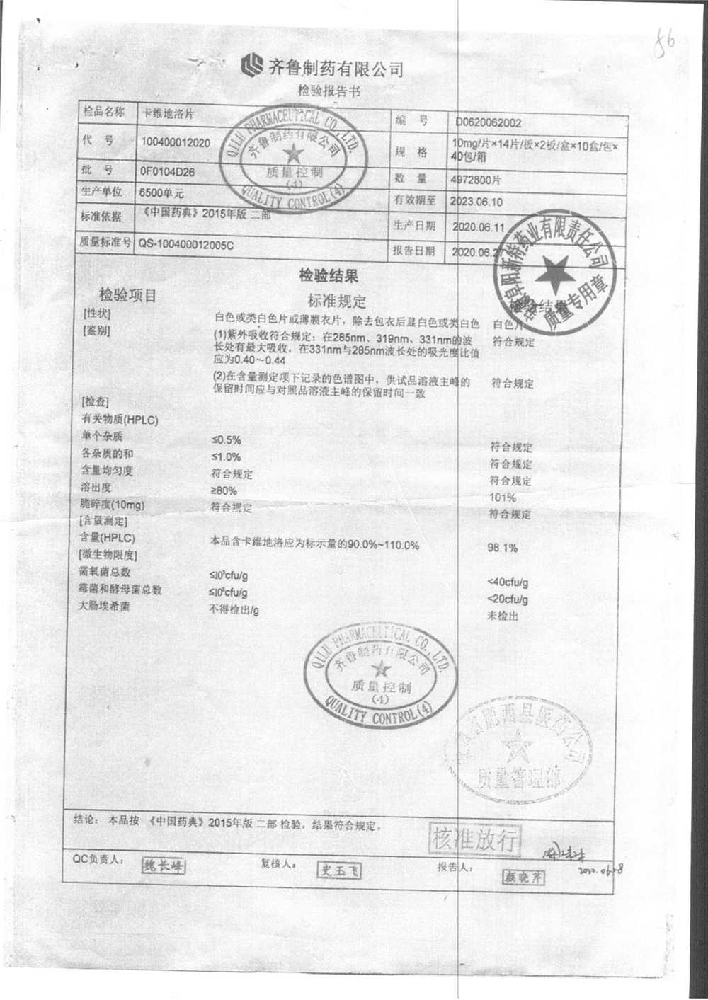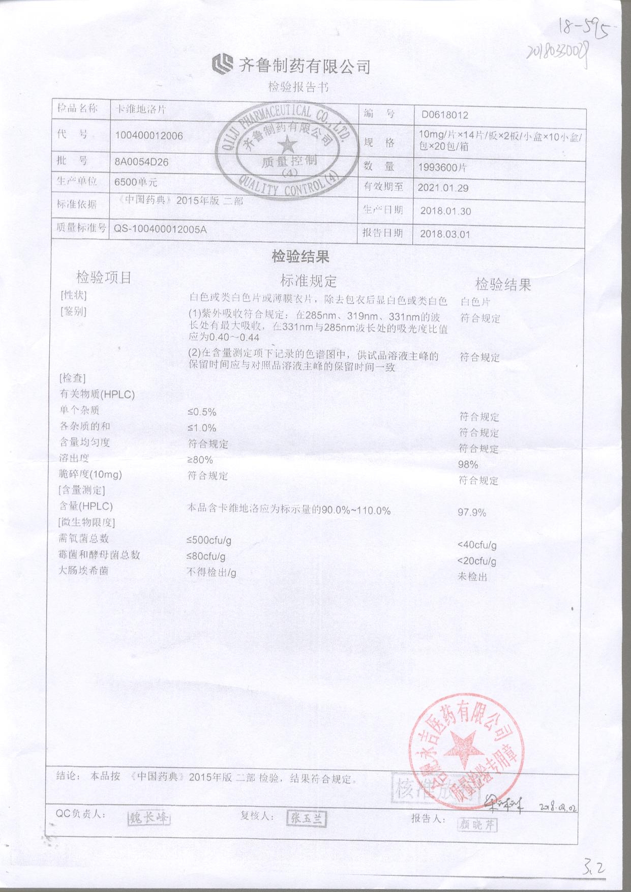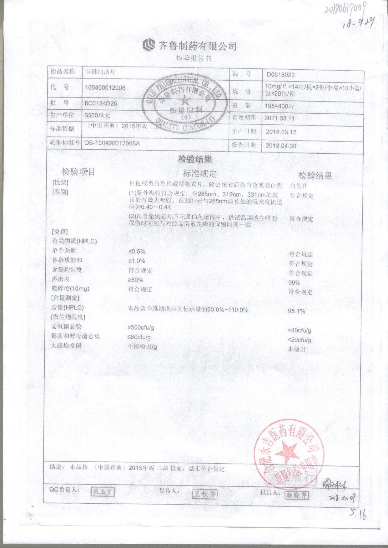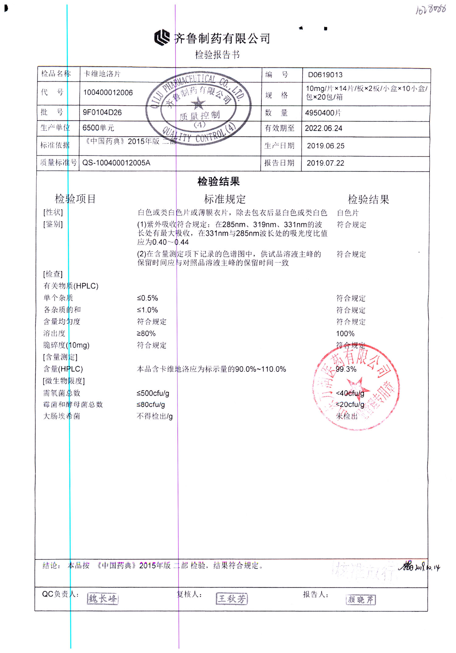 | 卡維地洛片 | 10mg*14*2 | 9G0124D26 | 查看詳情 |